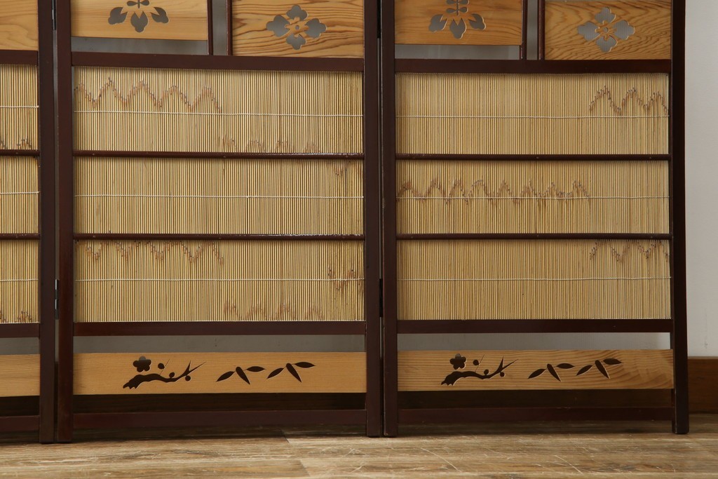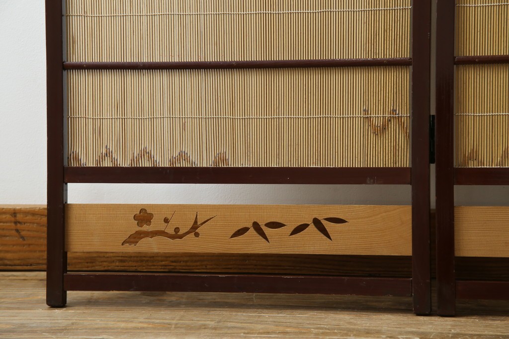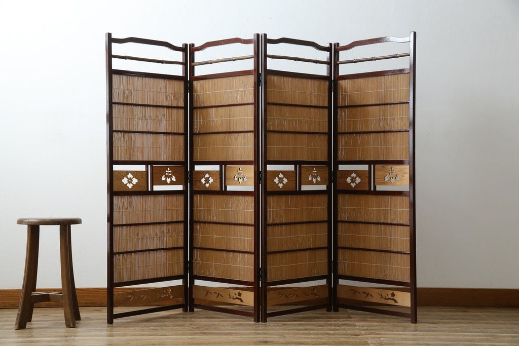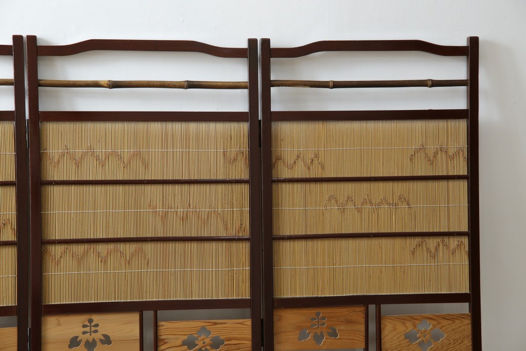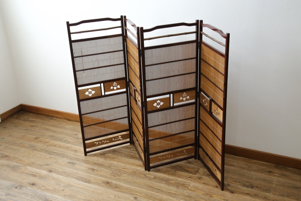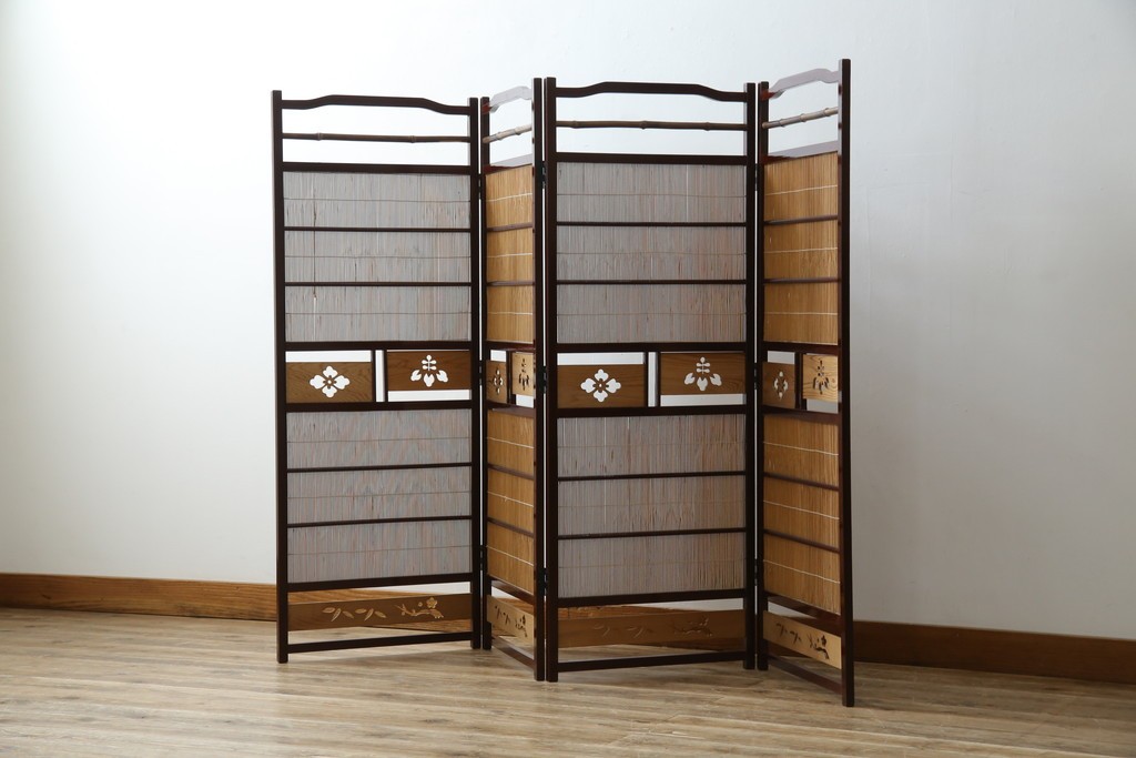 和製ビンテージ 大正ロマン 和の趣あふれる4連衝立て (R-063525)
