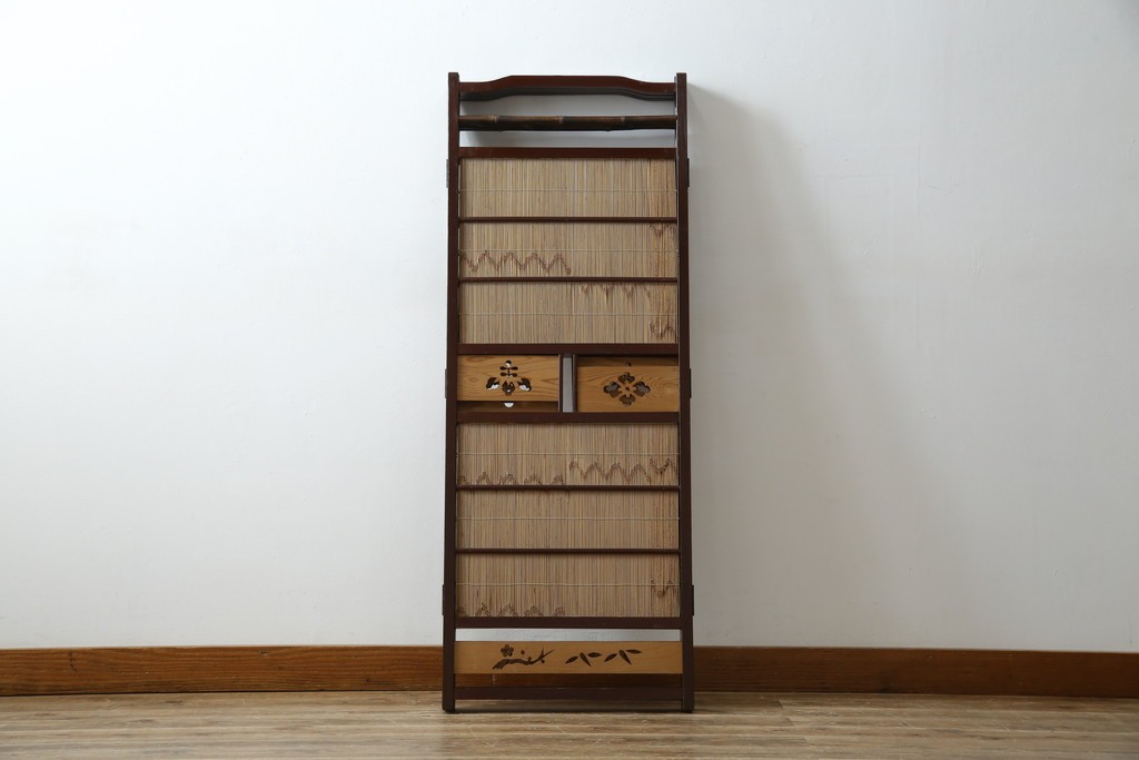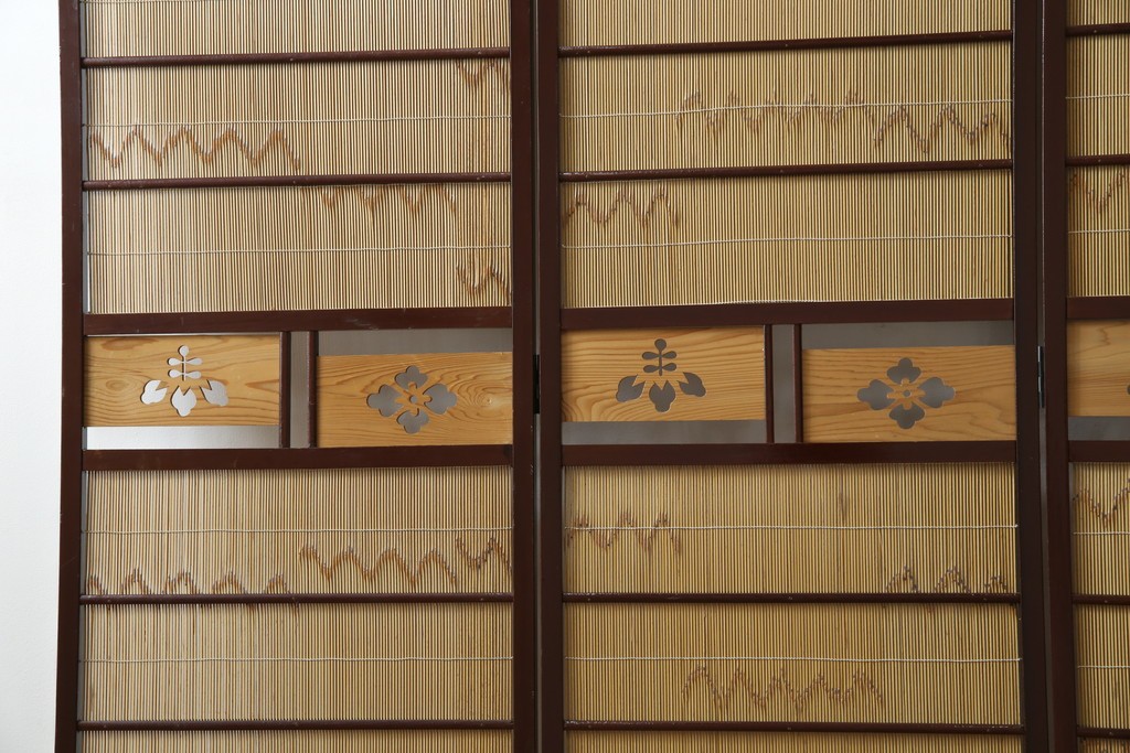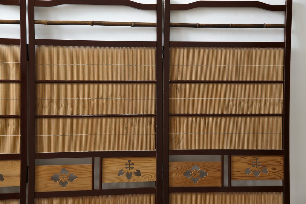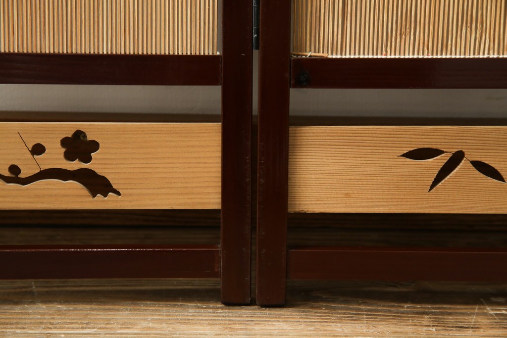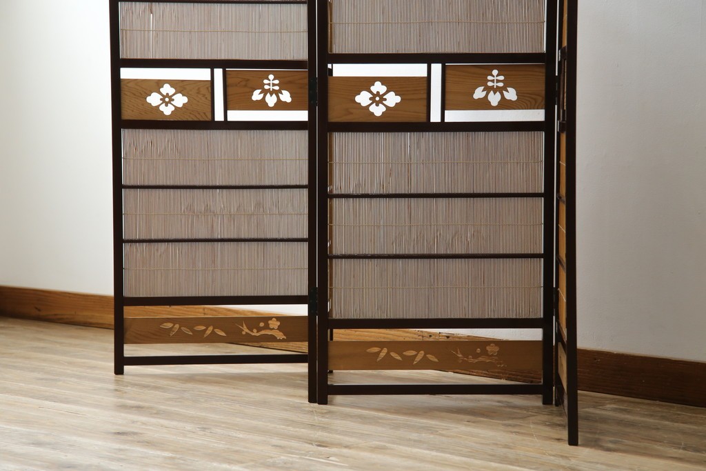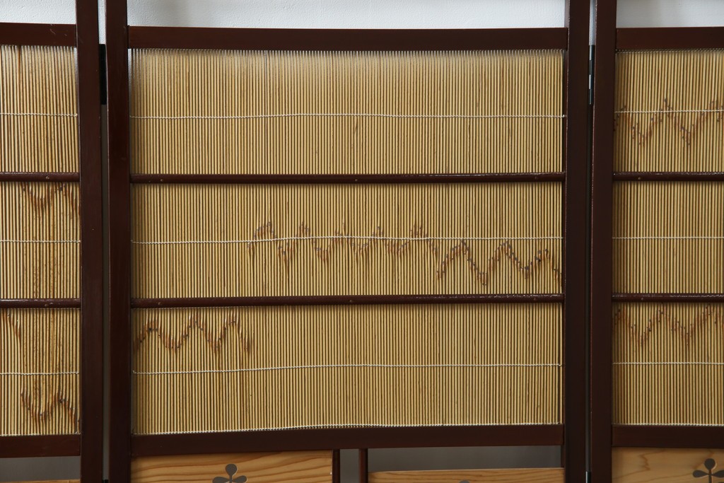 和製ビンテージ 大正ロマン 和の趣あふれる4連衝立て (R-063525)