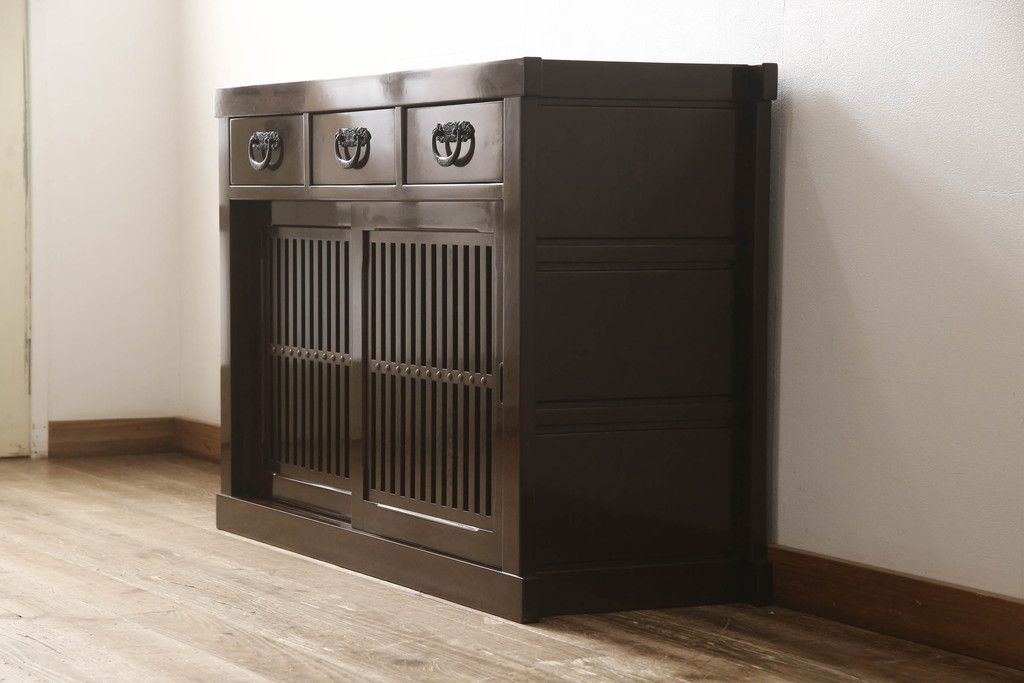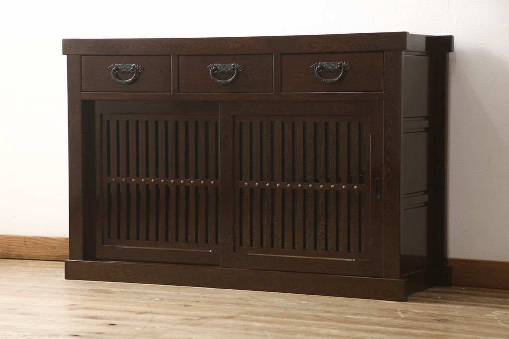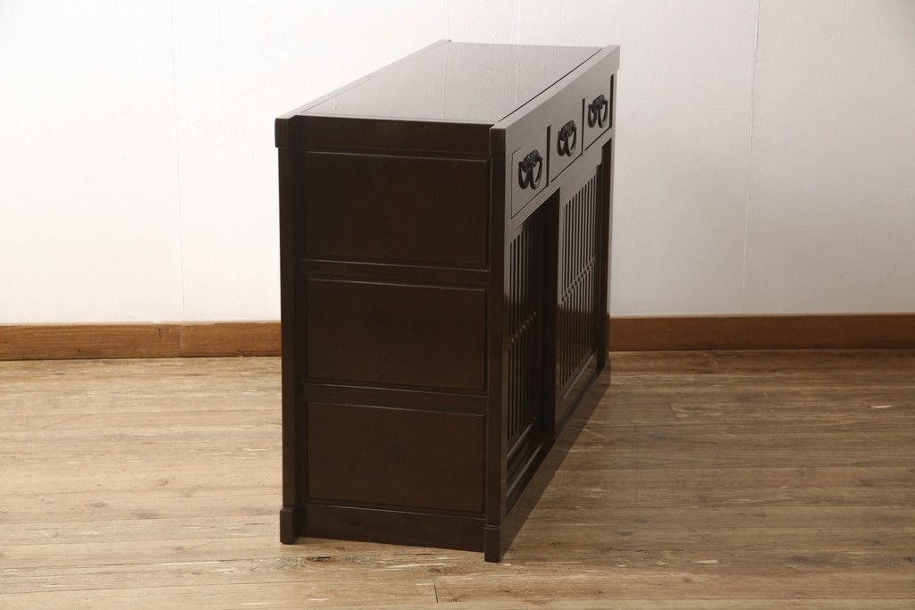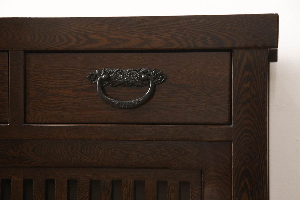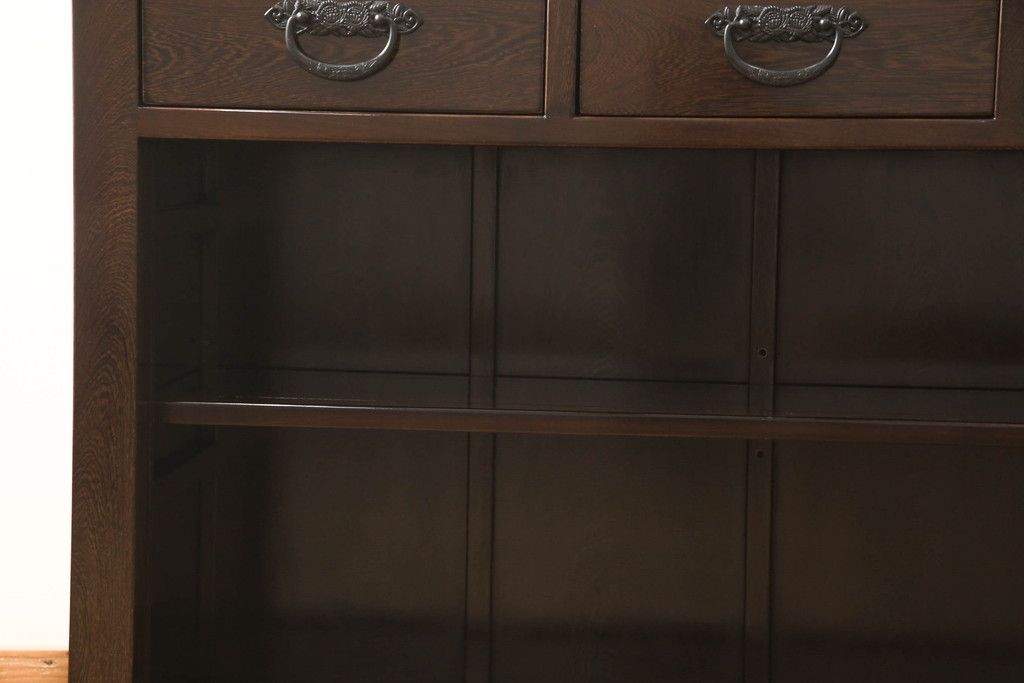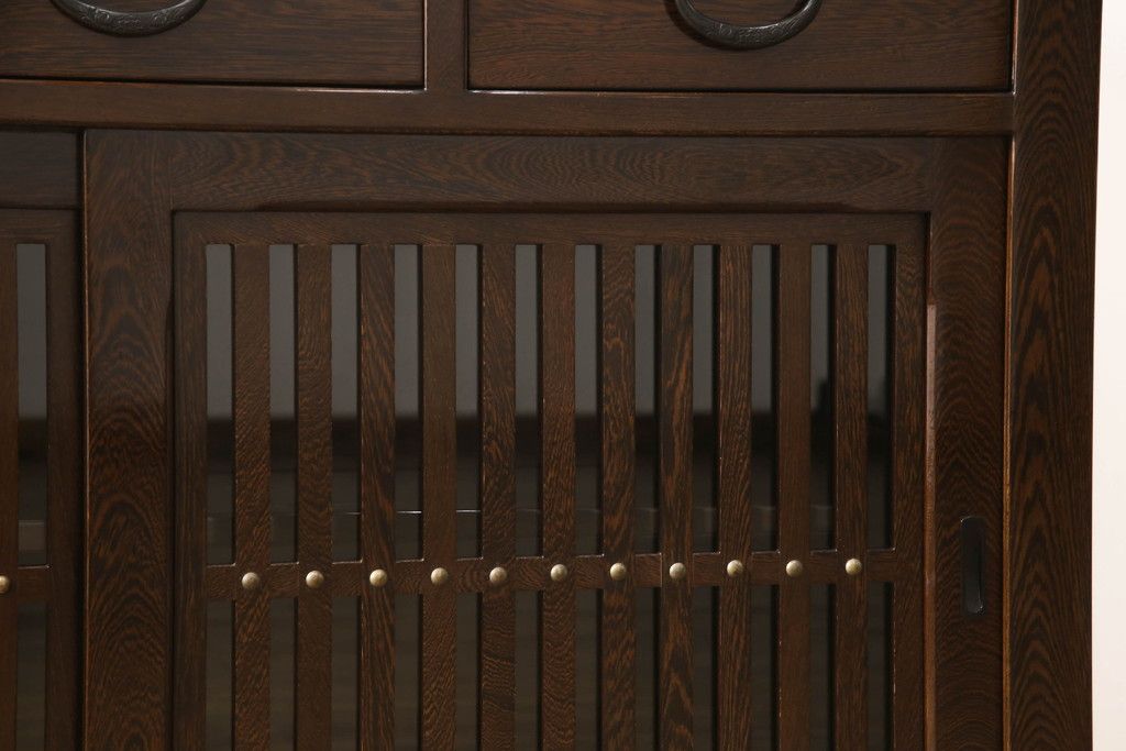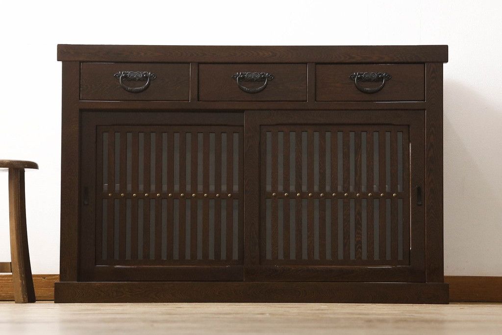 和箪笥> 水屋箪笥 > 水屋箪笥サイドボードをリペア&カスタム!引き戸裏面をクリアガラスに変更し、本体を現状の色味をベースに着色仕上げ。(キャビネット、食器棚、戸棚、収納棚)
