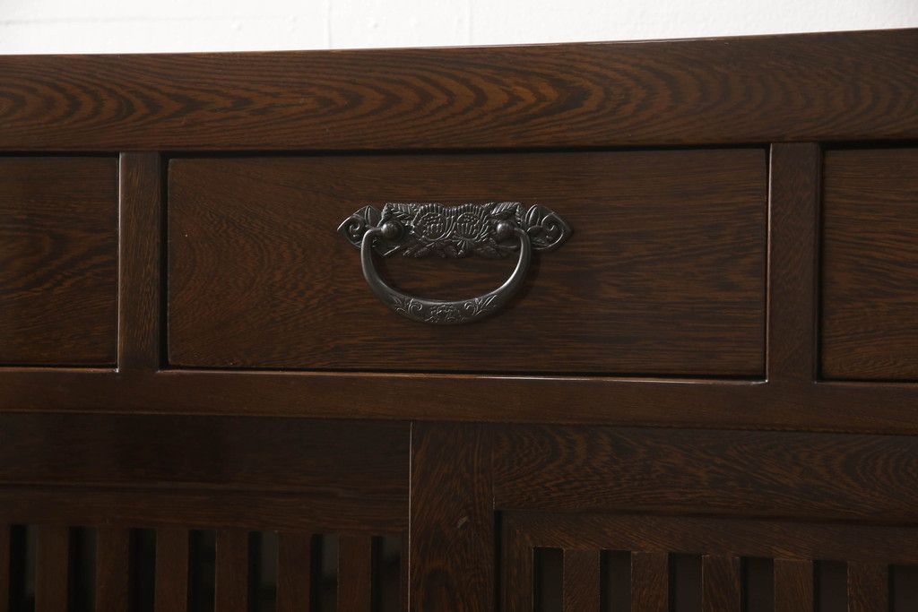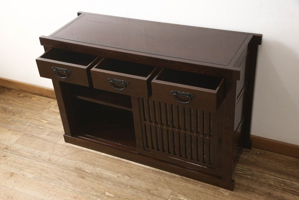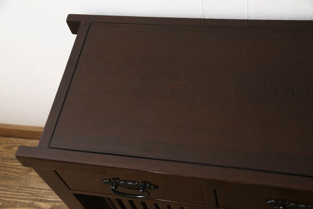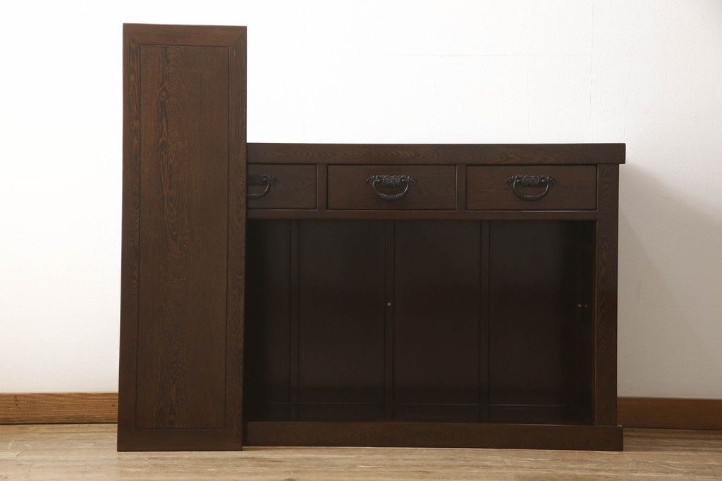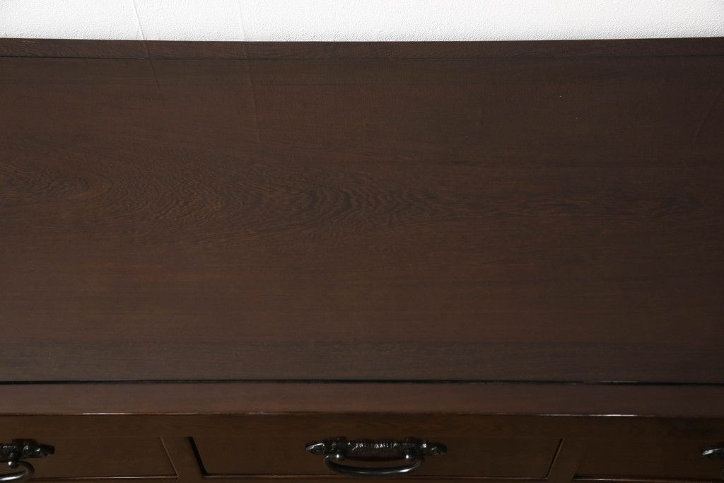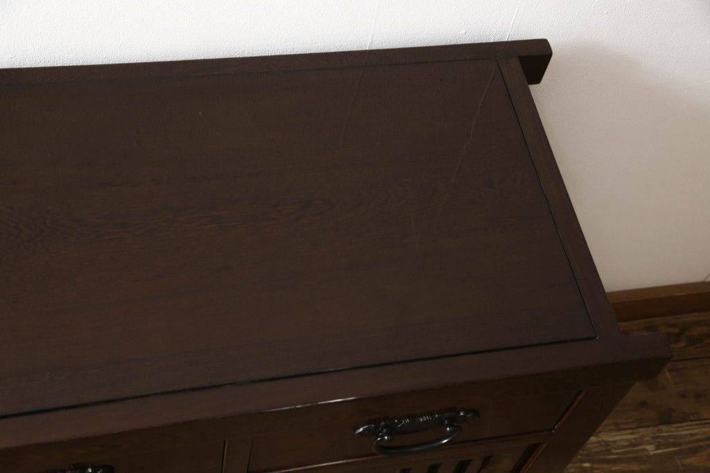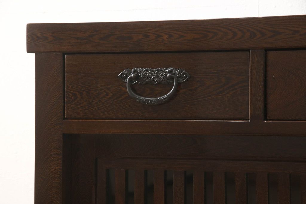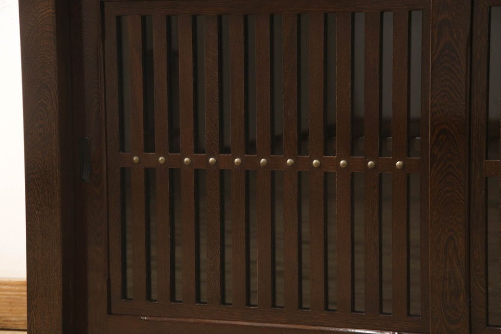 和箪笥> 水屋箪笥 > 水屋箪笥サイドボードをリペア&カスタム!引き戸裏面をクリアガラスに変更し、本体を現状の色味をベースに着色仕上げ。(キャビネット、食器棚、戸棚、収納棚)