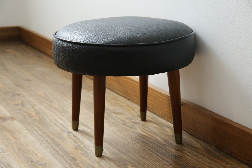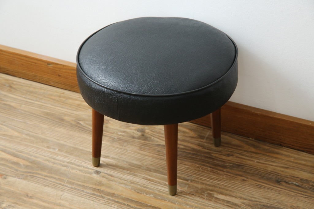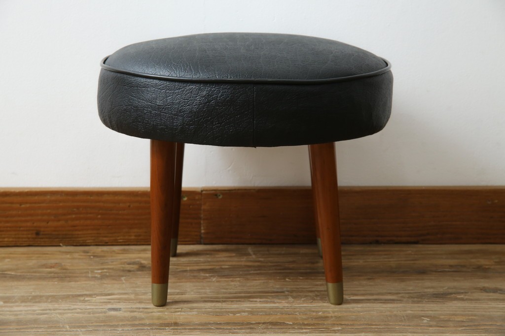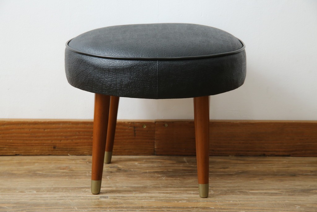 イギリスヴィンテージ 小さめのサイズ感が可愛らしい合皮スツール (R-064169)