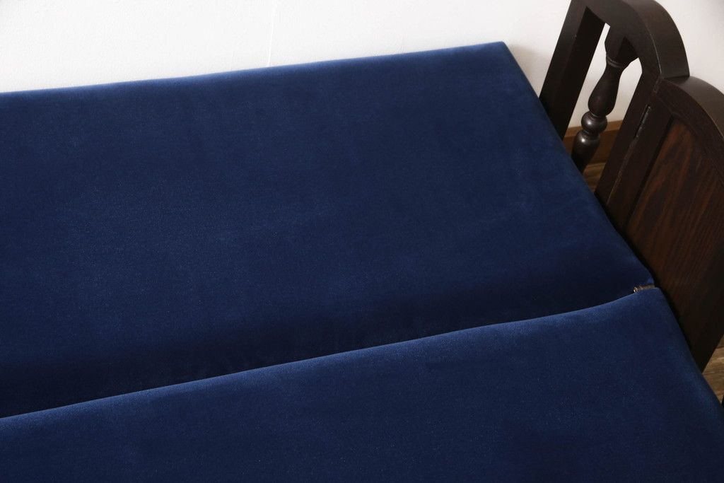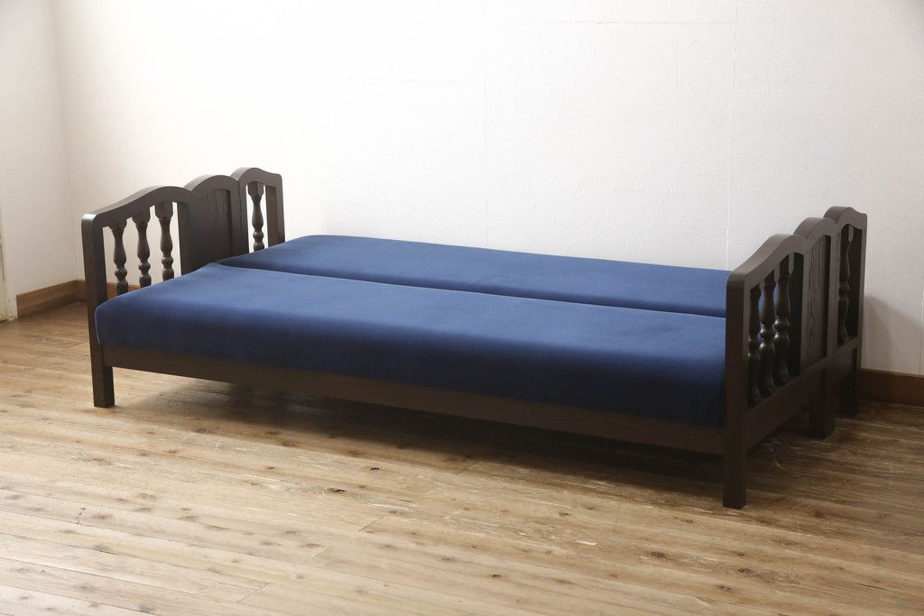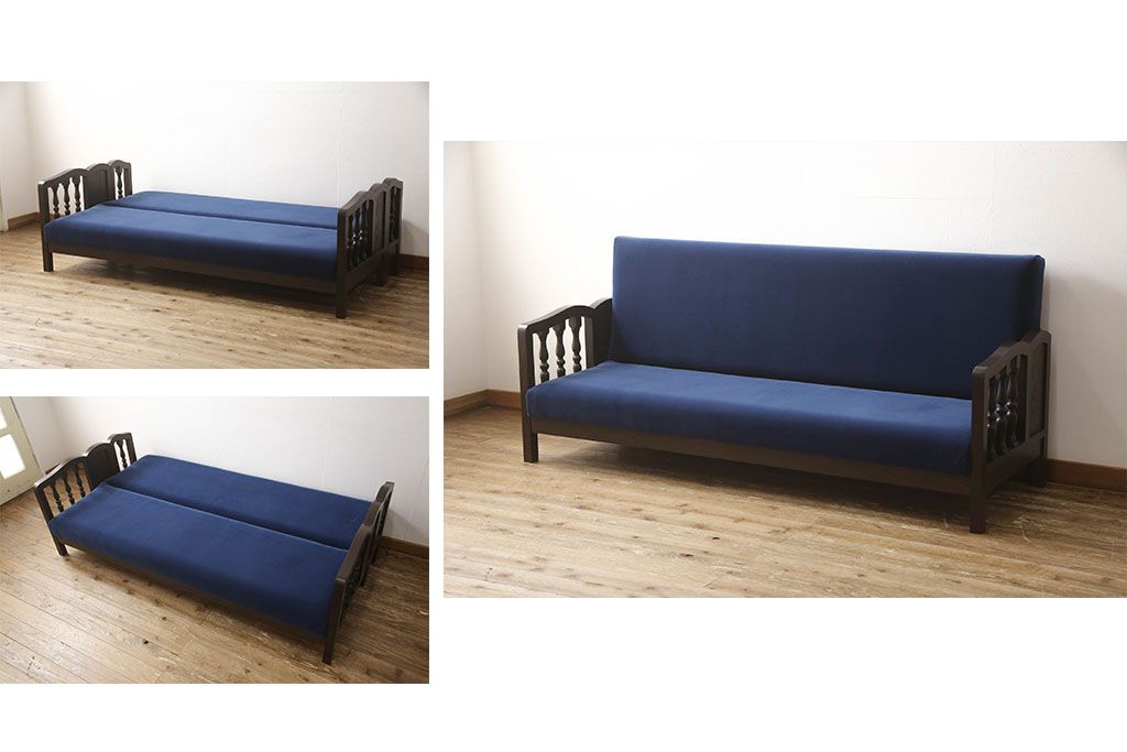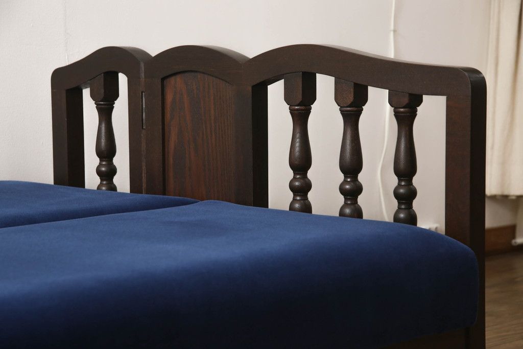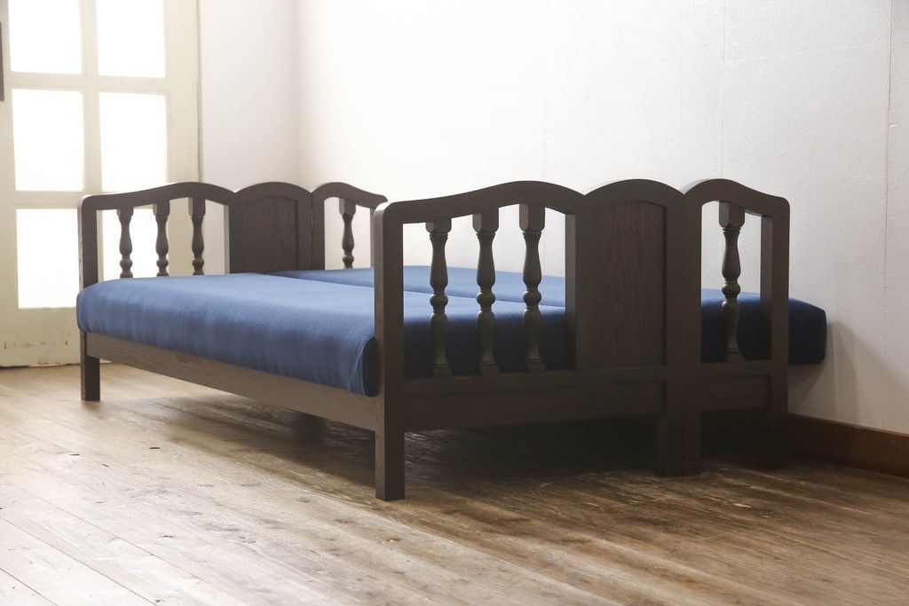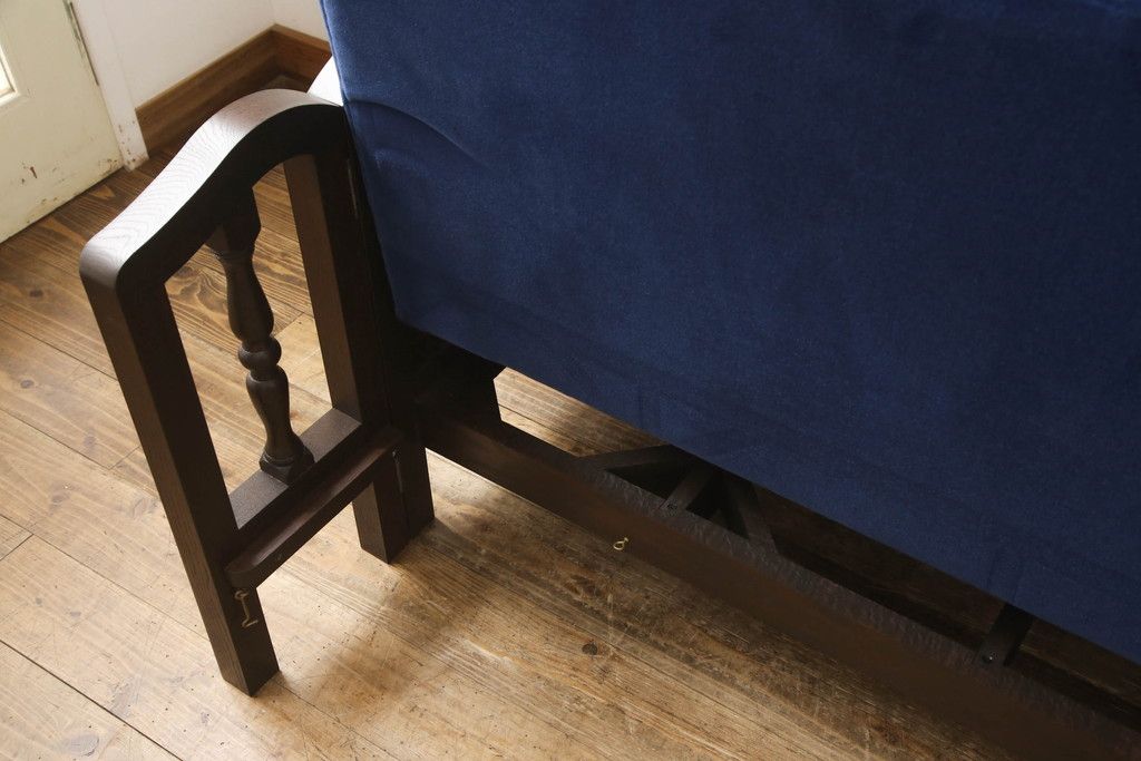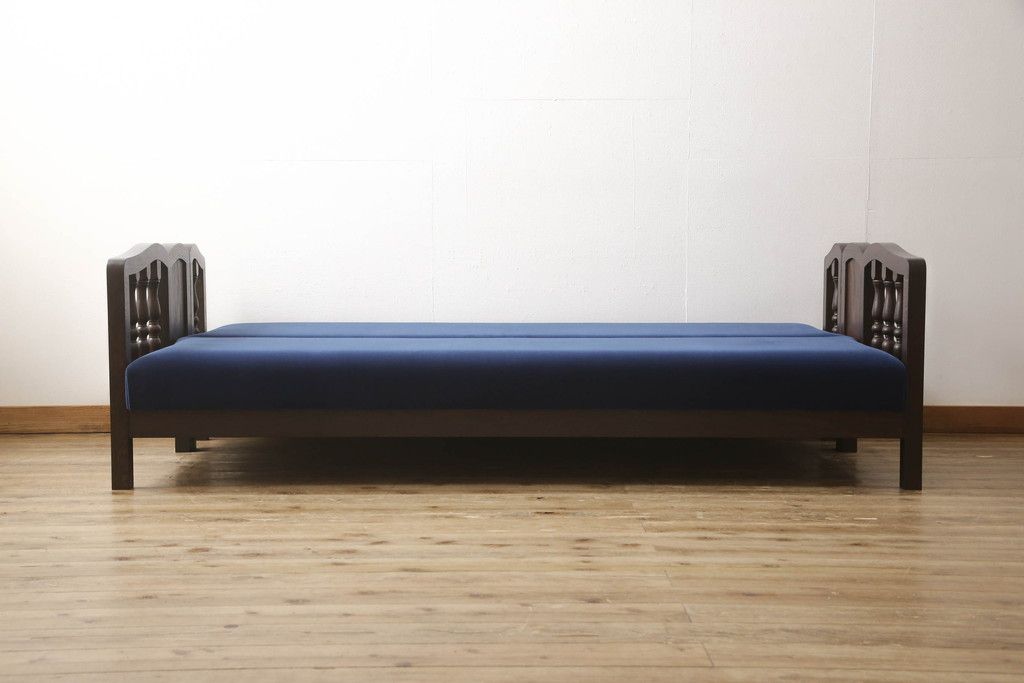 ベッド > ソファベッドを新規製作!ご希望の生地と濃い茶色の着色でアンティーク調の仕上がりに。(3人掛けソファ、トリプルソファ)