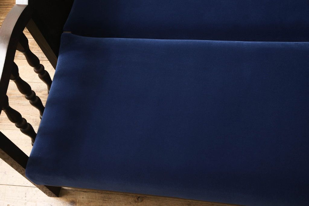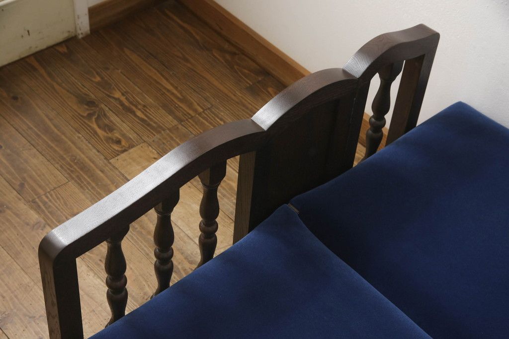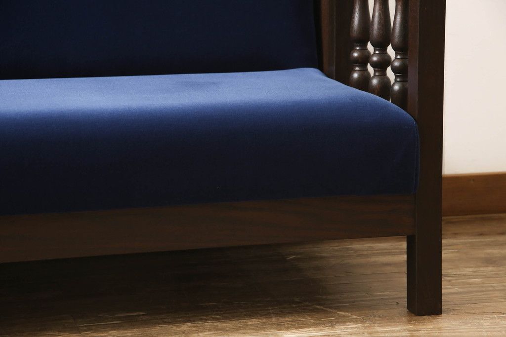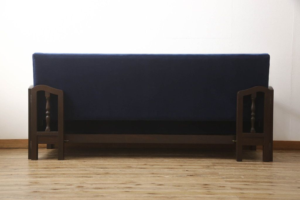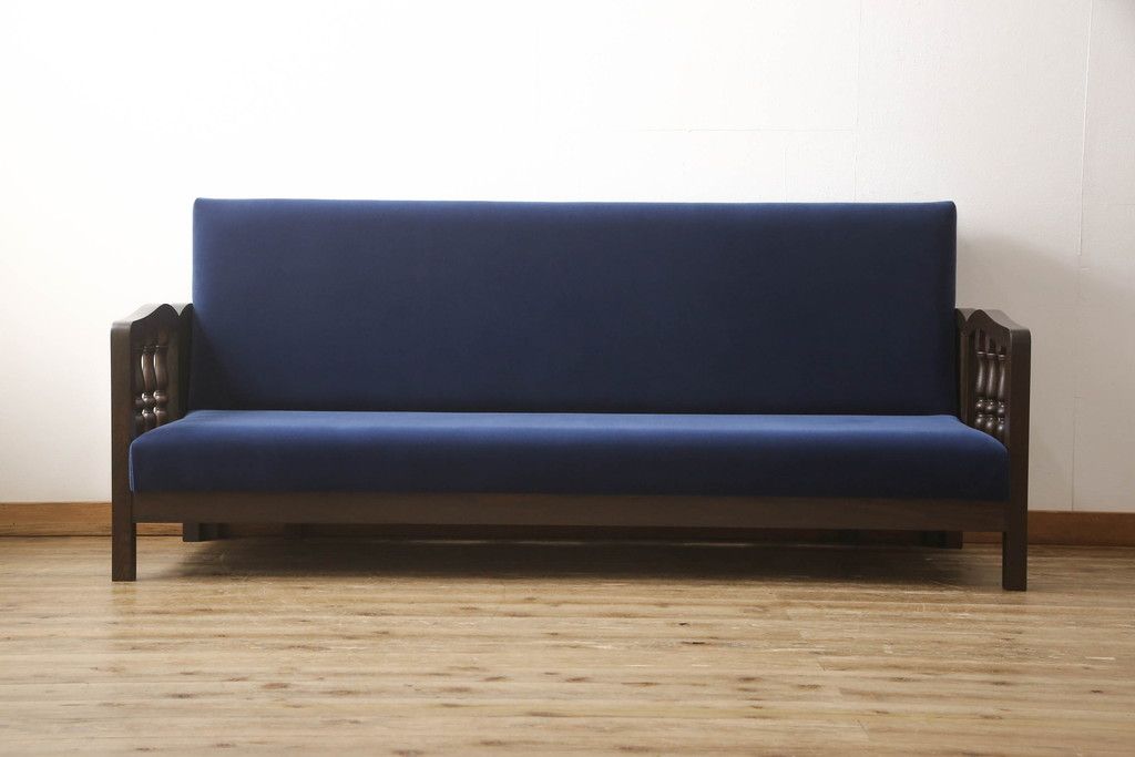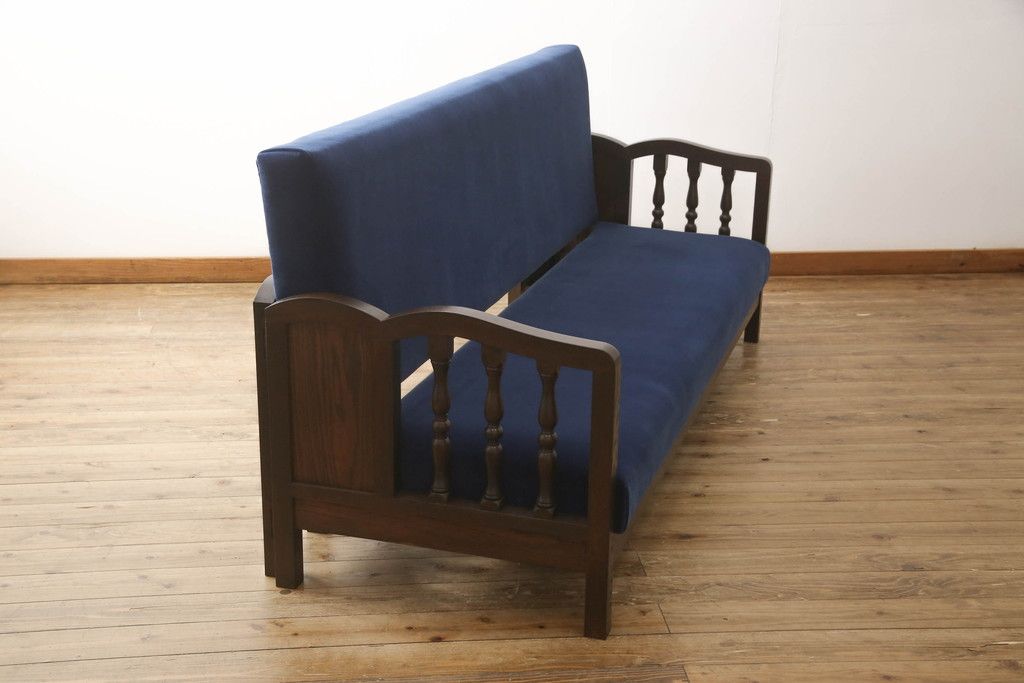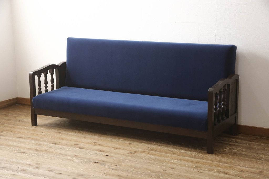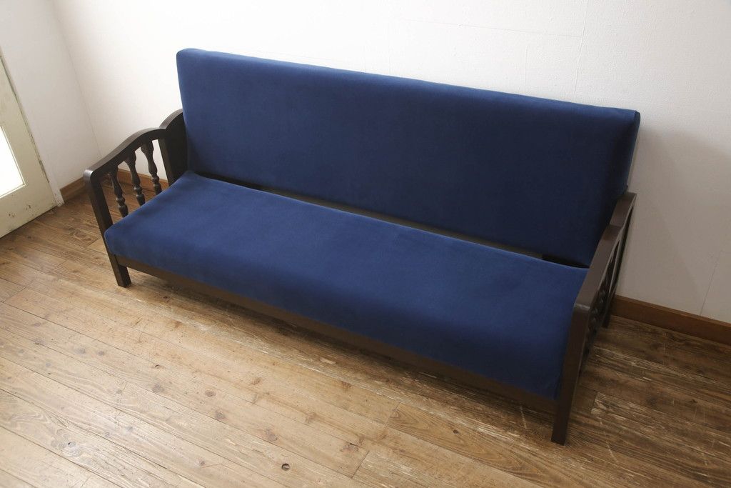 ソファベッドを新規製作!ご希望の生地と濃い茶色の着色でアンティーク調の仕上がりに。(3人掛けソファ、トリプルソファ)