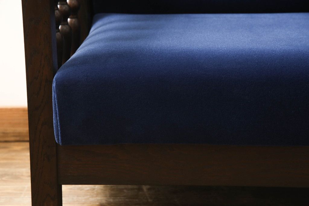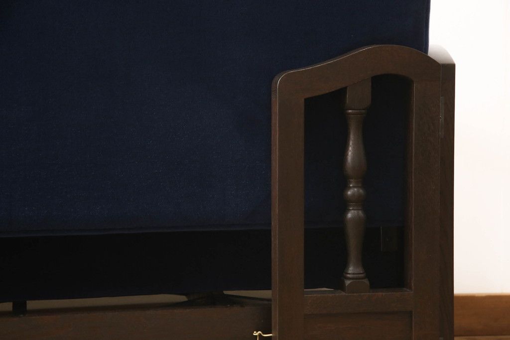 フルオーダー家具実績 > ソファベッドを新規製作!ご希望の生地と濃い茶色の着色でアンティーク調の仕上がりに。(3人掛けソファ、トリプルソファ)