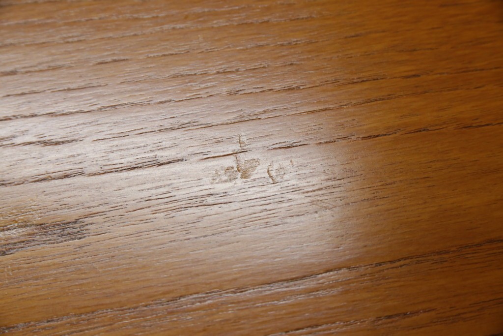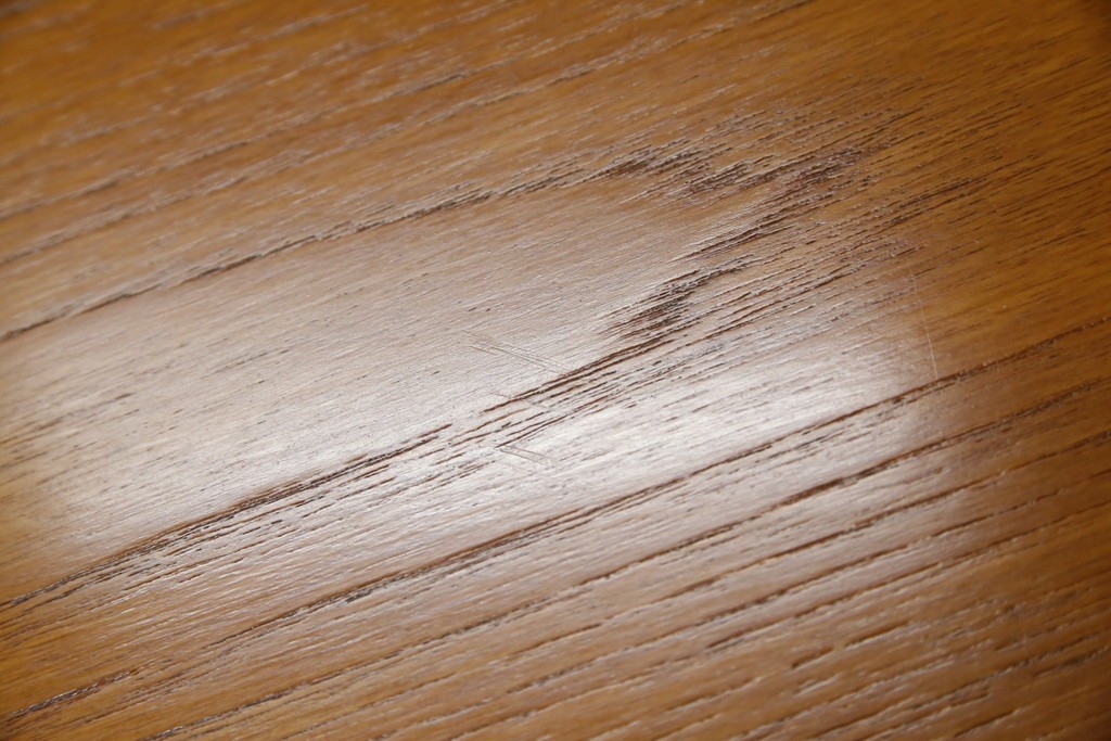 ・天板は当店でクリア塗装を施しております。小キズ等が目立ちにくく、耐水性と耐久性に優れたお手入れがしやすい仕上げです。