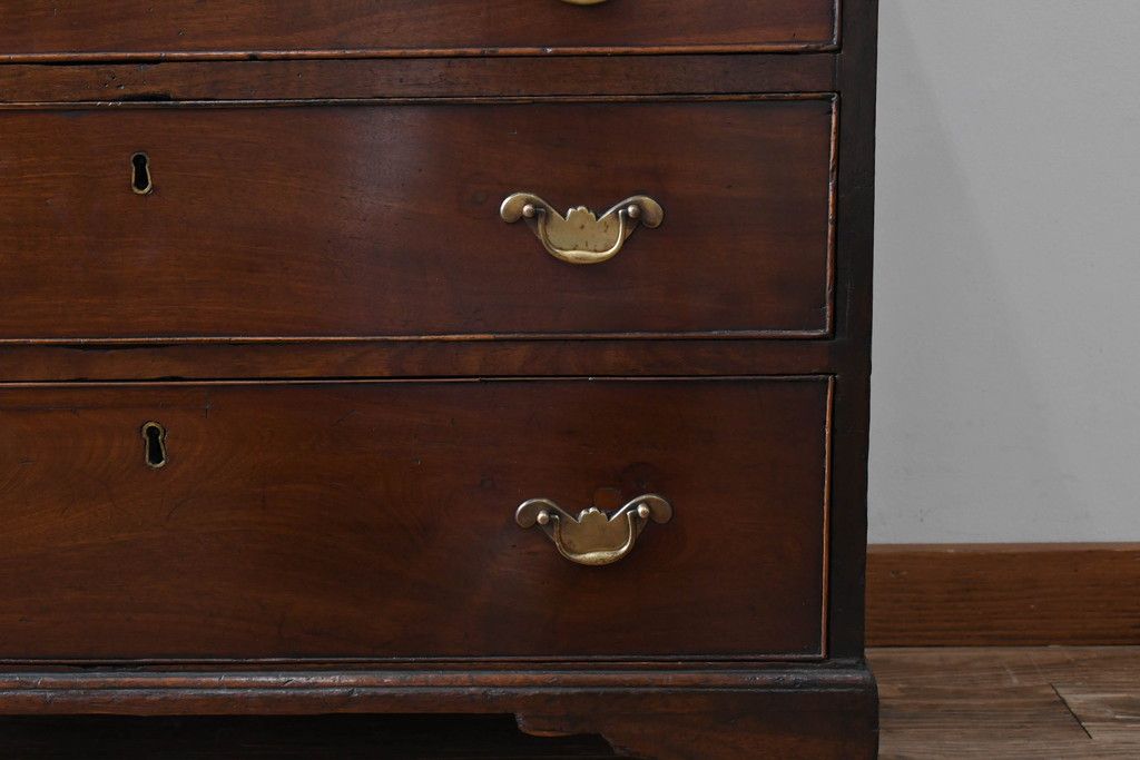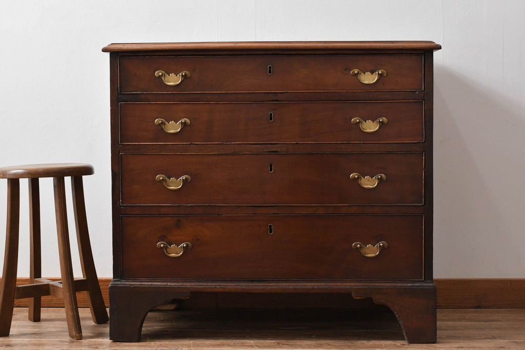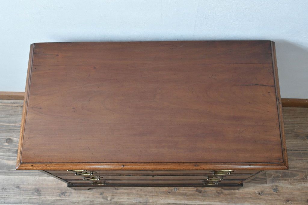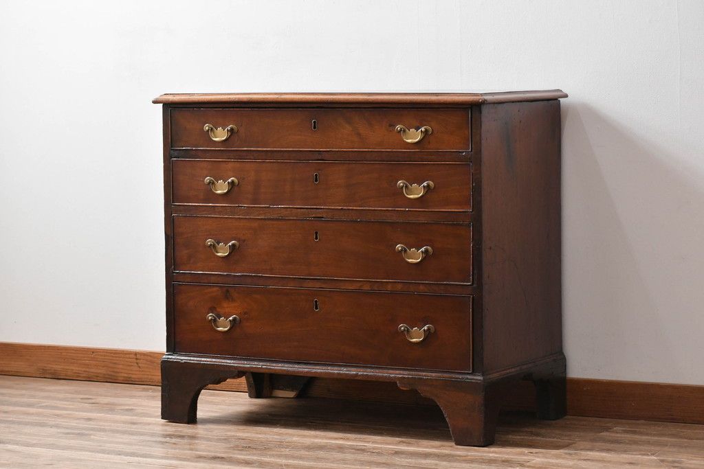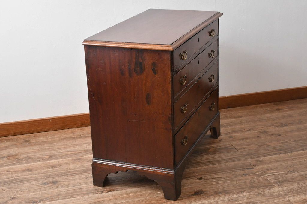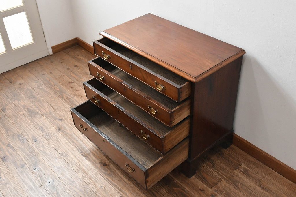 イギリスアンティーク マホガニー材 小振りなサイズが取り入れやすいクラシカルなチェスト(引き出し、サイドチェスト、洋服タンス、英国)(R-065928)