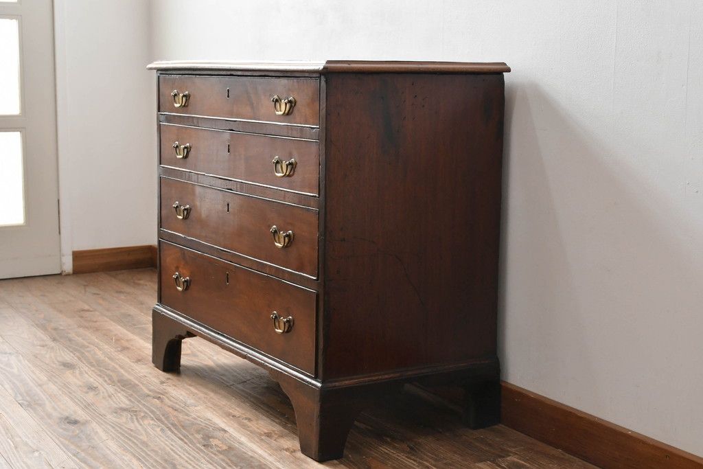 イギリスアンティーク マホガニー材 小振りなサイズが取り入れやすいクラシカルなチェスト(引き出し、サイドチェスト、洋服タンス、英国)(R-065928)です。