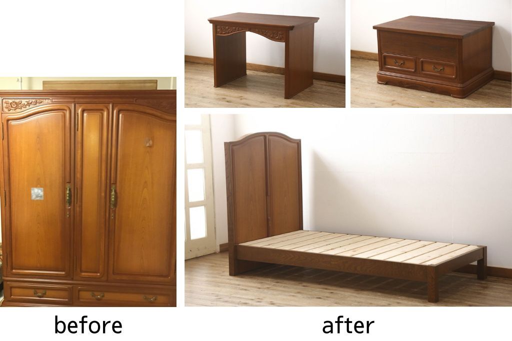 お客様持ち込みの婚礼家具をベッドフレームへリメイク