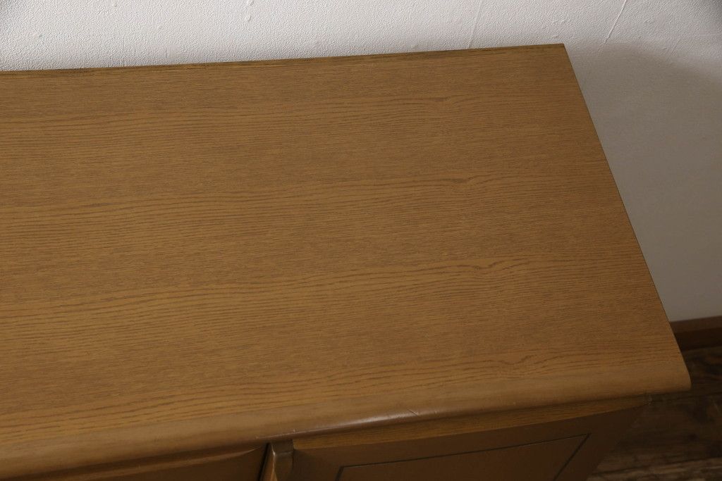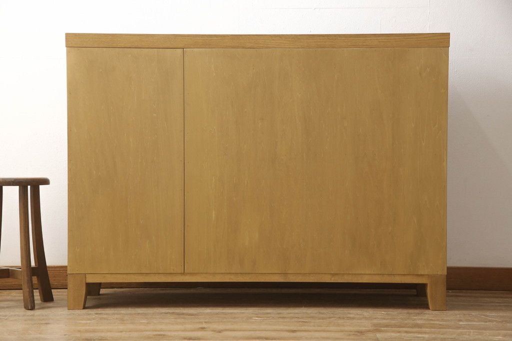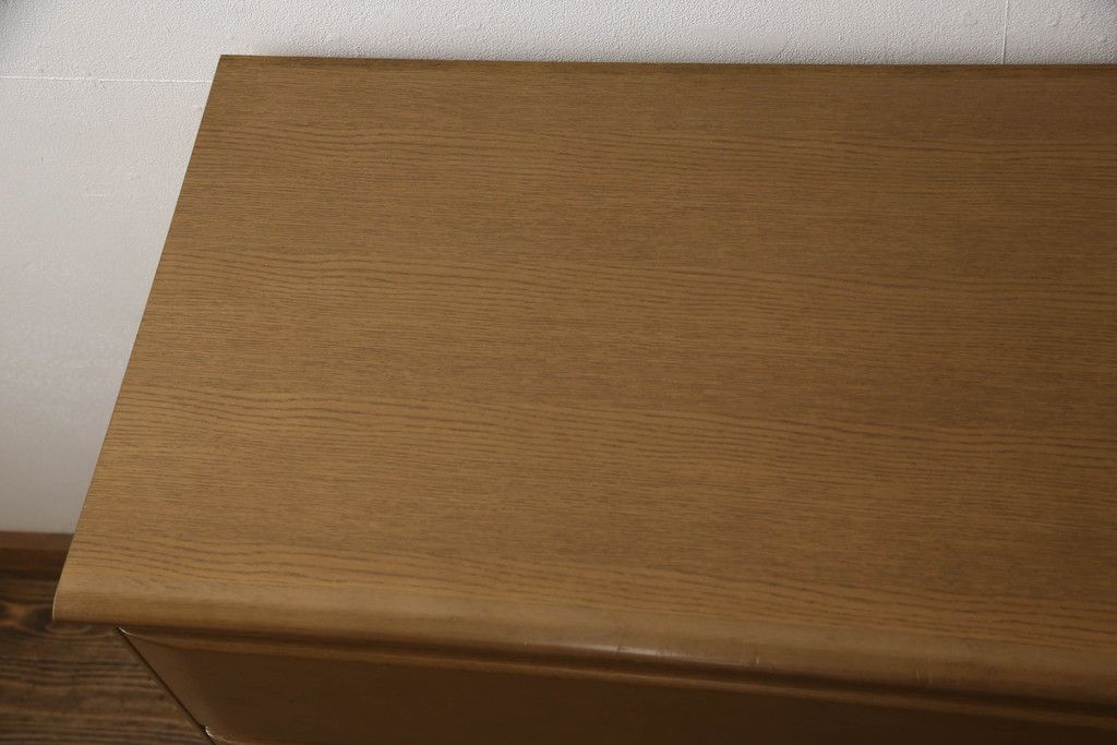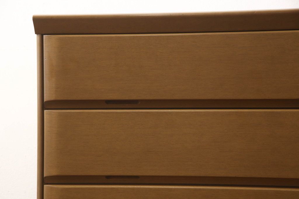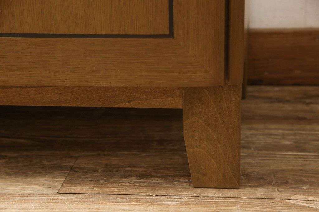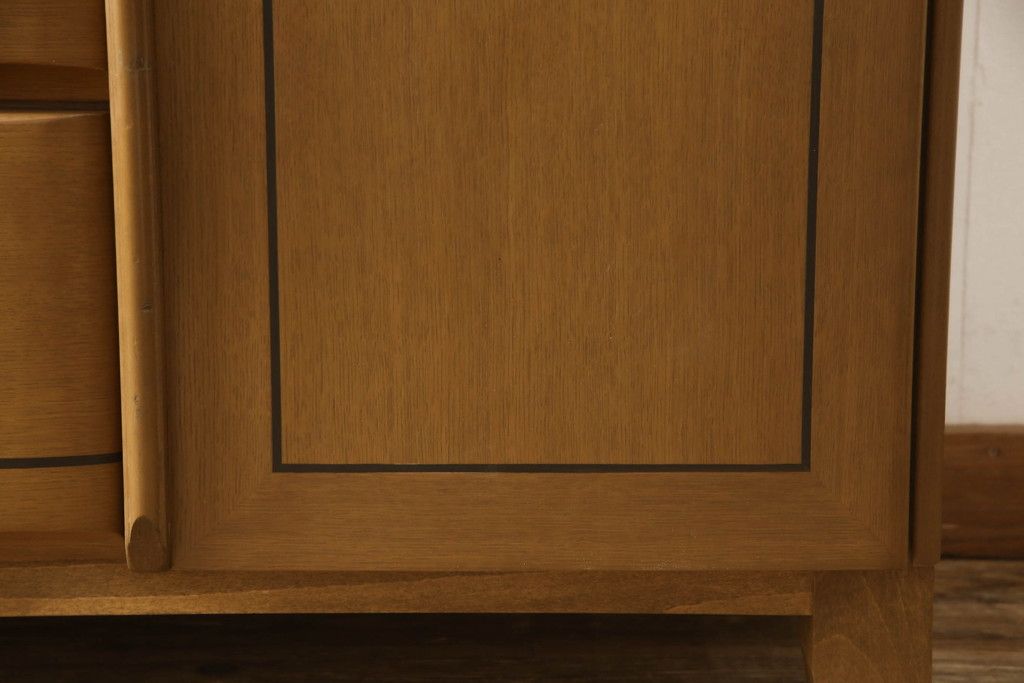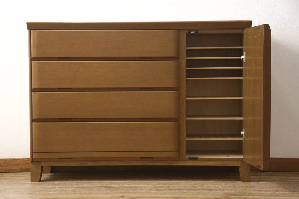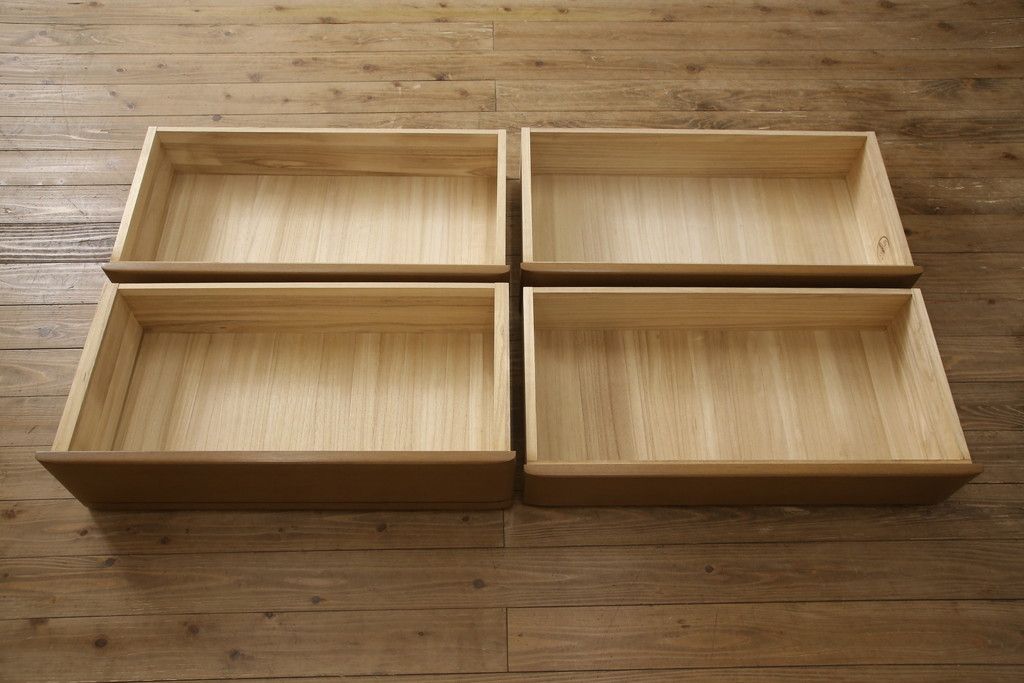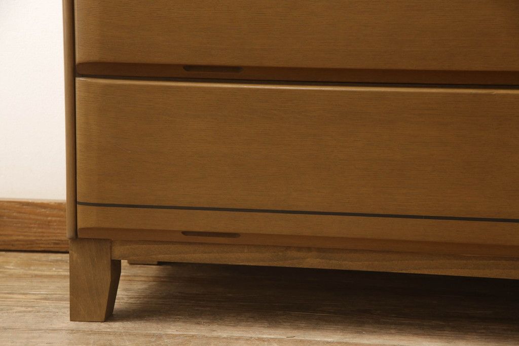 婚礼箪笥をチェストにリメイク!左側の引き出しをカットし、中央引き出し4段と扉収納部分を利用。奥行きも小さくリサイズし、台輪は取り外して木製脚を取り付け。