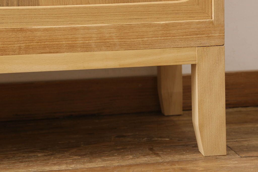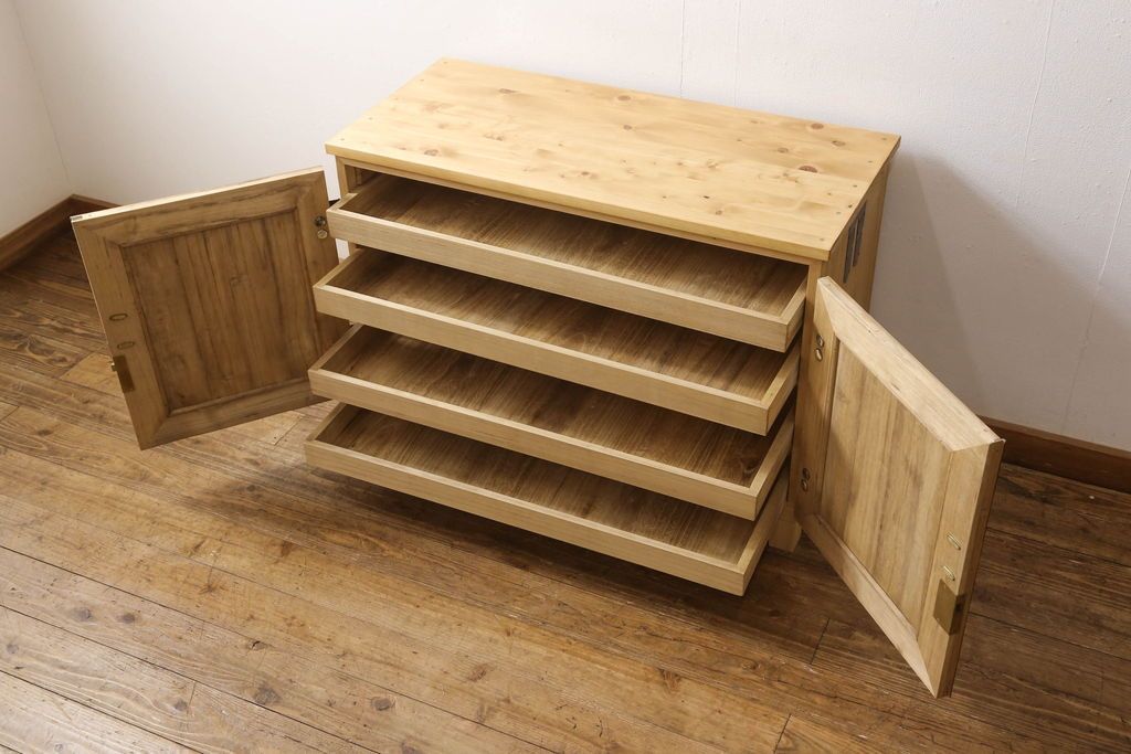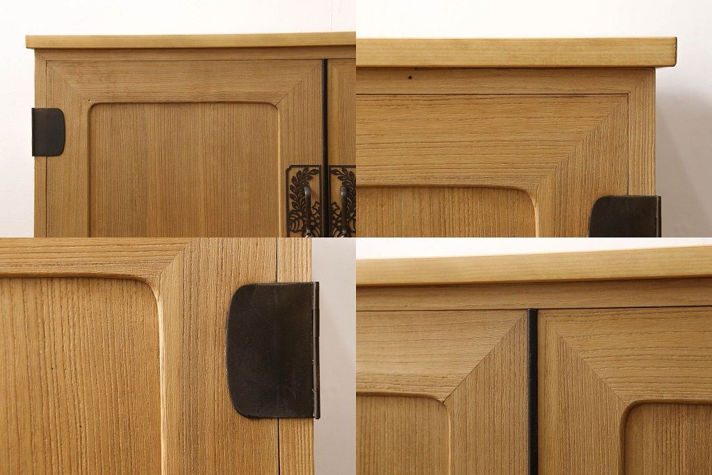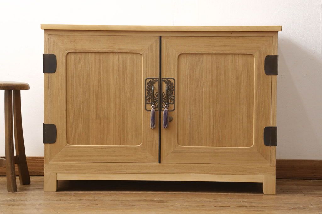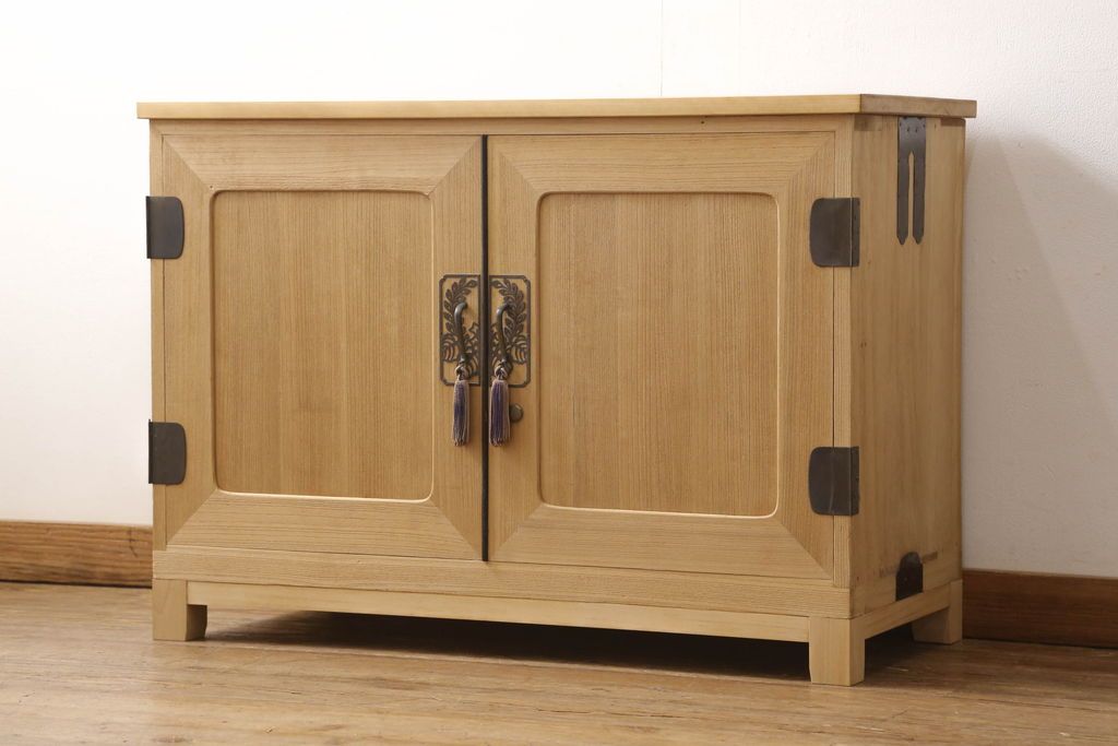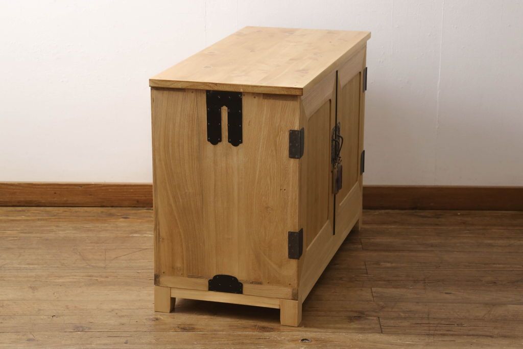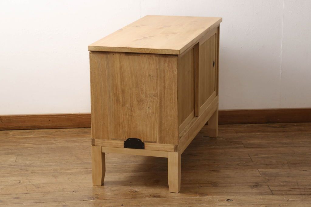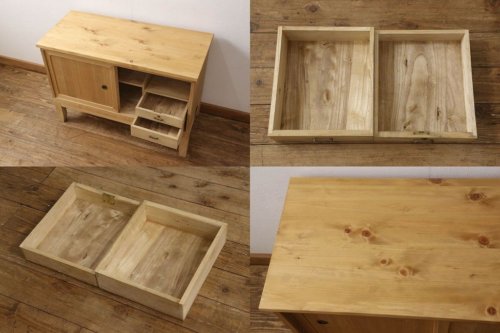 3段重ね桐箪笥をローボード2台とローチェストにリメイク!上段・中段はローボードに加工し、脚の取り付け。それぞれにヒノキ無垢材の天板を追加。自然な木地色仕上げに。