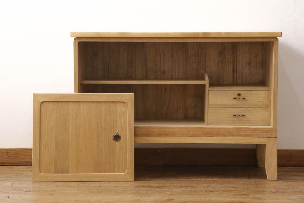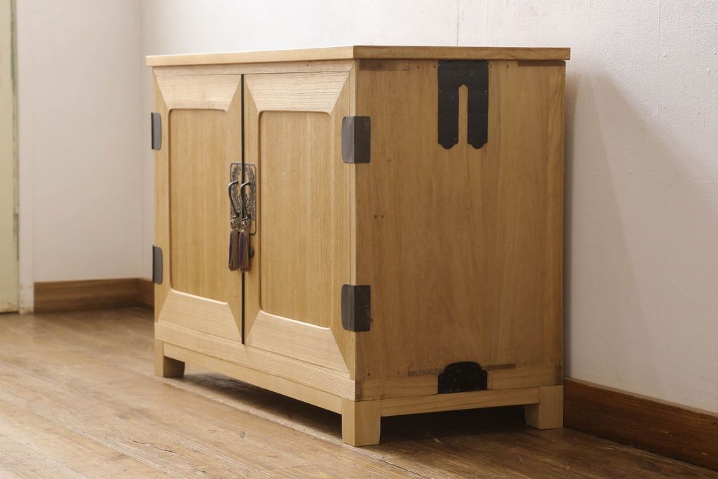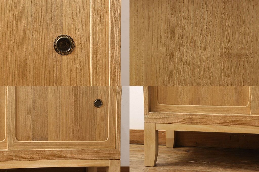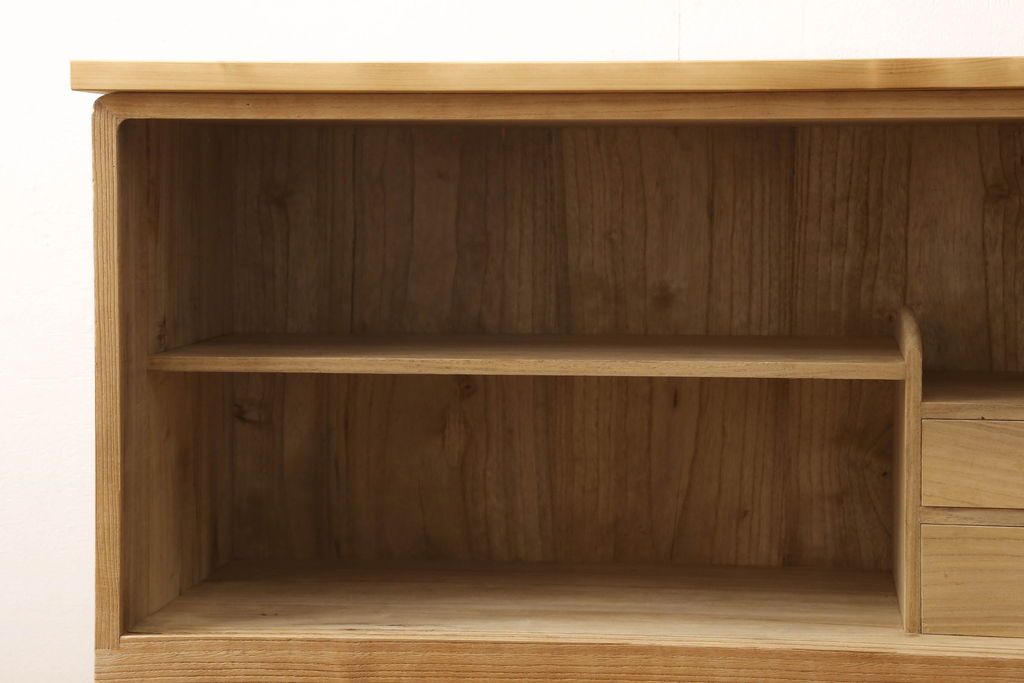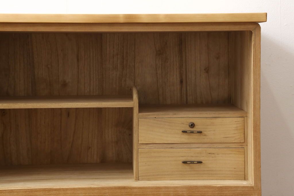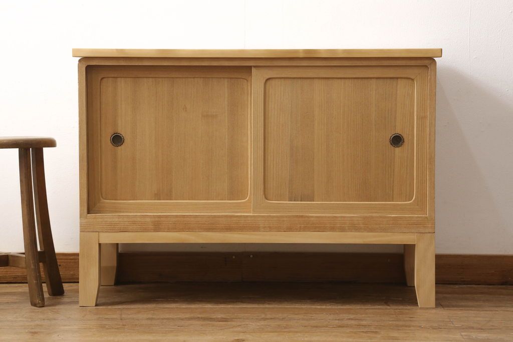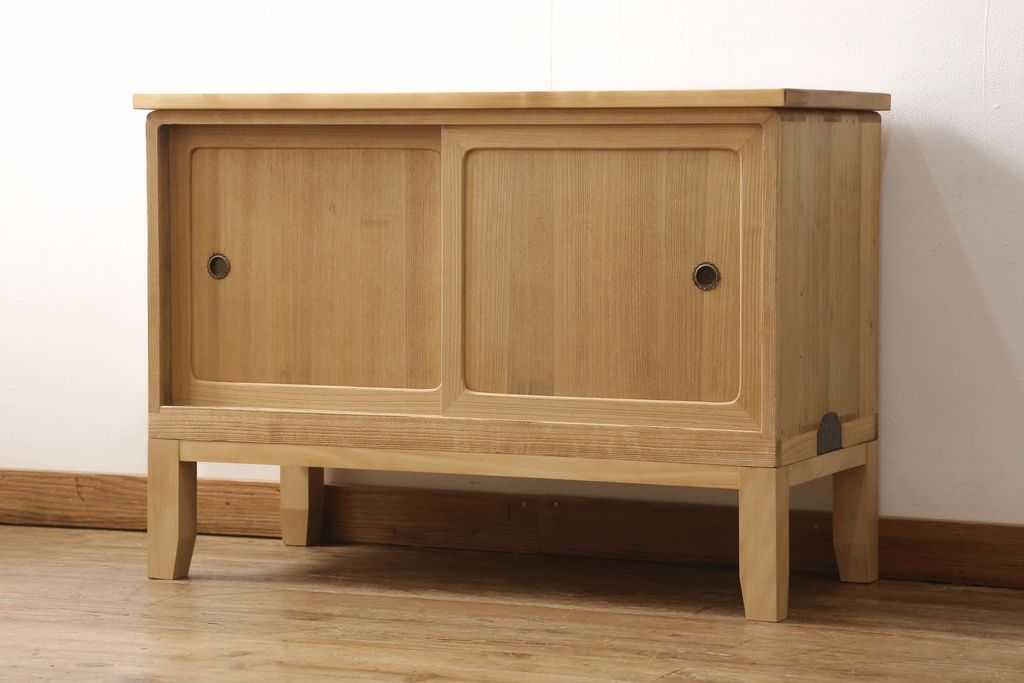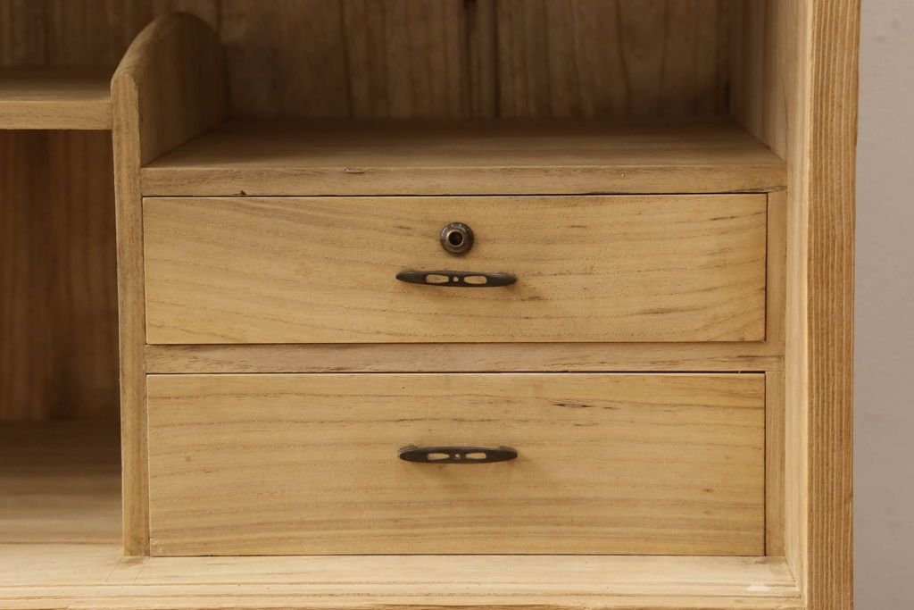 3段重ね桐箪笥をローボード2台とローチェストにリメイク!上段・中段はローボードに加工し、脚の取り付け。それぞれにヒノキ無垢材の天板を追加。自然な木地色仕上げに。