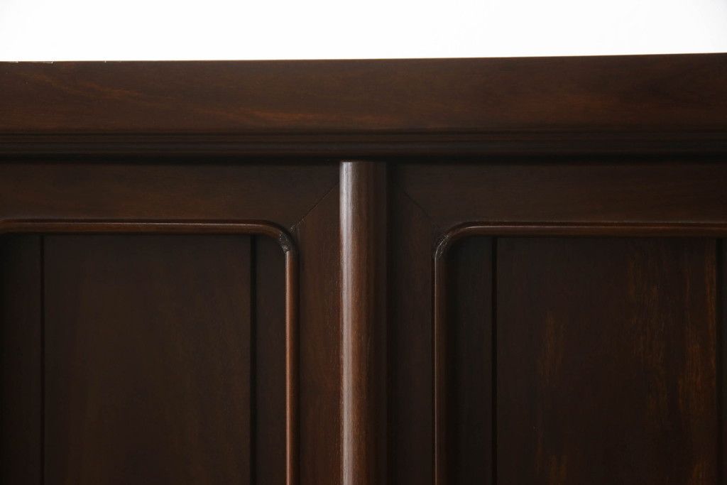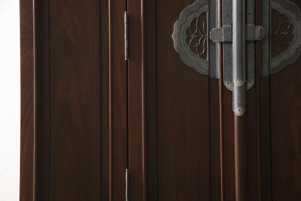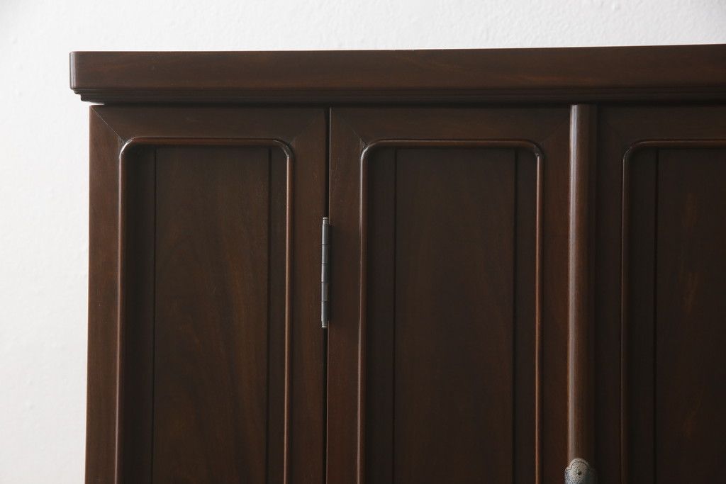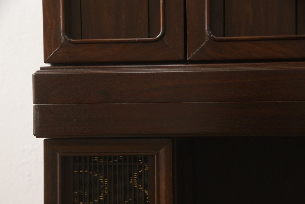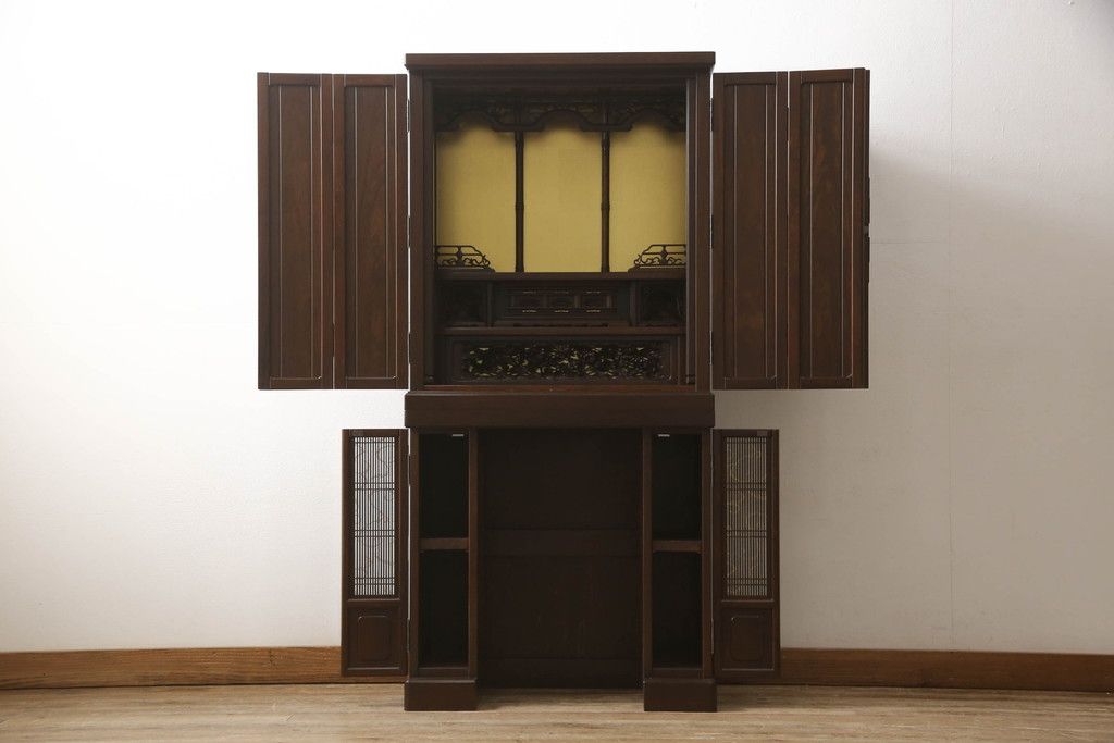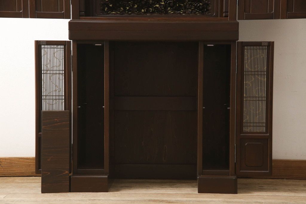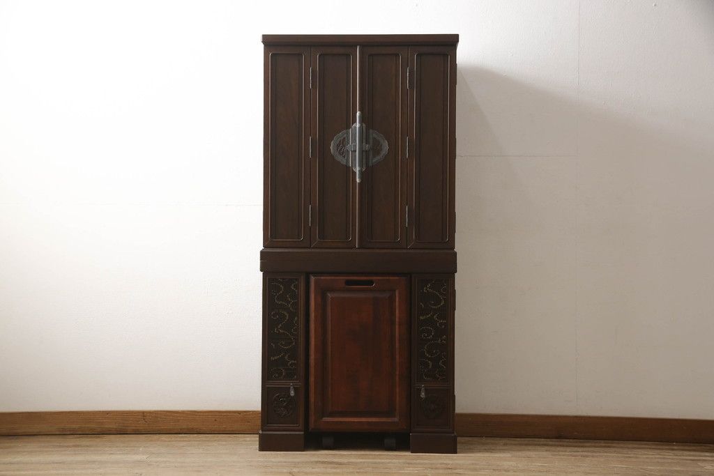 お仏壇をコンパクトにリメイク!上段は指定サイズにリサイズ。下段はお手持ちの椅子を格納できる仕様で新規製作。左右の扉には上段の建具を活用。全体を元の色味に合わせて仕上げ。