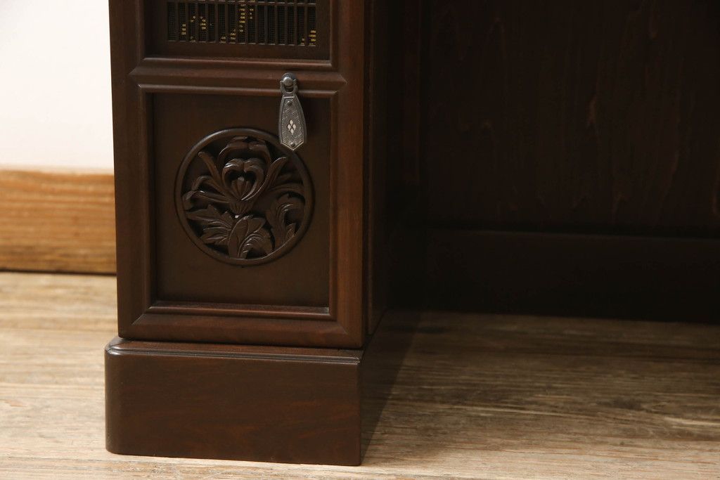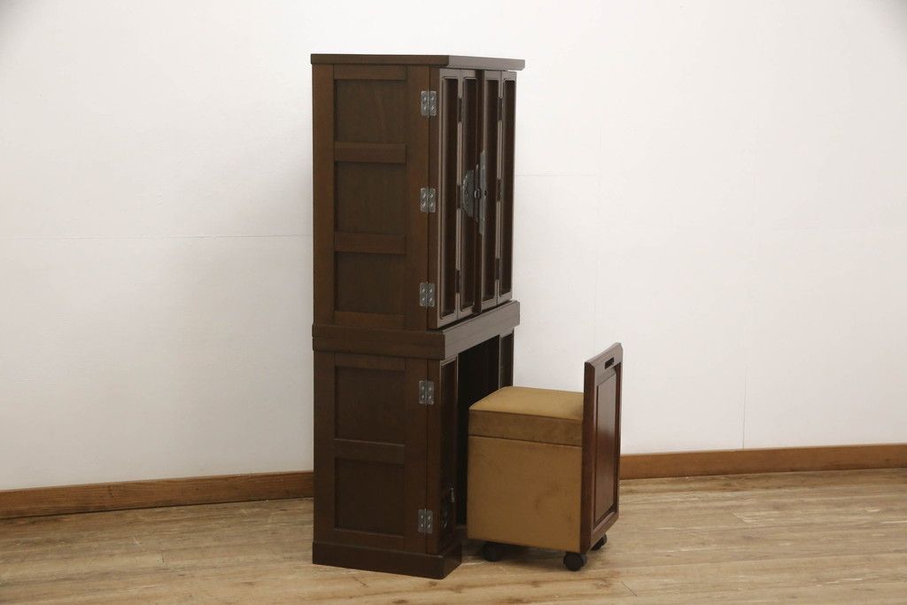 お手持ちの家具・建具リメイク実績> 仏壇リメイク実績 > お仏壇をコンパクトにリメイク!上段は指定サイズにリサイズ。下段はお手持ちの椅子を格納できる仕様で新規製作。左右の扉には上段の建具を活用。全体を元の色味に合わせて仕上げ。