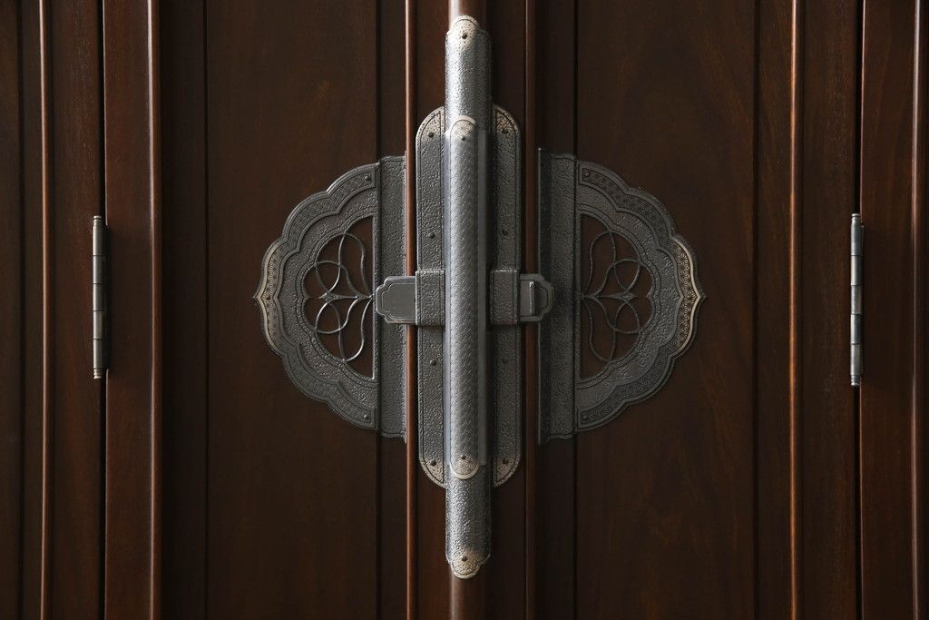 ・建具4枚格子戸(内側)のうち2枚のみをリサイズし、下段左右の開き戸に使用