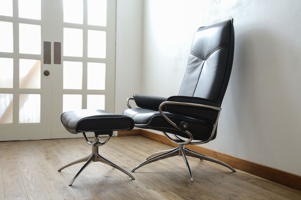 ラフジュ工房> 椅子・ベンチ> スツール > 中古 美品 ノルウェー製 EKORNES(エコーネス) City(シティ) Mサイズ オットマン付き!!スタイリッシュなデザインが魅力のストレスレスチェア(スターベース、1人掛けソファ、1Pソファ、アームチェア、リクライニングチェア、フットスツール、北欧、本革、レザーチェア)(定価約30万円)(R-066317)