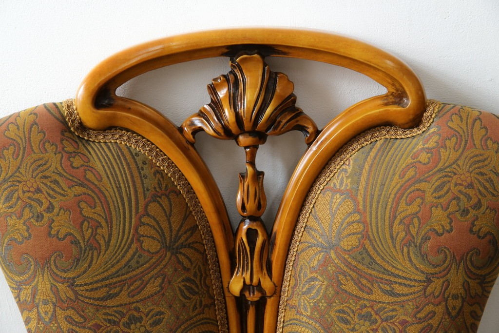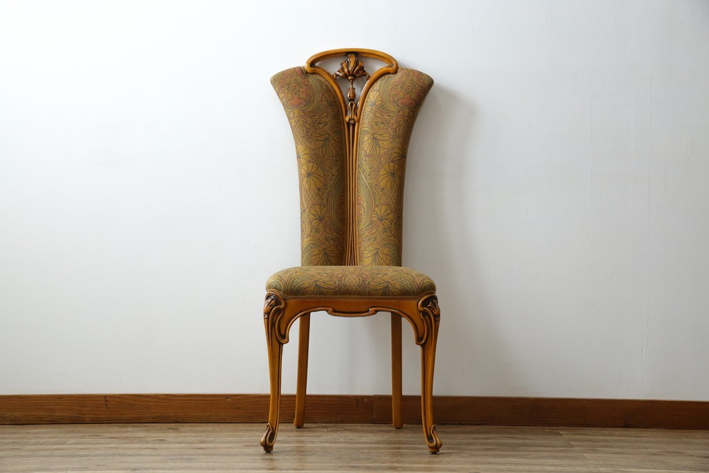 椅子・ベンチ> ダイニングチェア > 中古 美品 高級ブランド家具 CLイタリア(CLItalia)社 気品あふれる優雅なデザインが魅力のダイニングチェア(サロンチェア、ハイバックチェア、椅子、イス)(定価約55万円)(R-066588)