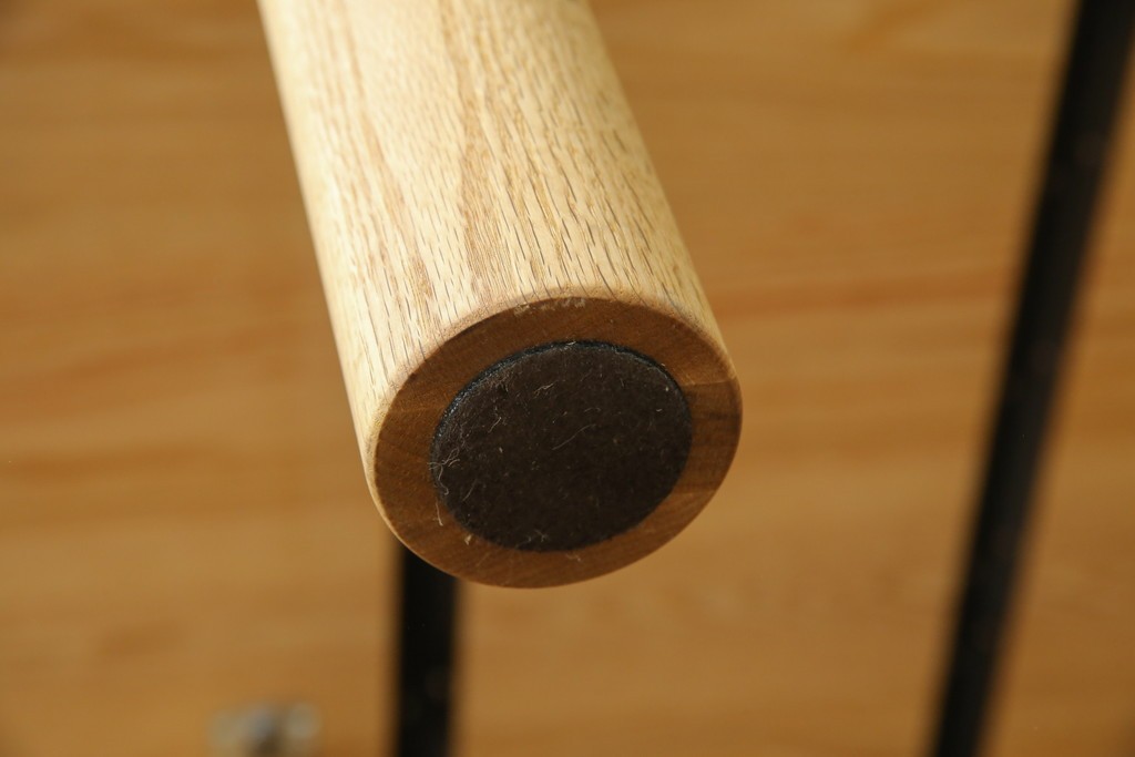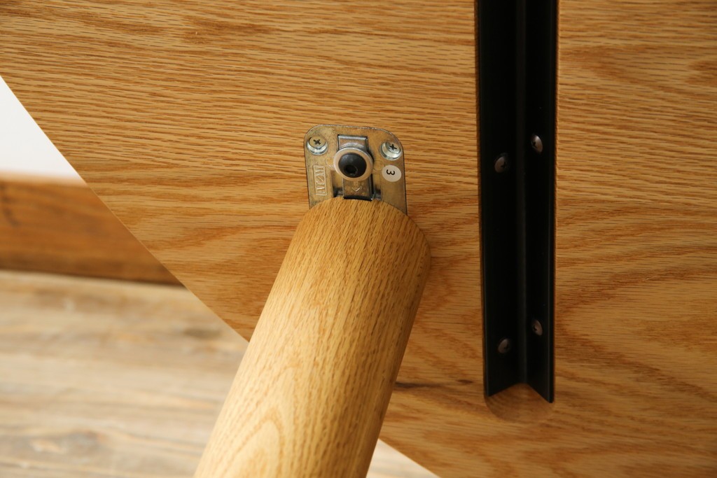 ・天板裏の金物はオリジナルの反り止め(鉄製)です。イスの収納時にも干渉しない埋め込み型です。