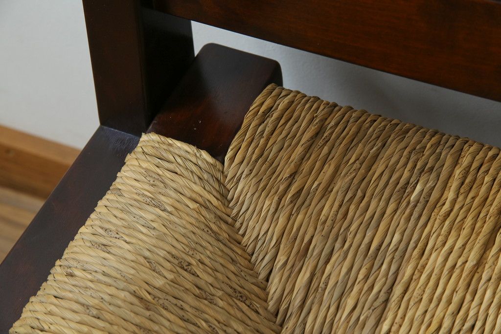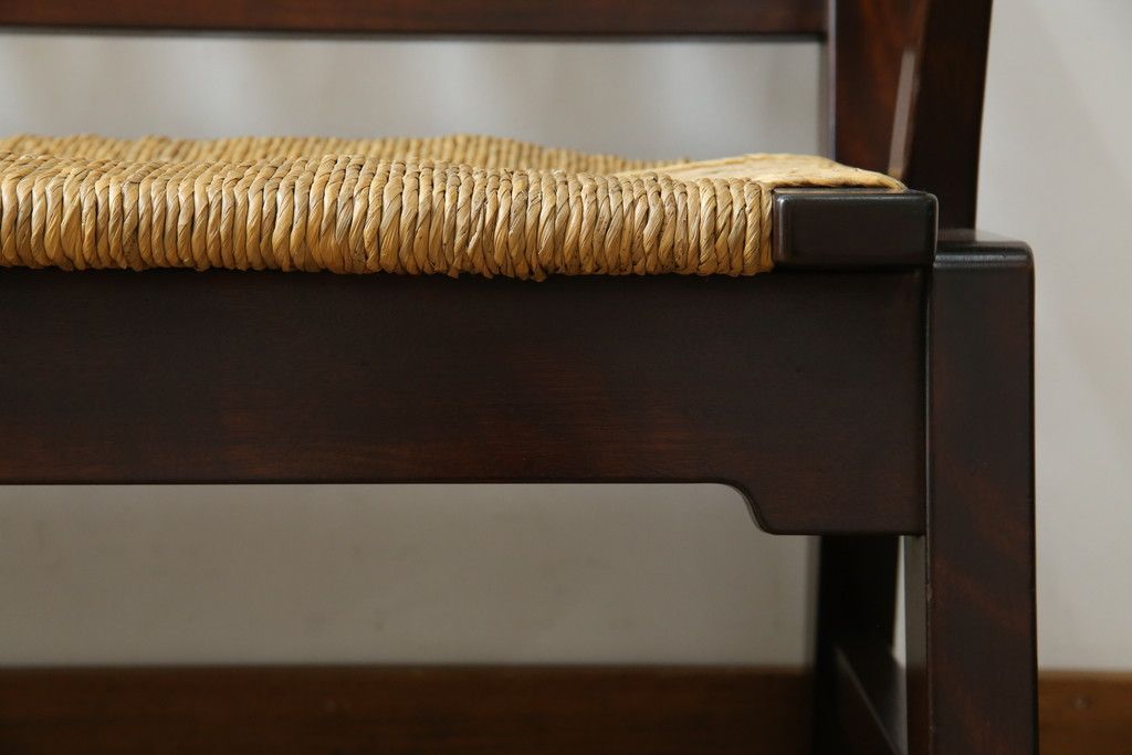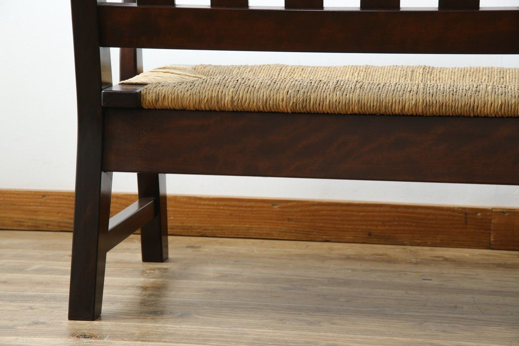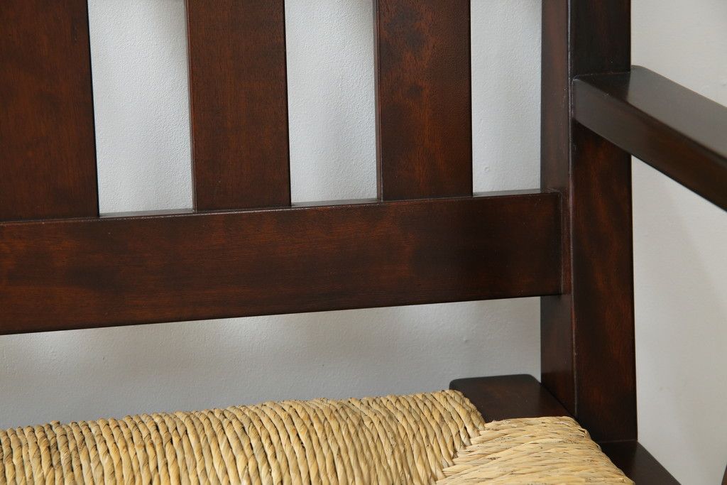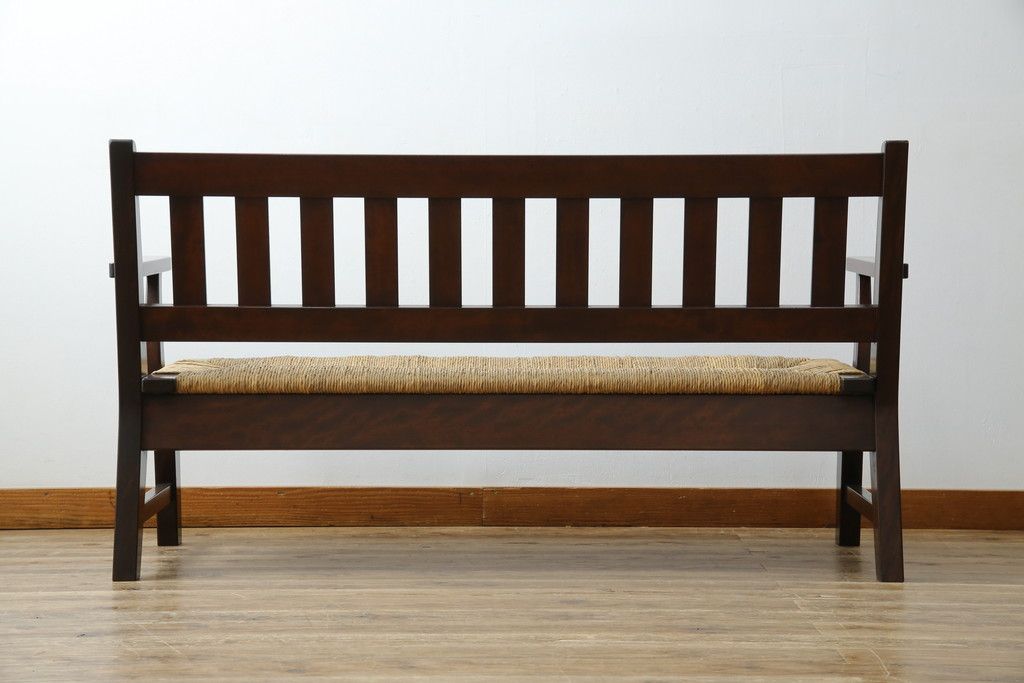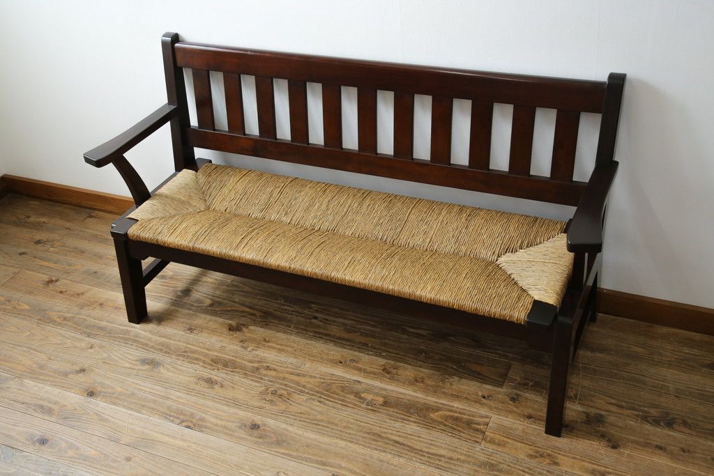 民芸家具 > 中古 稀少 特注品 松本民芸家具 縦桟背もたれのすっきりしたデザインが目を引くラッシベンチ(2人掛け、2.5人掛け、3人掛け、長イス、長椅子、アームチェア、ダイニングチェア)(R-067241)