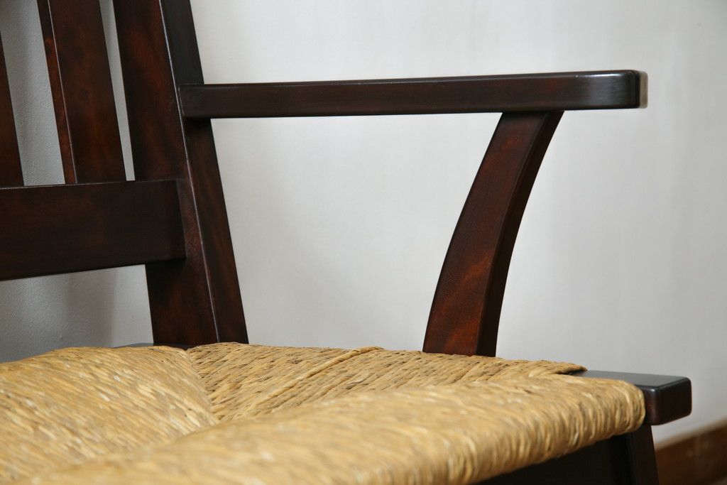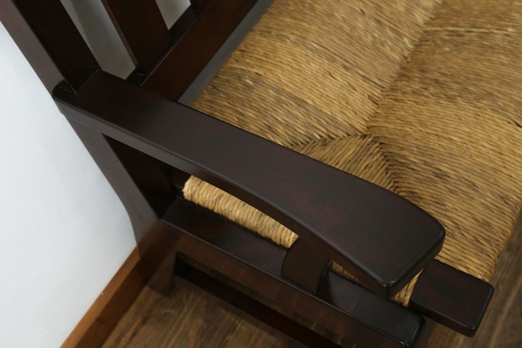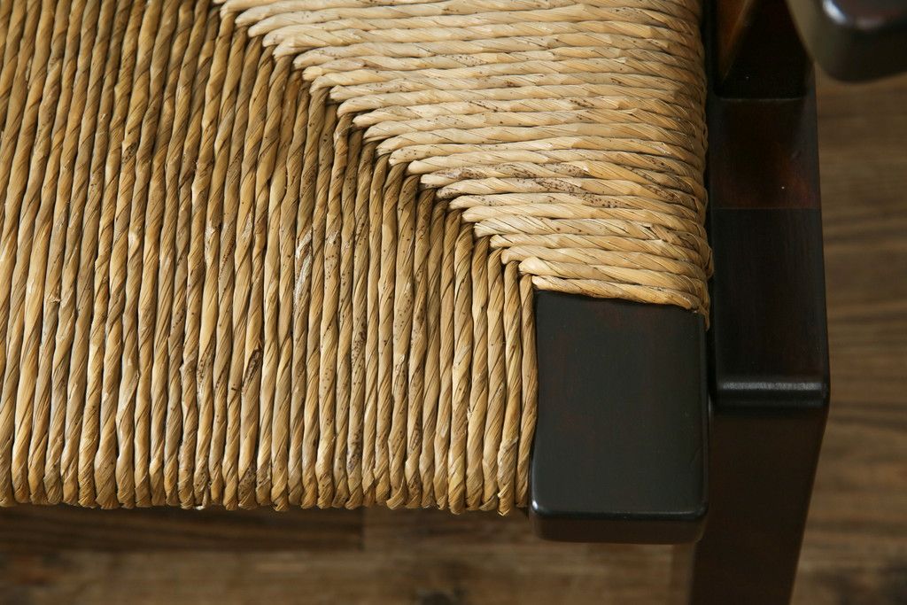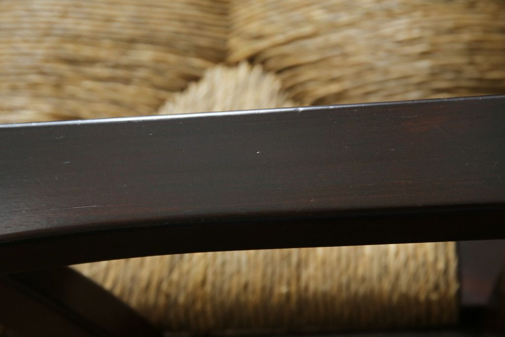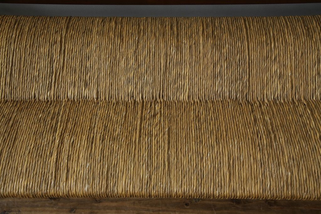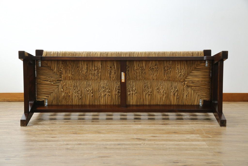 民芸家具 > 中古 稀少 特注品 松本民芸家具 縦桟背もたれのすっきりしたデザインが目を引くラッシベンチ(2人掛け、2.5人掛け、3人掛け、長イス、長椅子、アームチェア、ダイニングチェア)(R-067241)