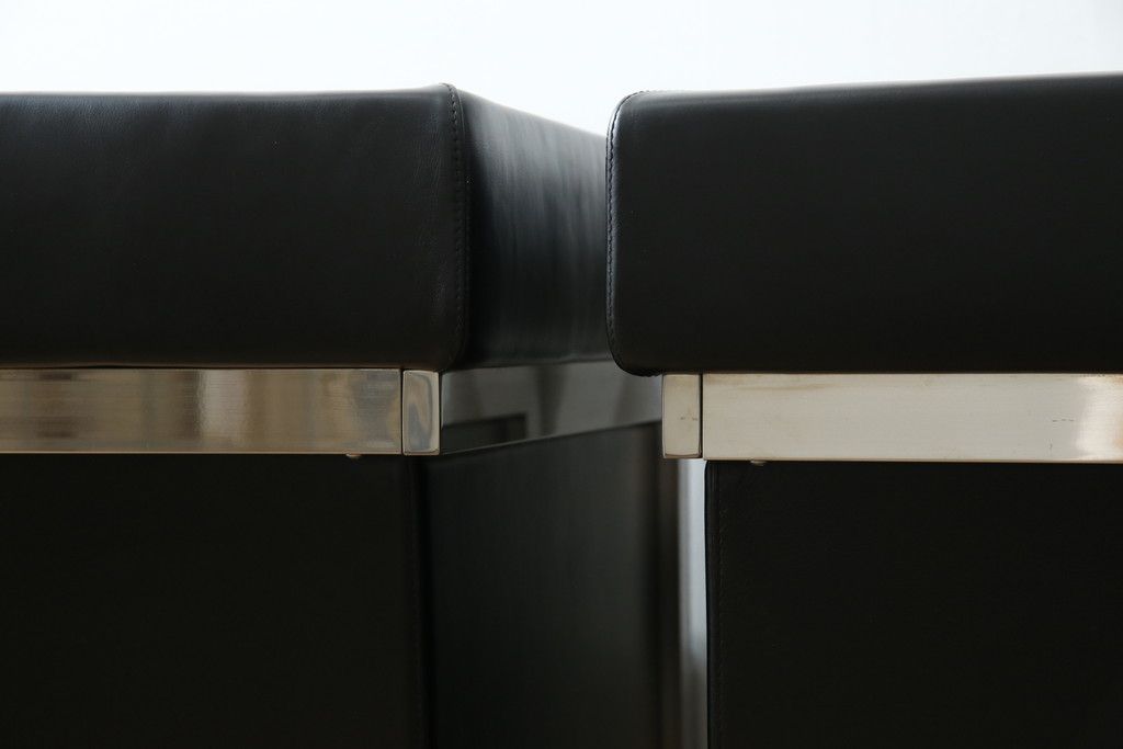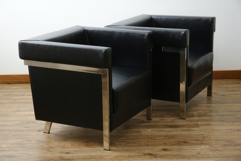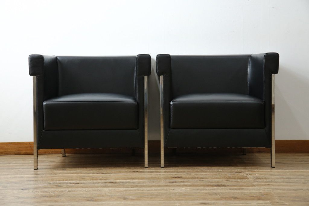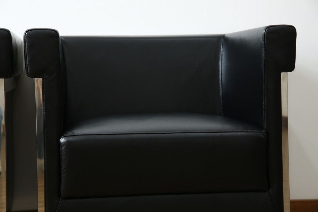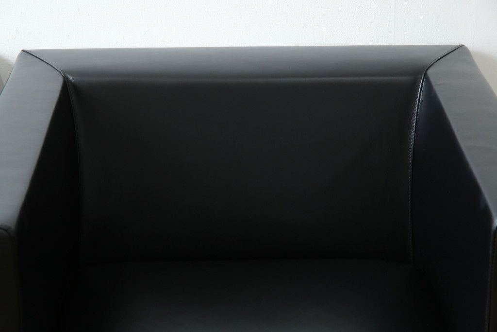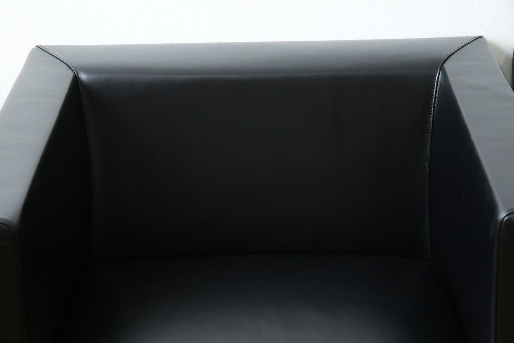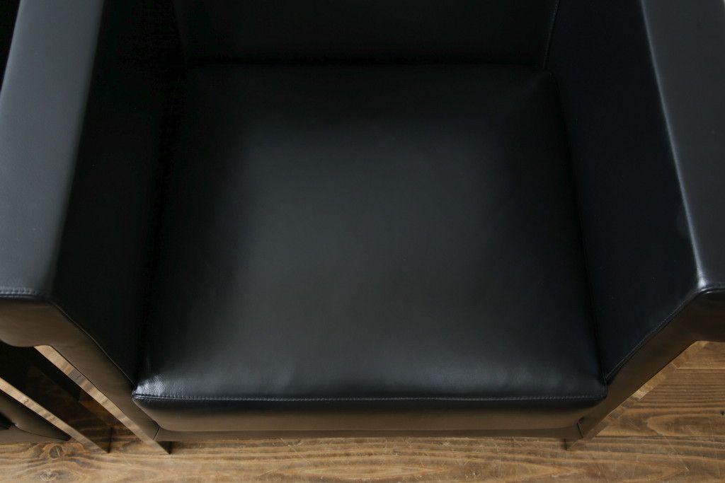 椅子・ベンチ> アームチェア > 中古 美品 希少な廃盤品 アイデックモダン(AIDEC MODERN) パスカル(PASCAL) 本革(レザー) スクエア型のモダンなデザインが特徴的な1Pソファ(1人掛けソファ、ラウンジチェア、レザーチェア、アームチェア、椅子、イス、いす、バラ売り可能)(定価2脚で約70万円)(R-068574)