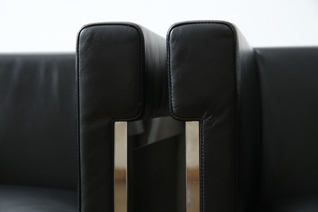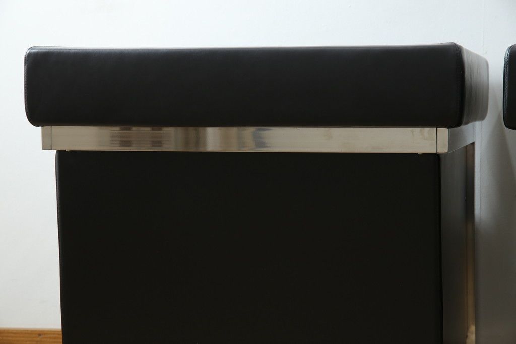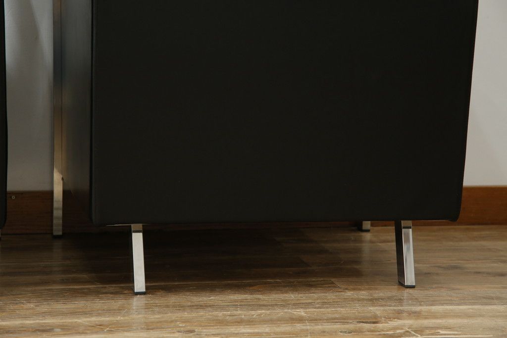 中古 美品 希少な廃盤品 アイデックモダン(AIDEC MODERN) パスカル(PASCAL) 本革(レザー) スクエア型のモダンなデザインが特徴的な1Pソファ(1人掛けソファ、ラウンジチェア、レザーチェア、アームチェア、椅子、イス、いす、バラ売り可能)(定価2脚で約70万円)(R-068574)
