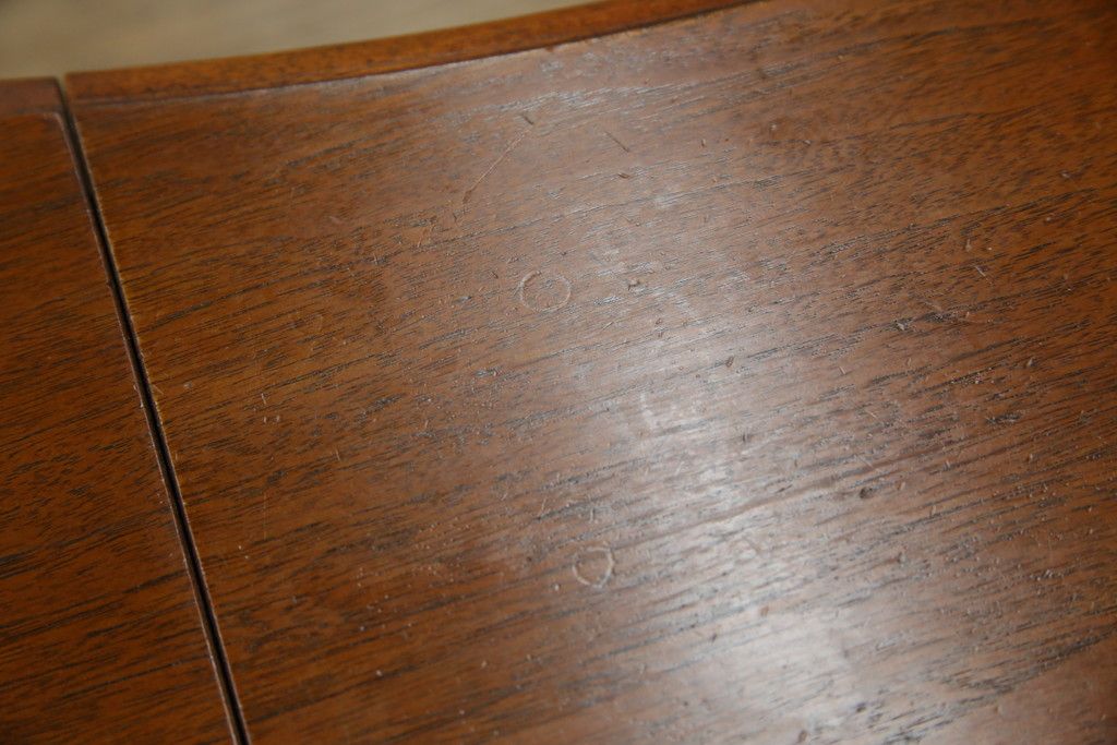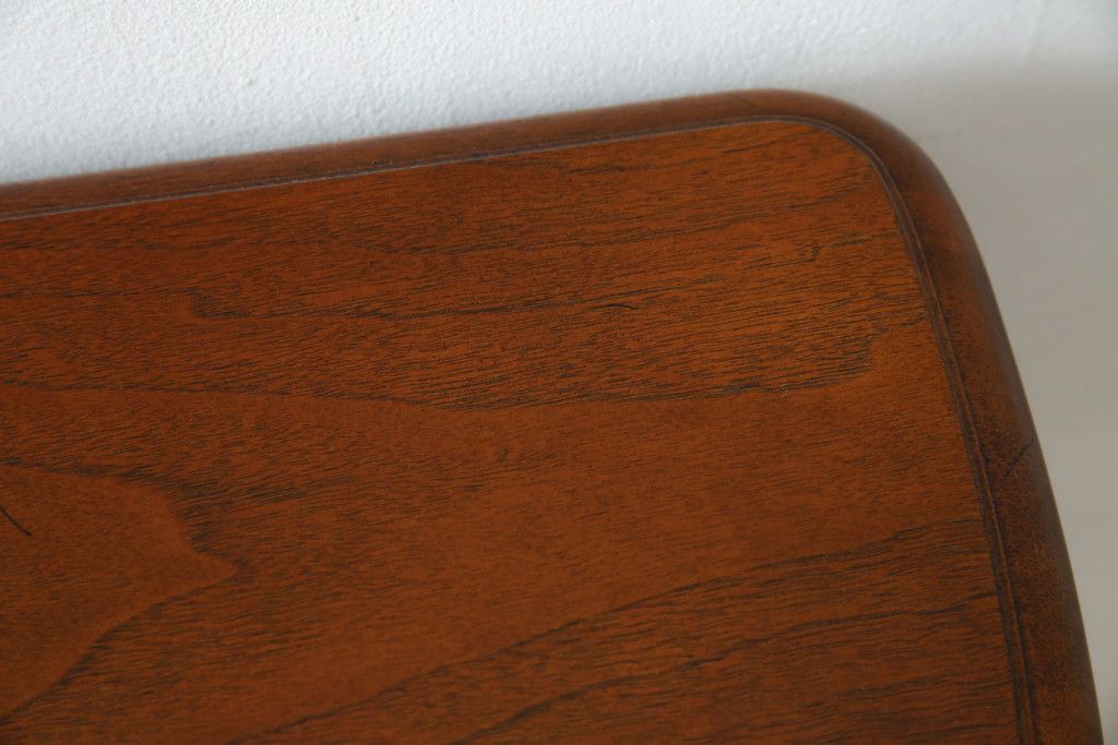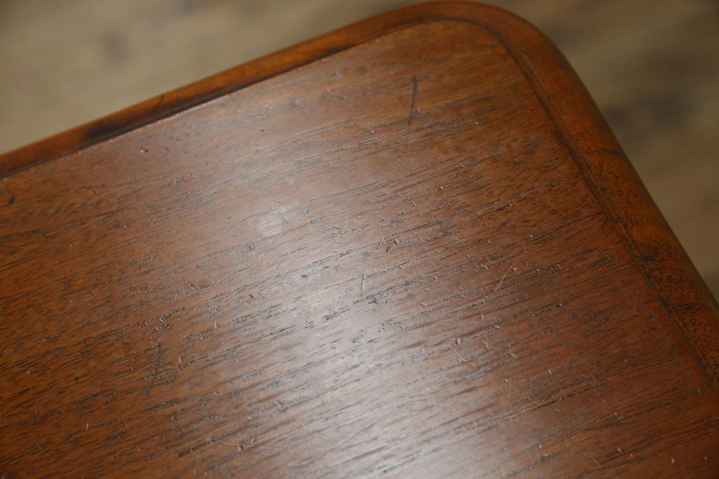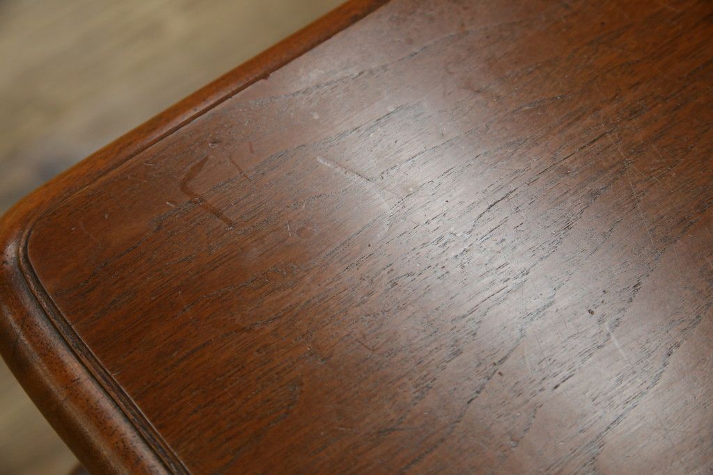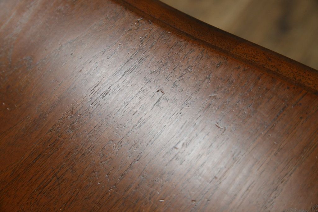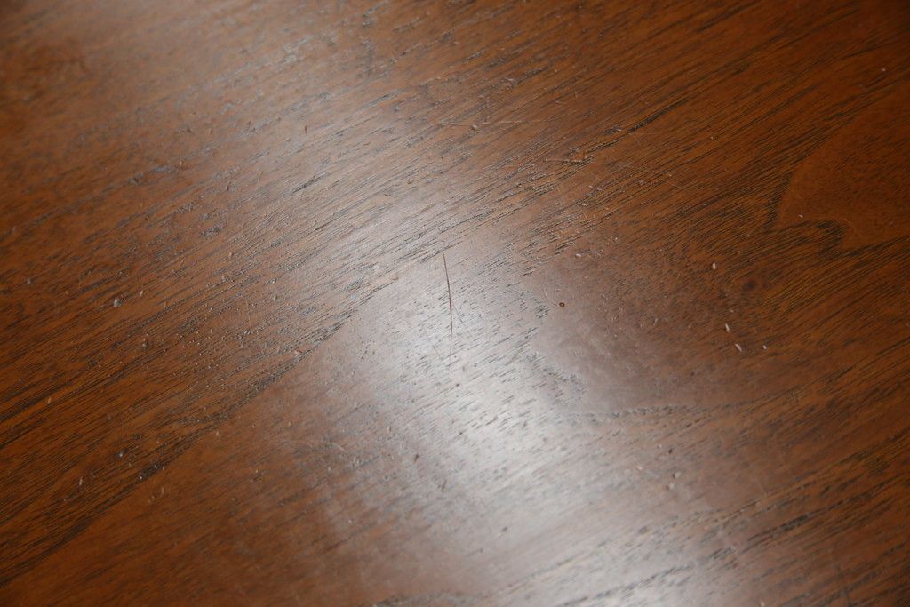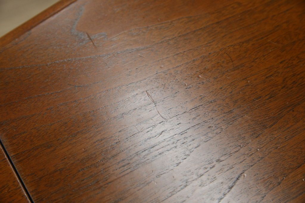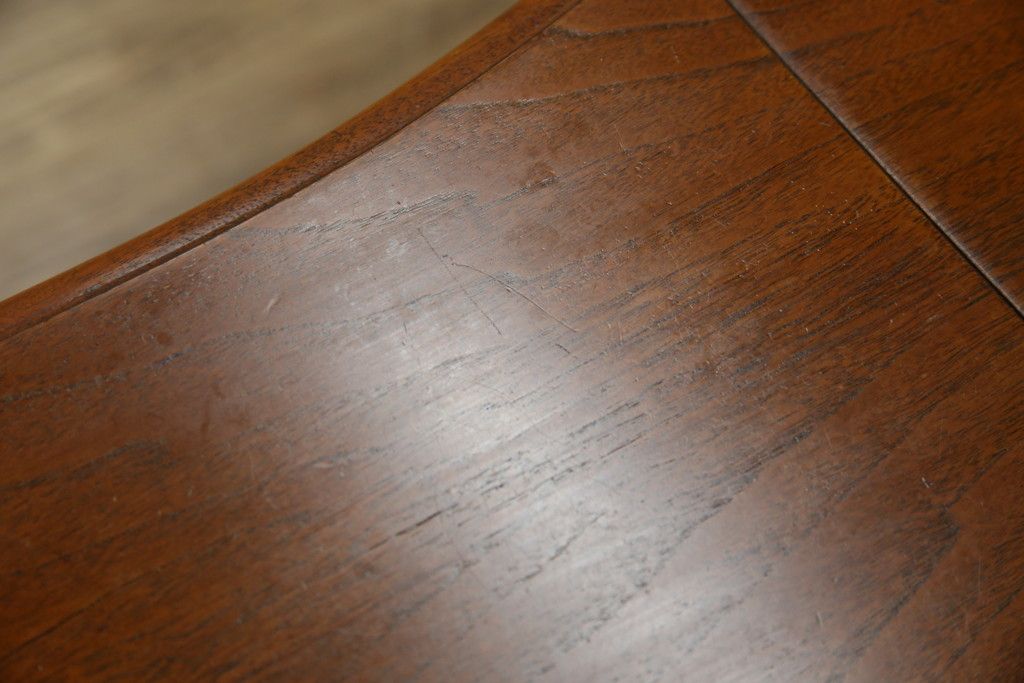 天板は当店でクリア塗装を施しております。小キズ等が目立ちにくく、耐水性と耐久性に優れたお手入れがしやすい仕上げです。
