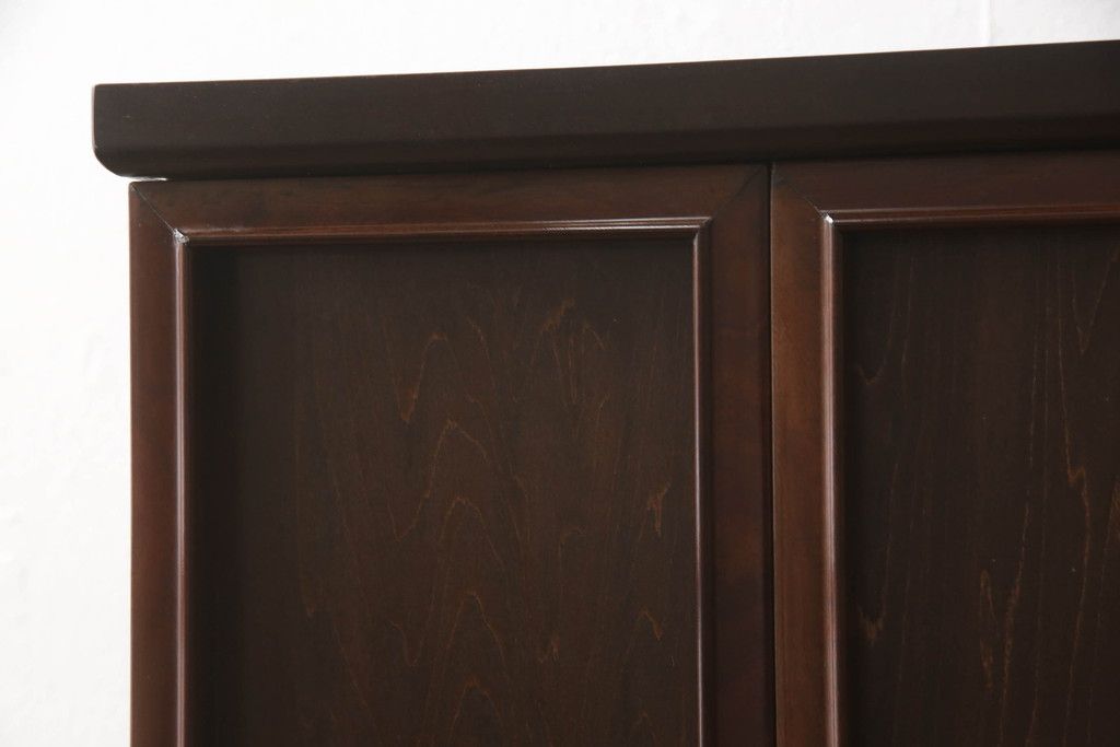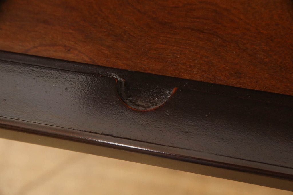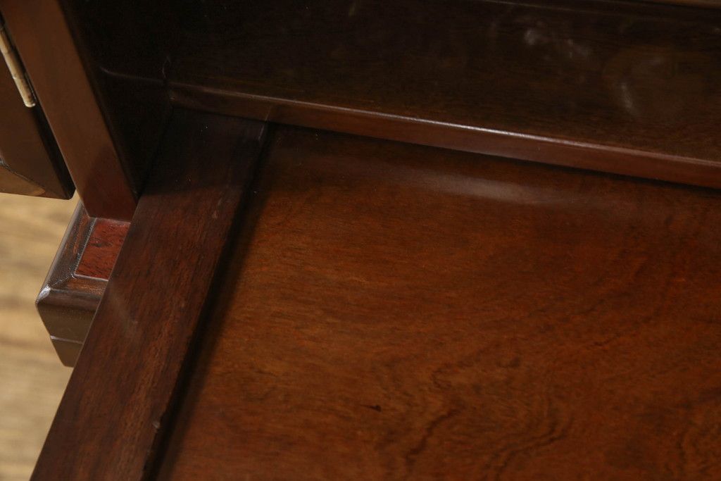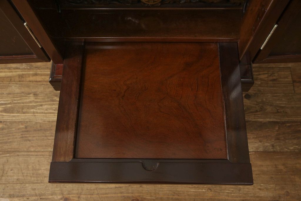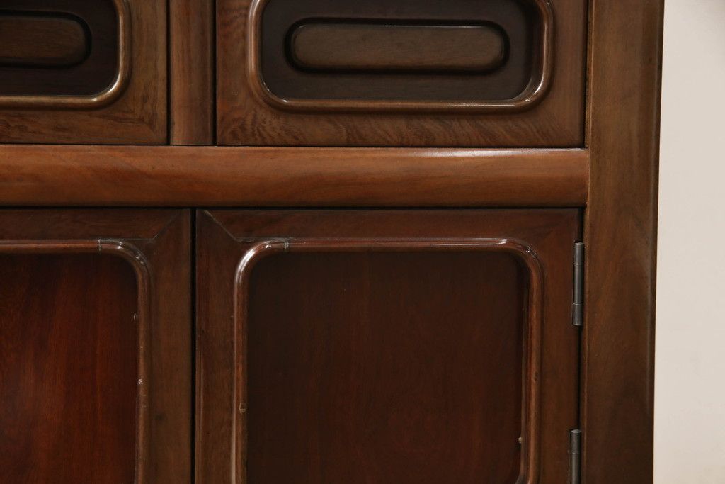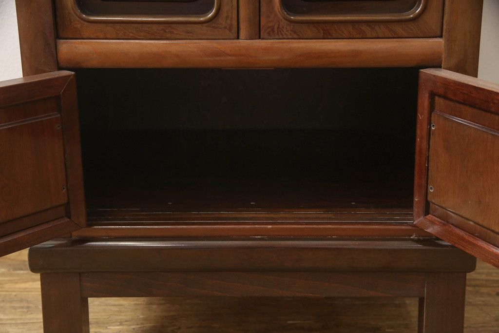 お仏壇をコンパクトにリメイク!上段は4枚組だった建具を2枚組に加工。上部にあった家紋も移設。下段は引き戸→観音開き仕様に変更。脚を取り付け。背板も新たに取り付け、元の色を活かし全体を着色して仕上げ。