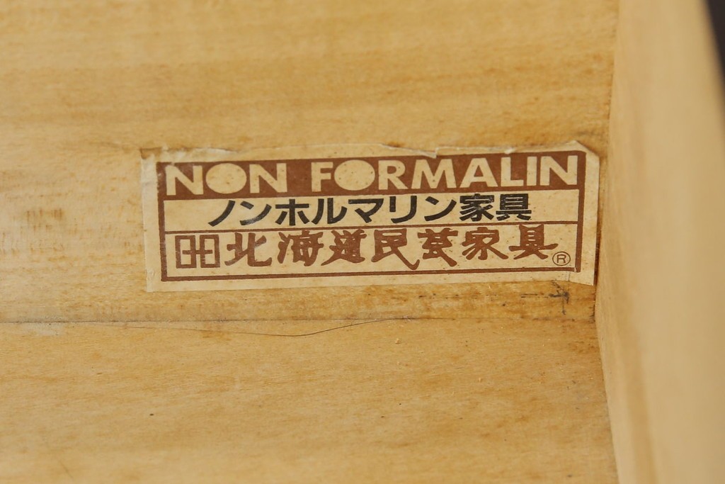 「松本民芸家具」の技術と精神を受け継いだ、1964年設立の北海道家具メーカーです。地元産の樺(カバ)の木を主要材にした丁寧な家具づくりが特徴で、時間と手間をかけた丹精な製法により上質で美しい家具を生み出します。和と洋が調和する独特のデザインからはシックで上品な雰囲気が漂い、使い込むほどに味わいを増していく木味もまた魅力の一つとなっています。ちなみに2009年からは「飛騨産業」がブランドを継承しています。
