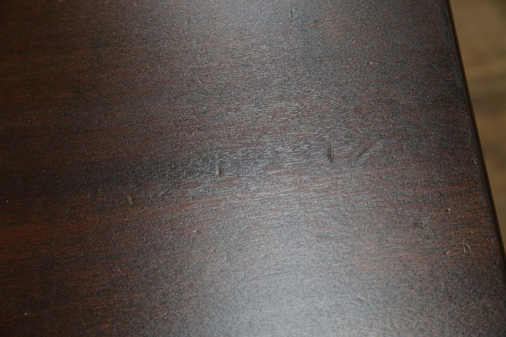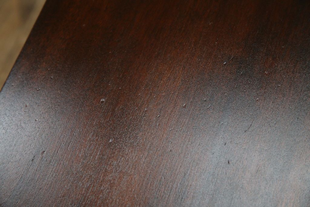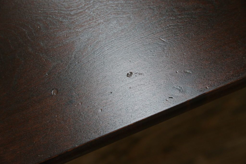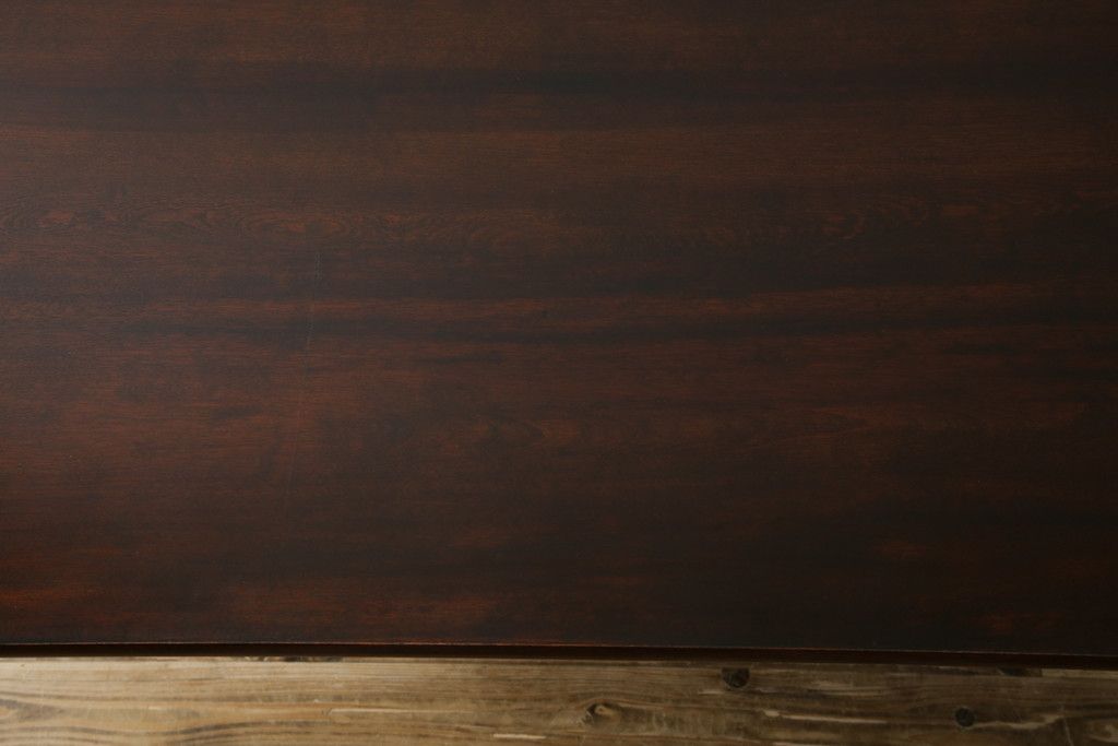 天板は当店でクリア塗装を施しております。小キズ等が目立ちにくく、耐水性と耐久性に優れたお手入れがしやすい仕上げです。