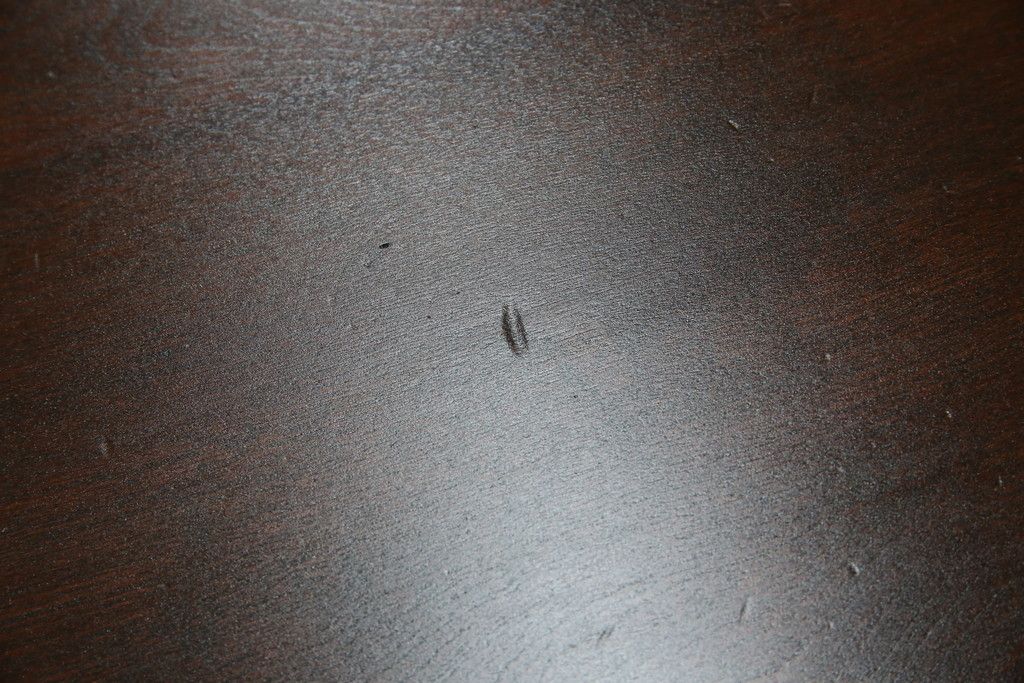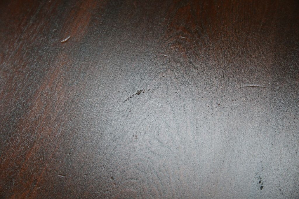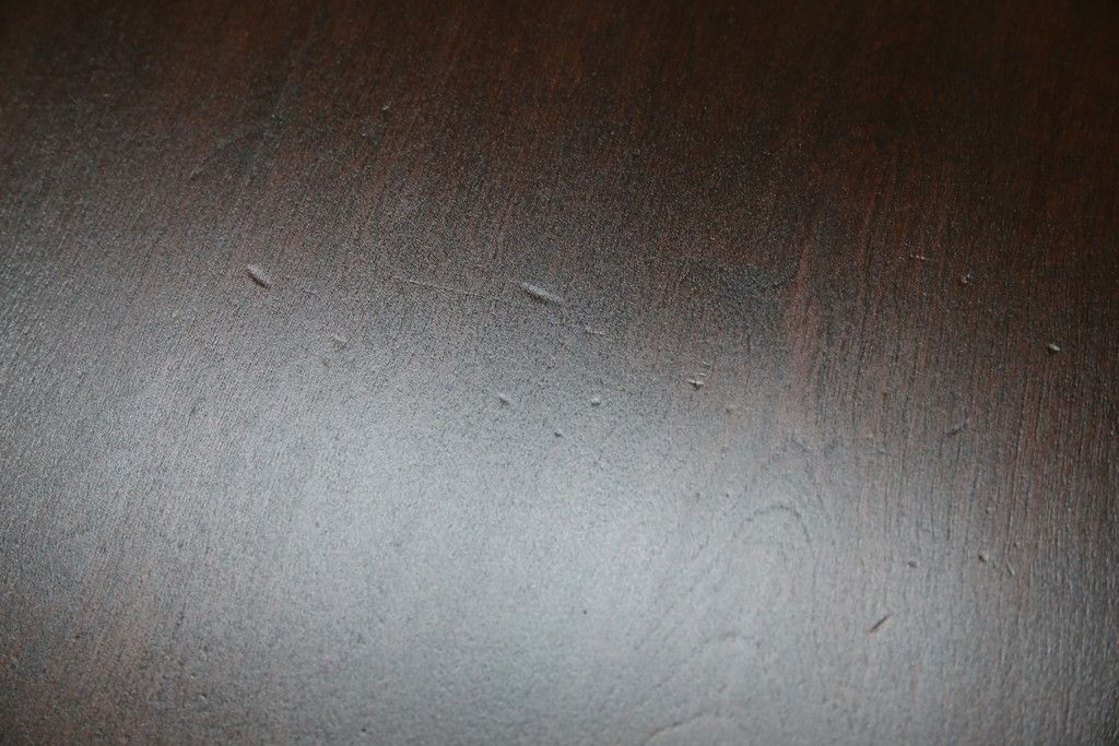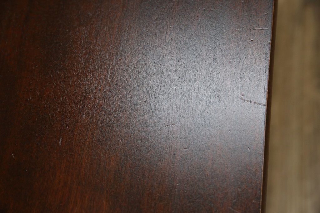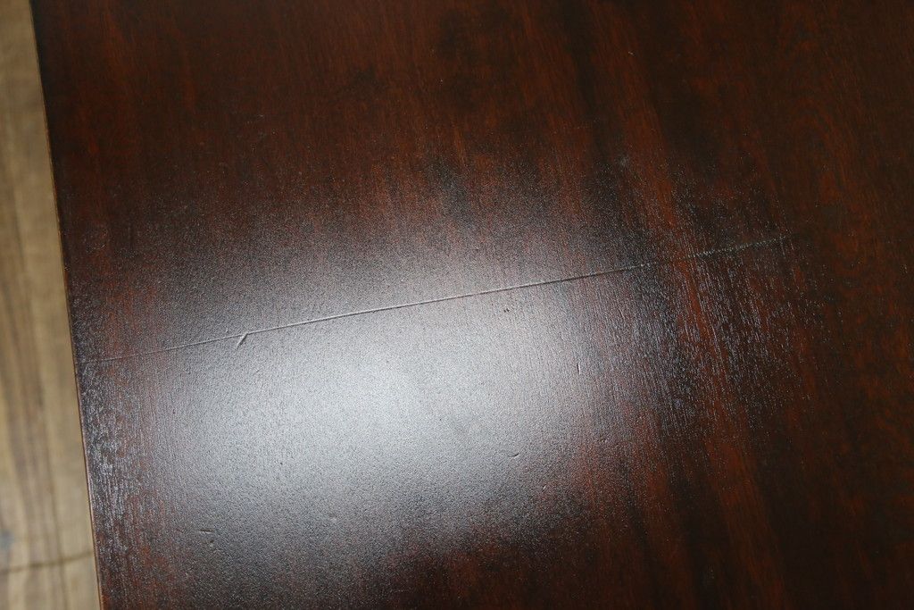 天板は当店でクリア塗装を施しております。小キズ等が目立ちにくく、耐水性と耐久性に優れたお手入れがしやすい仕上げです。
