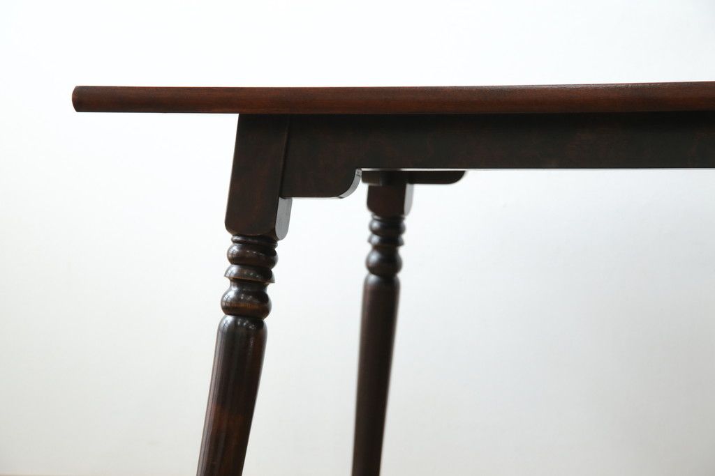 イギリスアンティークを思わせる挽き物の脚の形から、