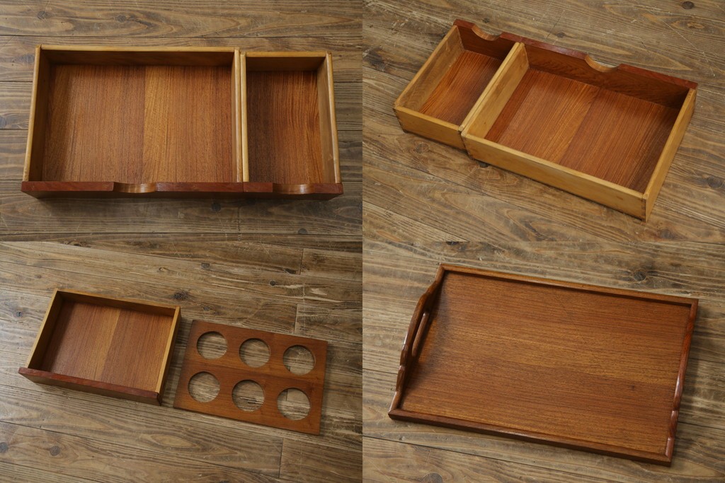 ヨーロッパヴィンテージ チーク材 ワインラックに活躍!クラシカルなデザインが素敵なサーバー (R-069111)