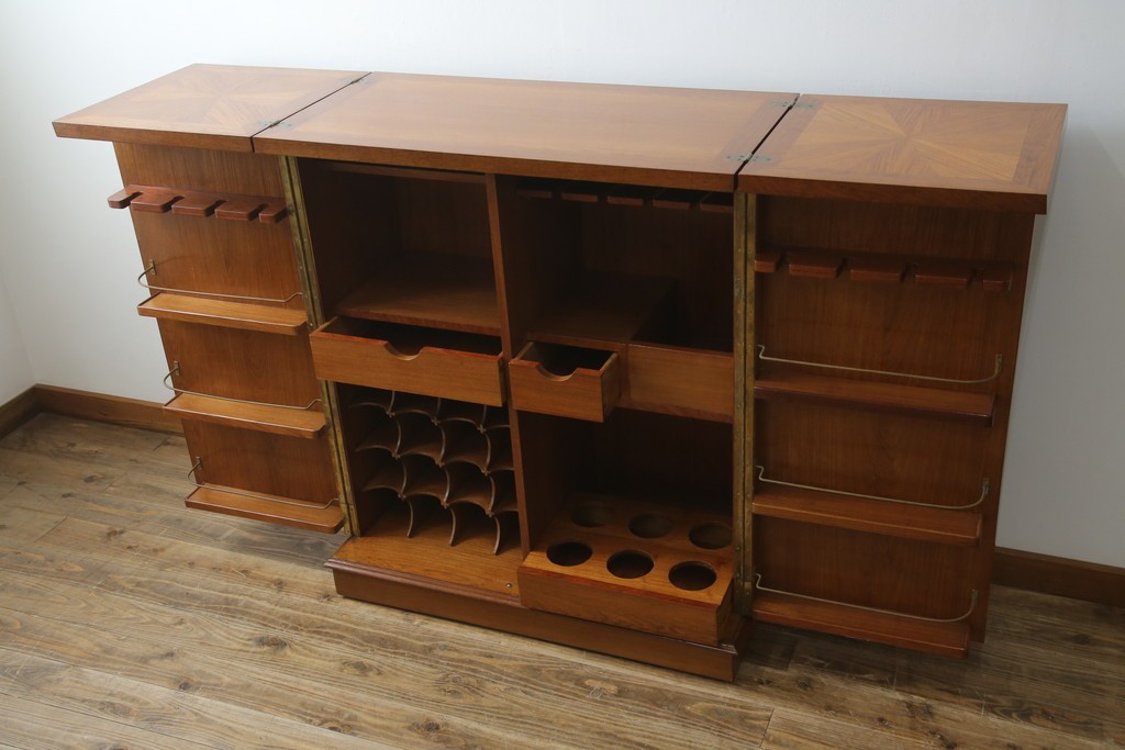 キャビネット・戸棚 > ヨーロッパヴィンテージ チーク材 ワインラックに活躍!クラシカルなデザインが素敵なサーバー (R-069111)