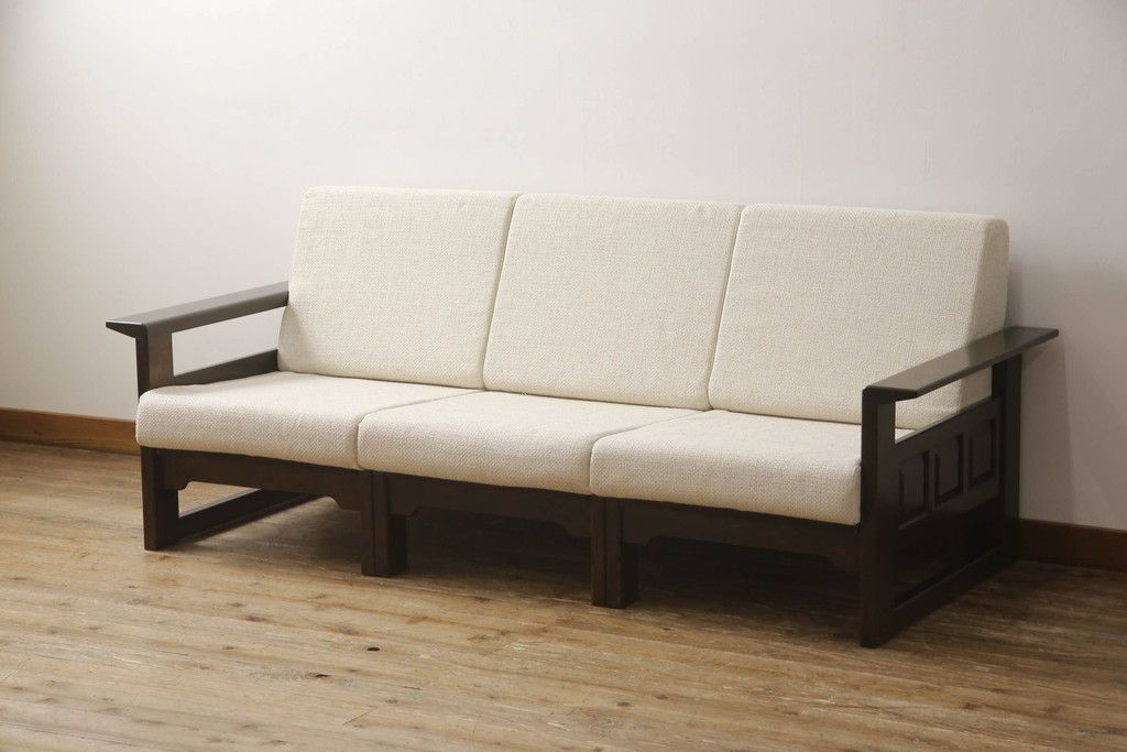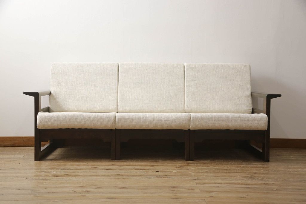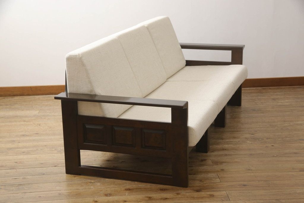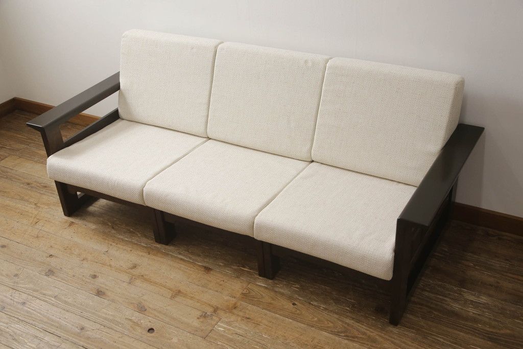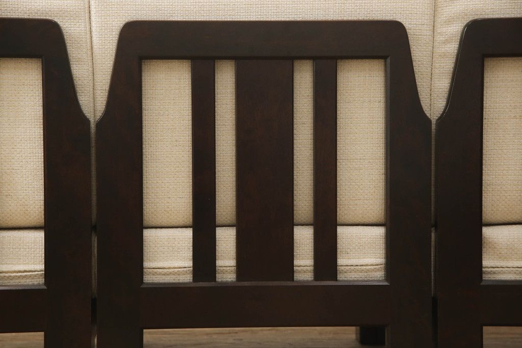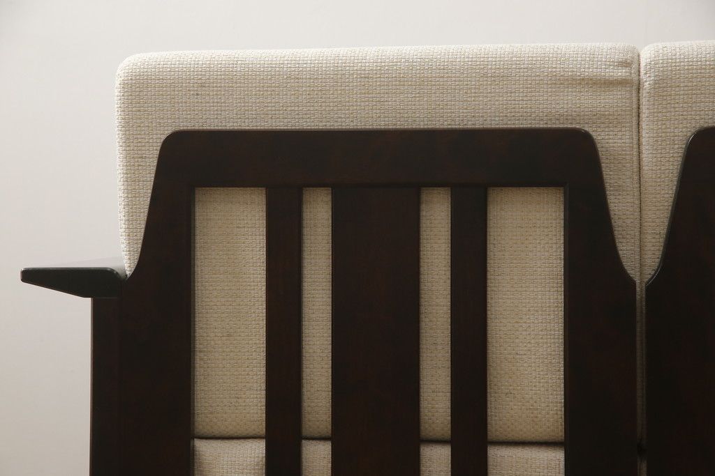 ソファ> 3人掛けソファ > 北海道民芸家具の2人掛けソファをリペア&カスタム!高品質リペアを施し、座面と背もたれのクッション内部を交換し、生地を張り替え。(3人掛けソファ、3P)
