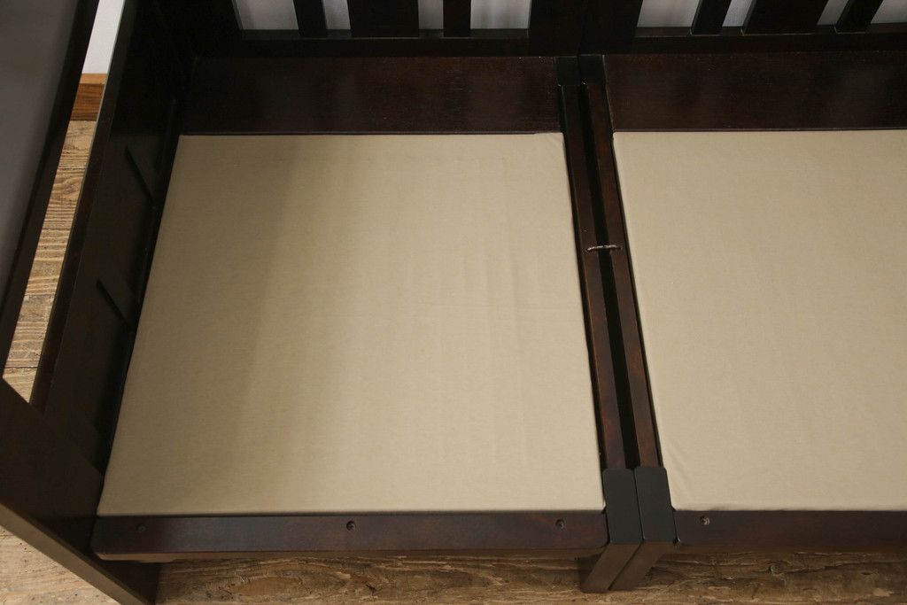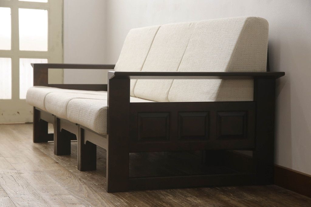 北海道民芸家具の2人掛けソファをリペア&カスタム!高品質リペアを施し、座面と背もたれのクッション内部を交換し、生地を張り替え。(3人掛けソファ、3P)