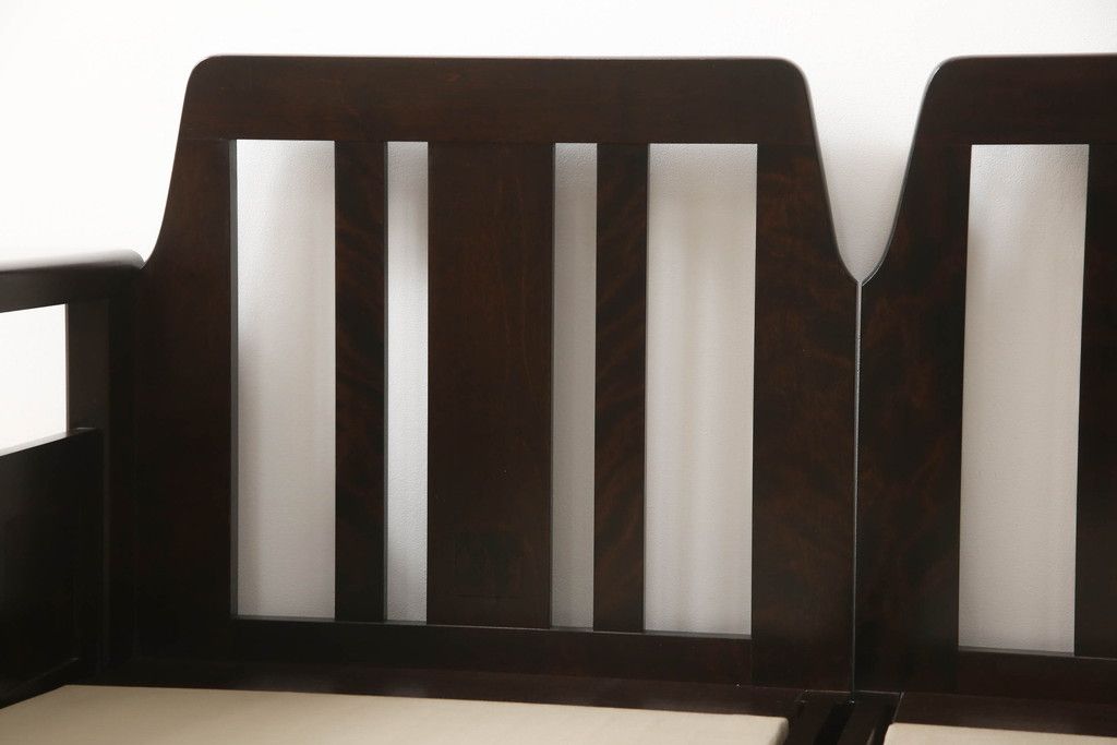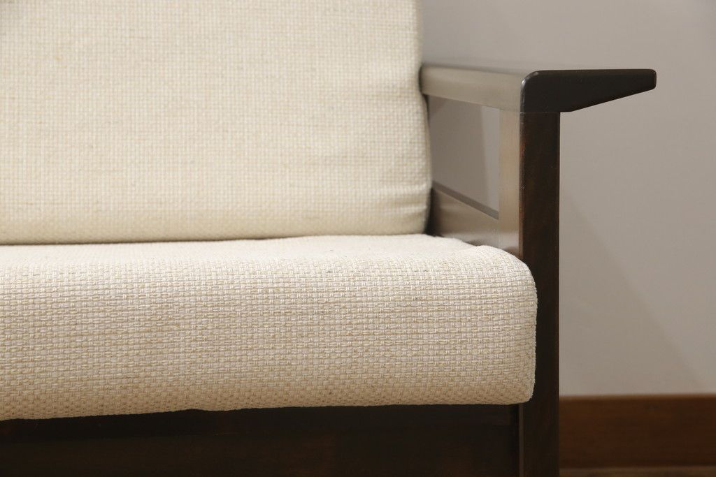 ソファ > 北海道民芸家具の2人掛けソファをリペア&カスタム!高品質リペアを施し、座面と背もたれのクッション内部を交換し、生地を張り替え。(3人掛けソファ、3P)