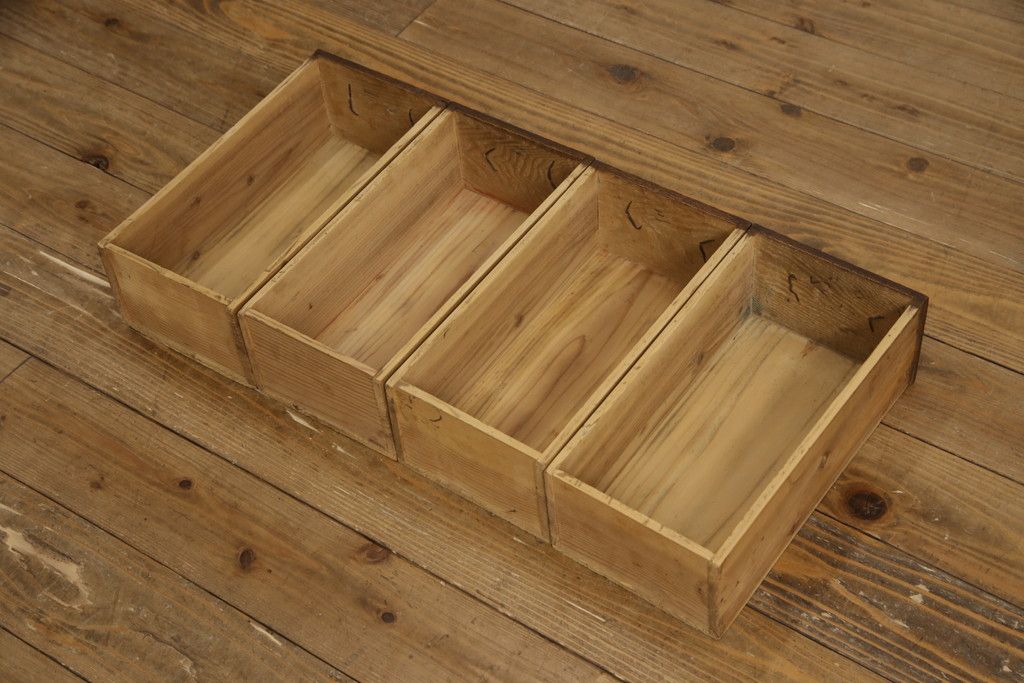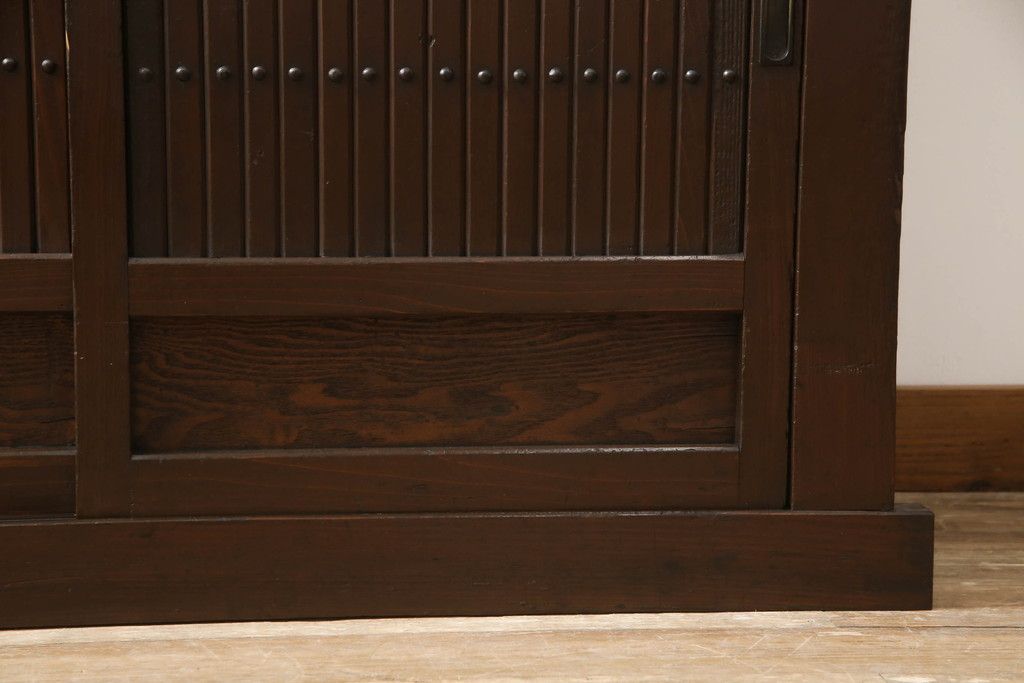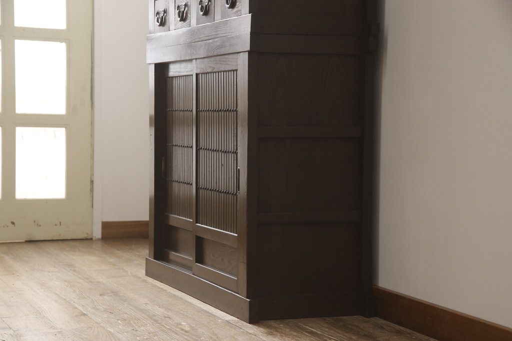 和箪笥> 水屋箪笥 > 重ね水屋箪笥をリペア&カスタム!設置場所に合わせて左右側面の出をカットし、棚板は新材に交換。現状の色味をベースに着色仕上げ。(収納棚、戸棚、食器棚、キャビネット)