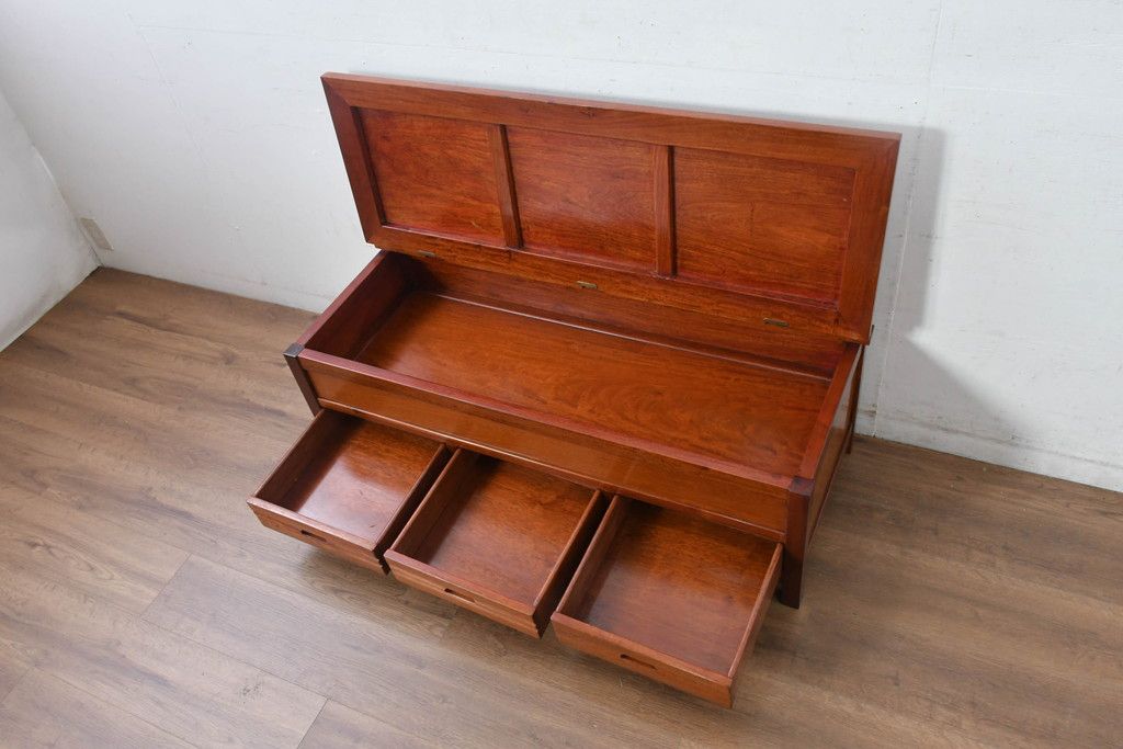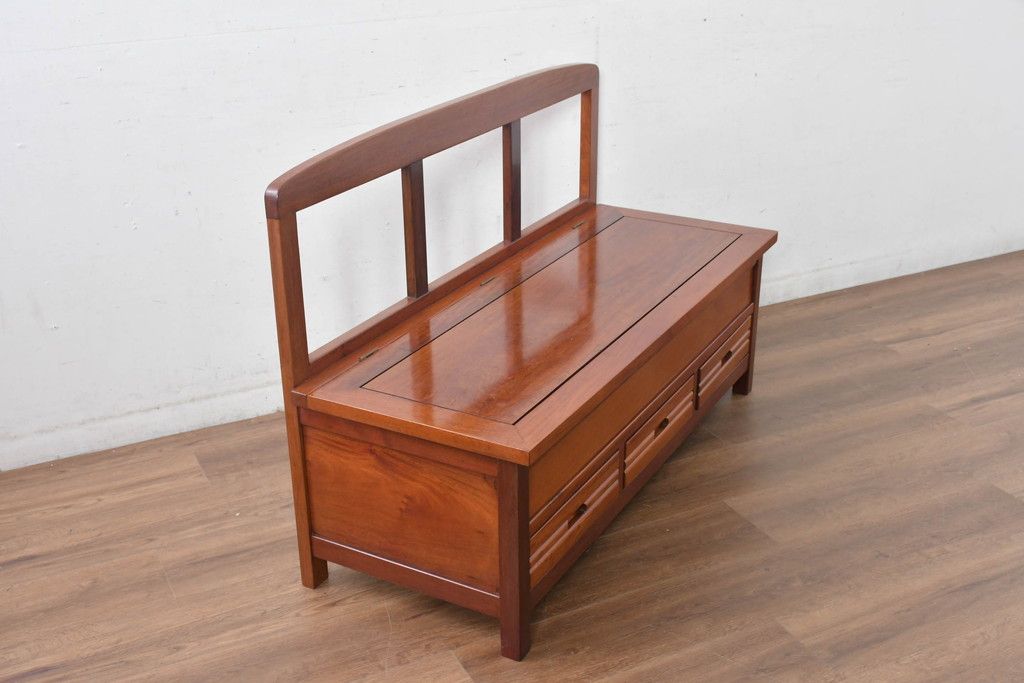 椅子・ベンチ> ベンチ > 中古 民芸家具 花梨(カリン)材 収納付きで便利な囲炉裏ベンチ(椅子、ダイニングチェア、板座チェア)(R-070312)