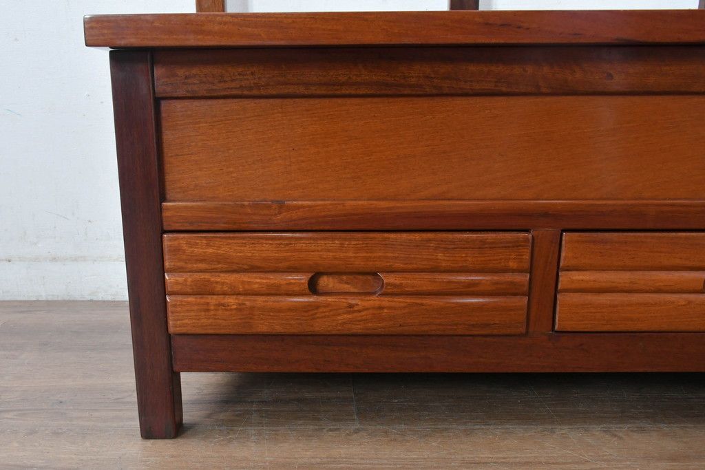 中古 民芸家具 花梨(カリン)材 収納付きで便利な囲炉裏ベンチ(椅子、ダイニングチェア、板座チェア)(R-070312)