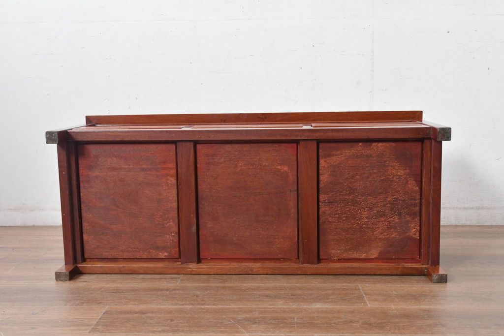 椅子・ベンチ> ダイニングチェア > 中古 民芸家具 花梨(カリン)材 収納付きで便利な囲炉裏ベンチ(椅子、ダイニングチェア、板座チェア)(R-070312)