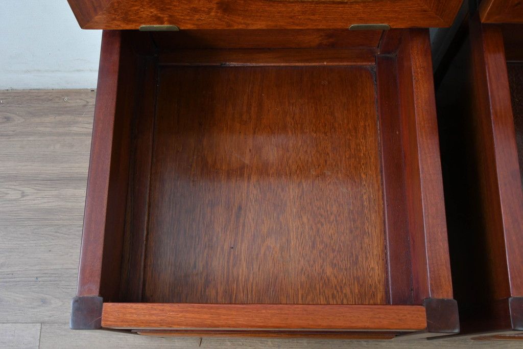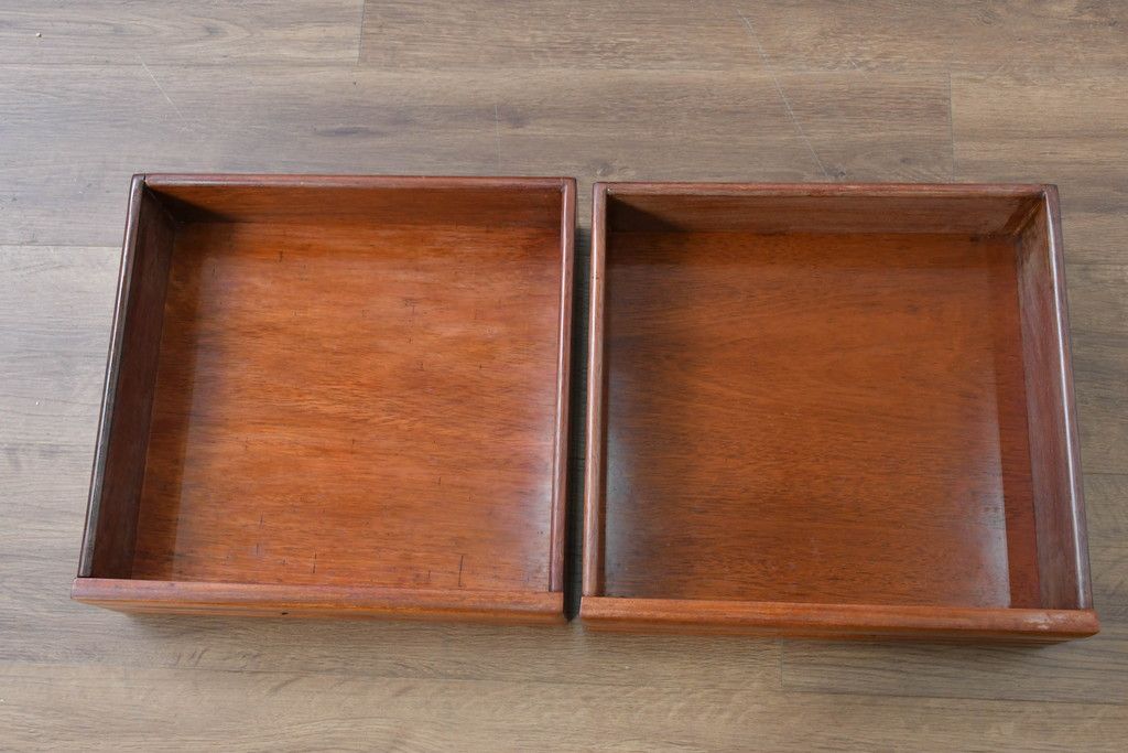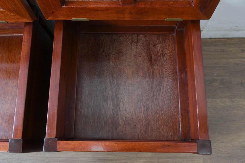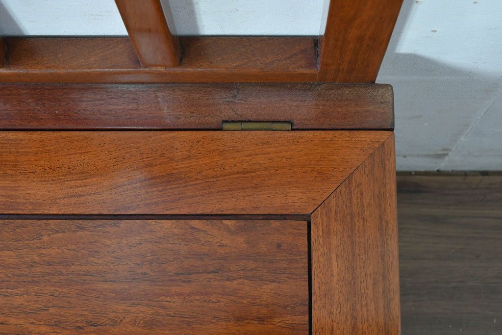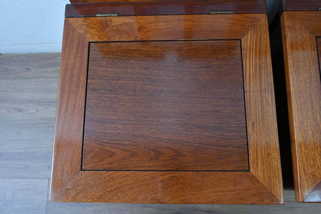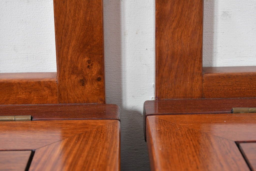 中古 民芸家具 花梨(カリン)材 収納付き囲炉裏チェア2脚セット(椅子、ダイニングチェア、板座チェア)(R-070314)
