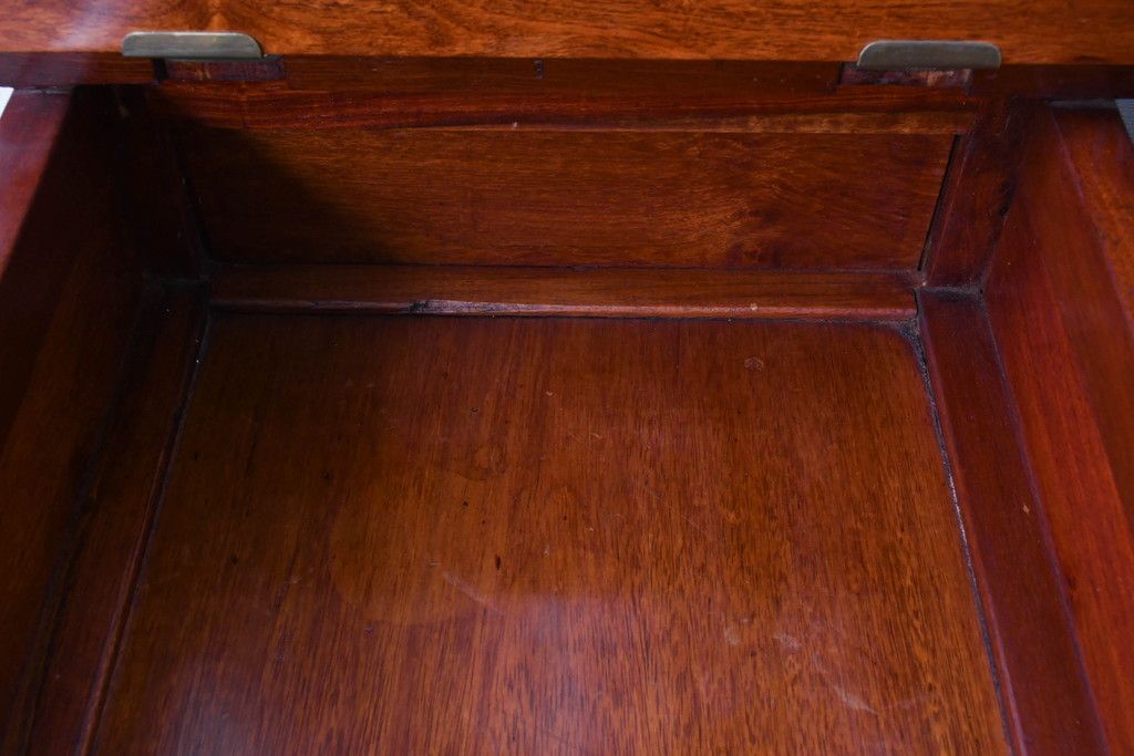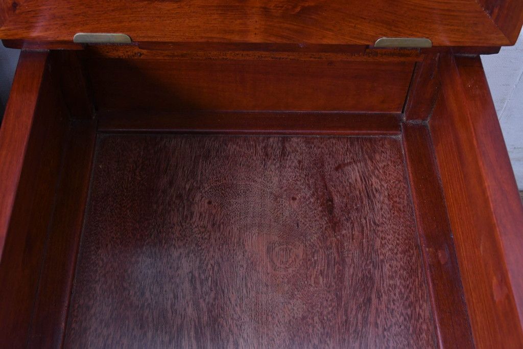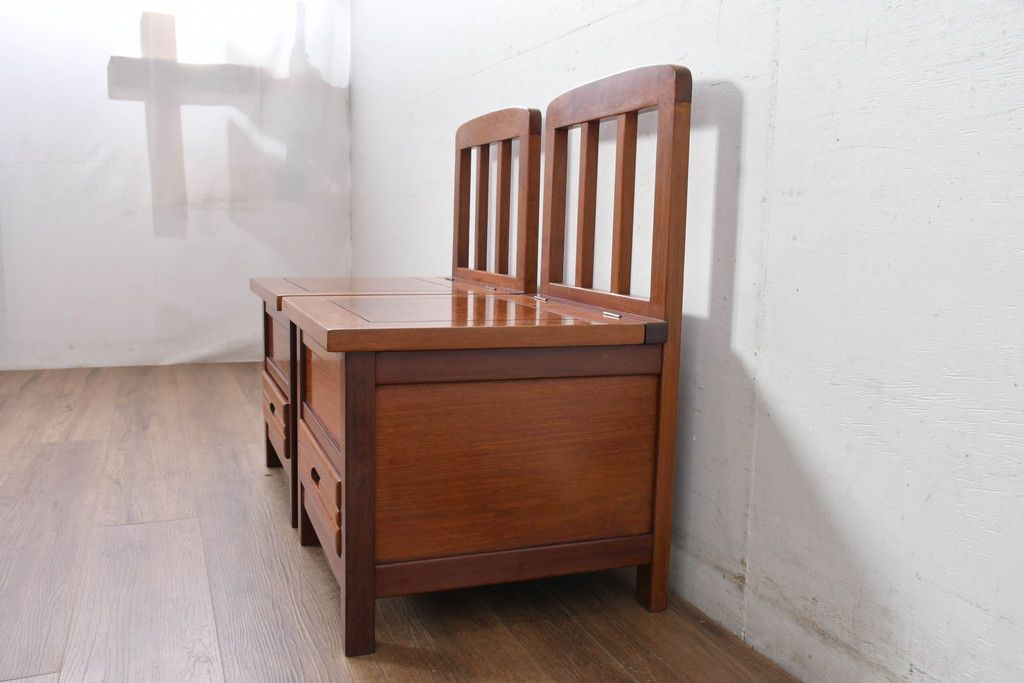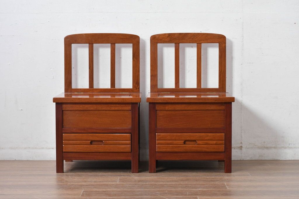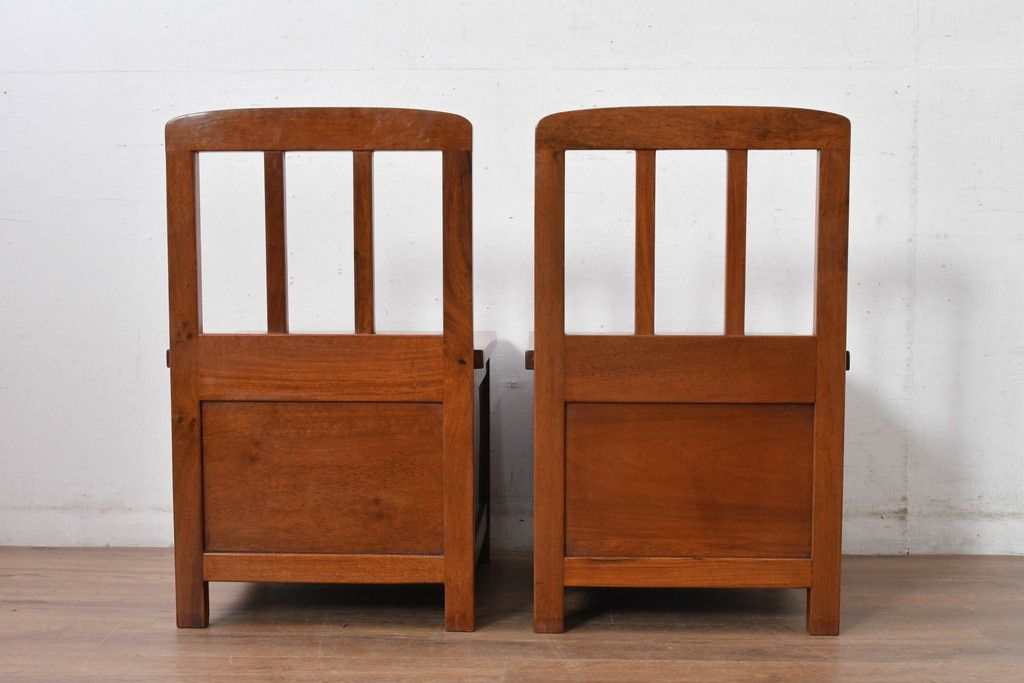 ラフジュ工房> 椅子・ベンチ> ダイニングチェア > 中古 民芸家具 花梨(カリン)材 収納付き囲炉裏チェア2脚セット(椅子、ダイニングチェア、板座チェア)(R-070314)