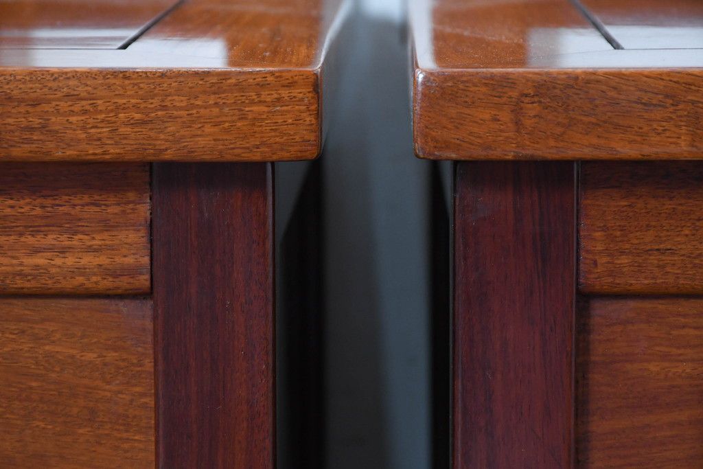 ラフジュ工房> 民芸家具 > 中古 民芸家具 花梨(カリン)材 収納付き囲炉裏チェア2脚セット(椅子、ダイニングチェア、板座チェア)(R-070314)