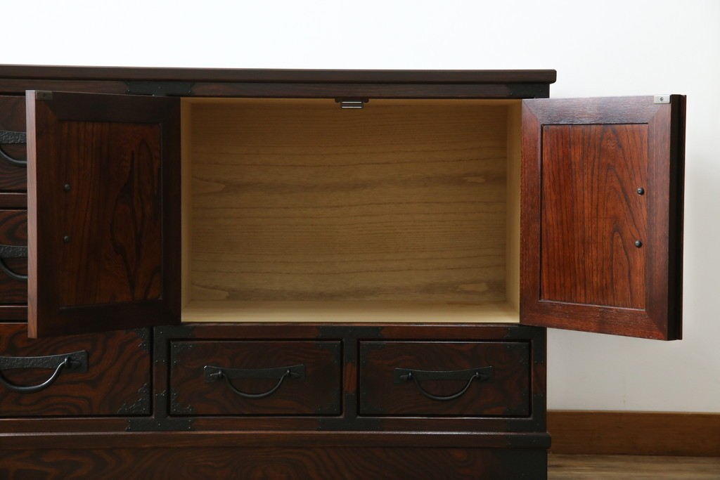 民芸家具 > 中古 志太民芸家具 天板リメイク 美しい杢目が上質な和の雰囲気を演出するローチェスト(サイドボード、テレビボード)(R-070427)