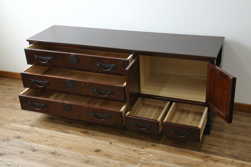キャビネット・戸棚 > 中古 志太民芸家具 天板リメイク 美しい杢目が上質な和の雰囲気を演出するローチェスト(サイドボード、テレビボード)(R-070427)