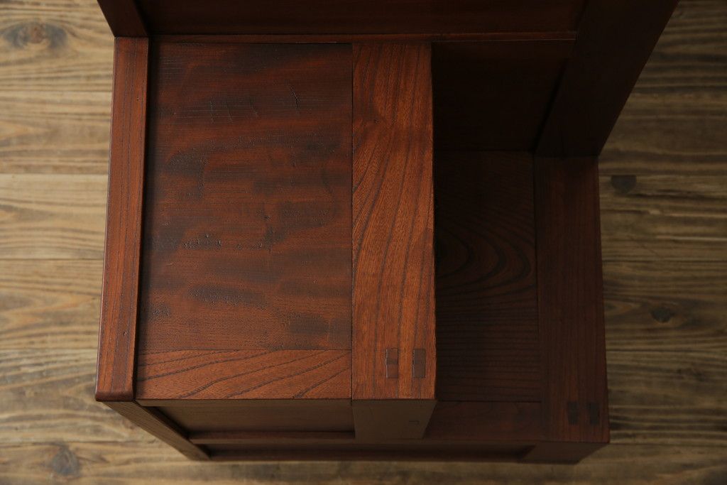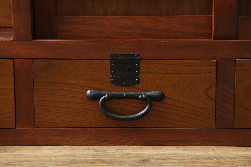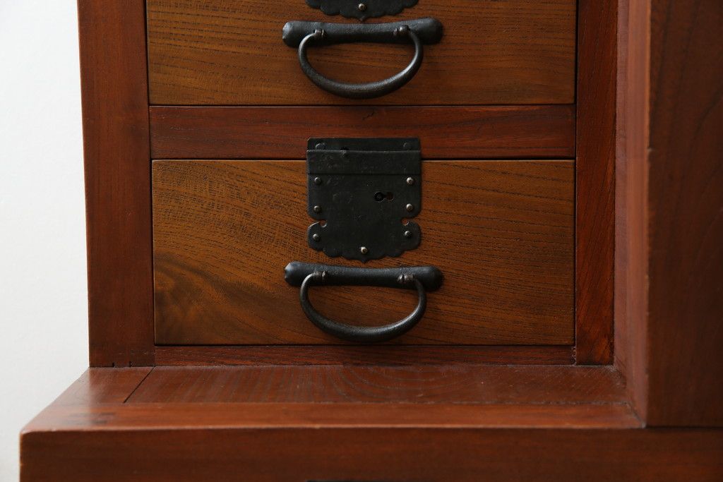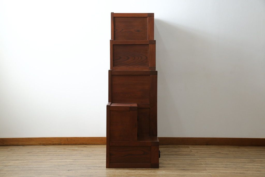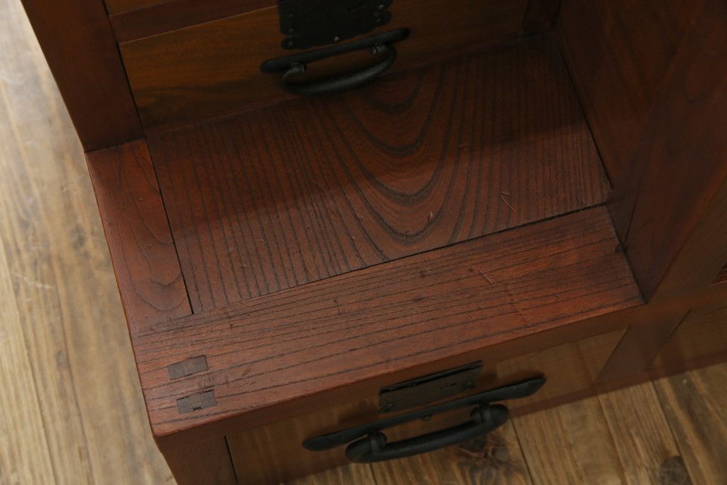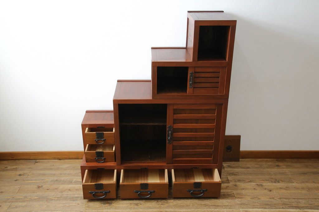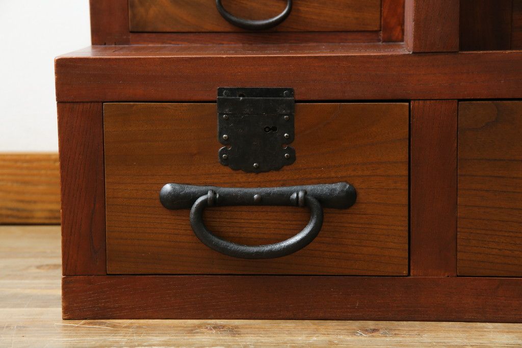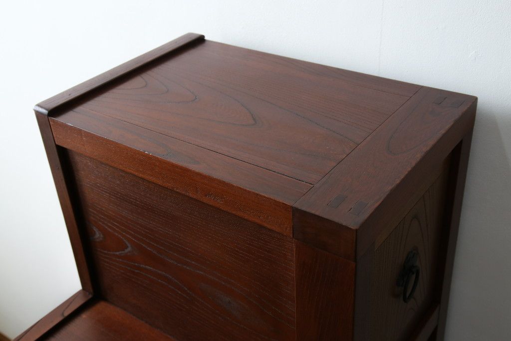 和製ビンテージ 高級工芸家具 総欅(ケヤキ)材 古金具リメイク 職人手作り 小振りな階段箪笥(階段タンス、収納たんす、和箪笥、時代箪笥、引き出し、ヴィンテージ)(R-070433)