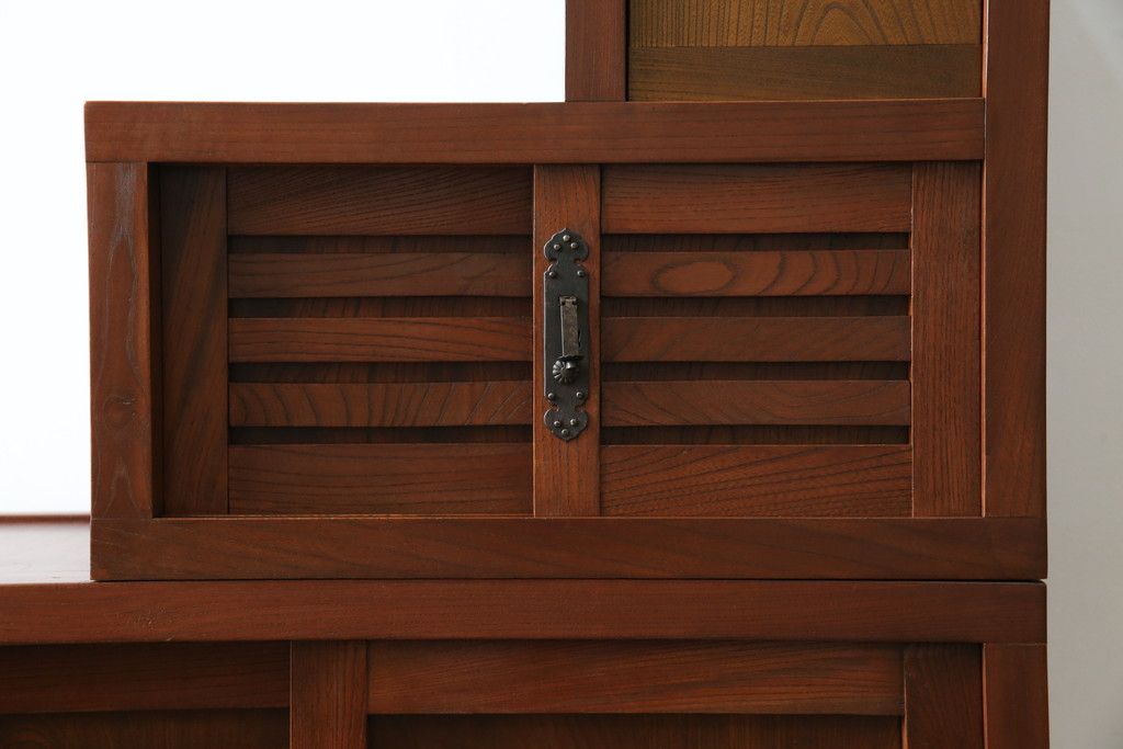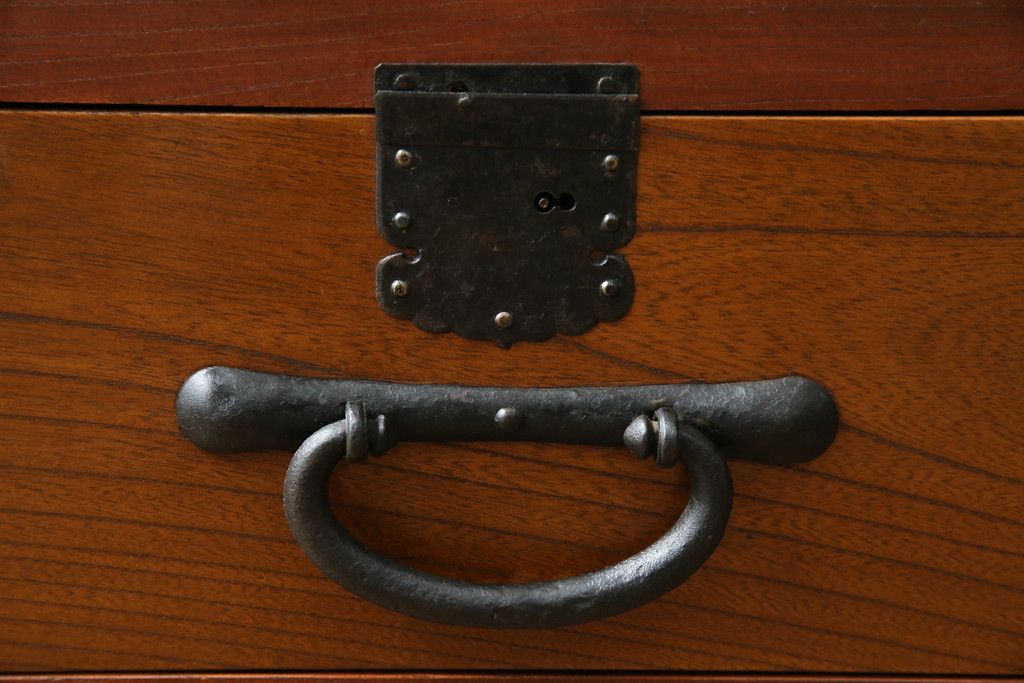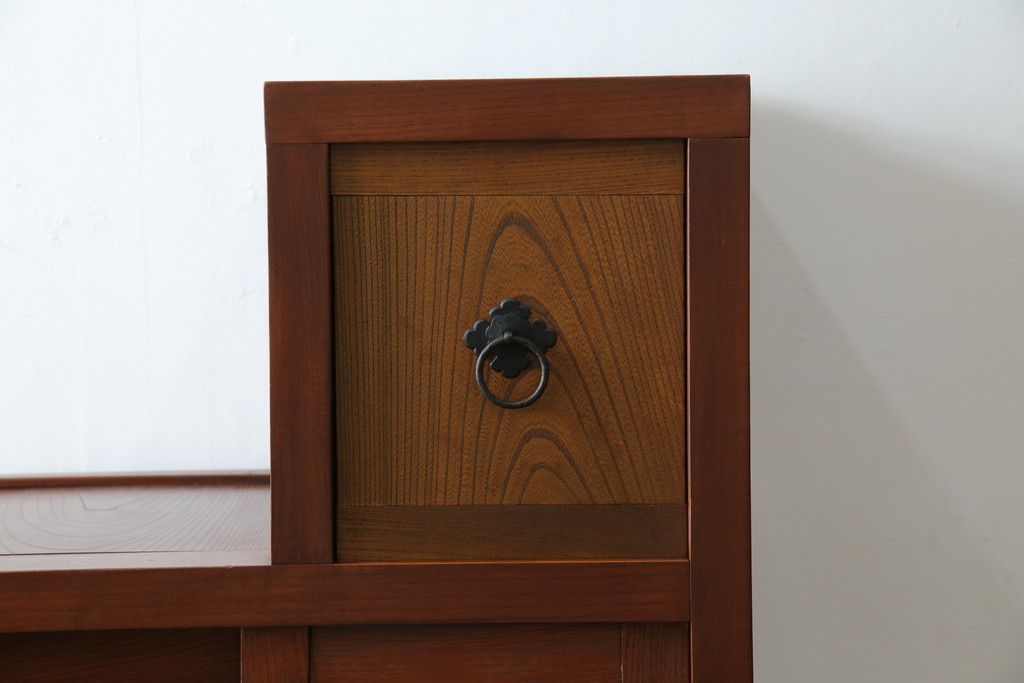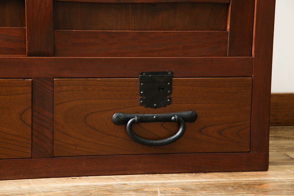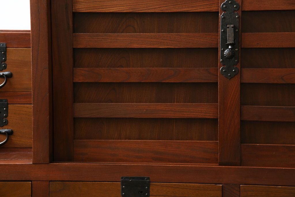 ラフジュ工房> 和箪笥> 階段箪笥 > 和製ビンテージ 高級工芸家具 総欅(ケヤキ)材 古金具リメイク 職人手作り 小振りな階段箪笥(階段タンス、収納たんす、和箪笥、時代箪笥、引き出し、ヴィンテージ)(R-070433)
