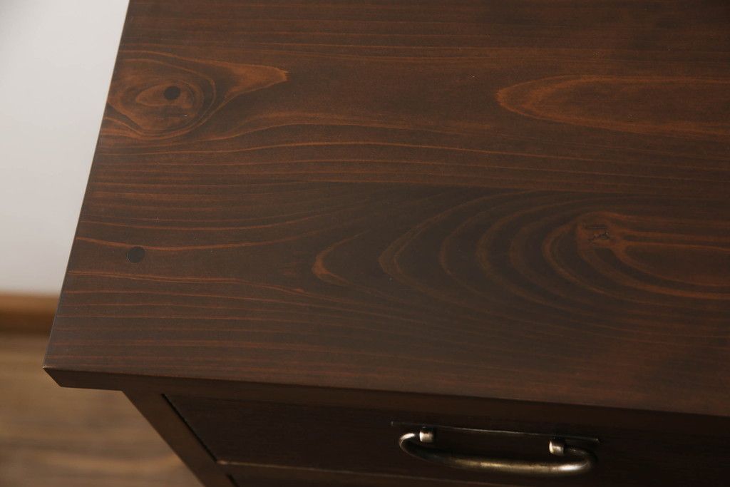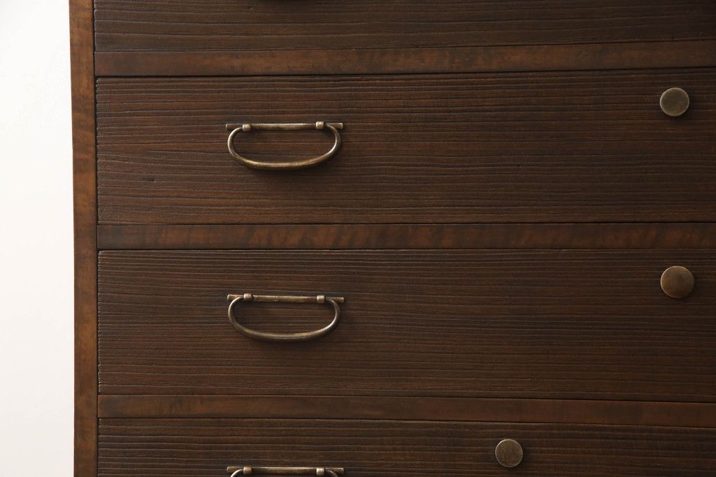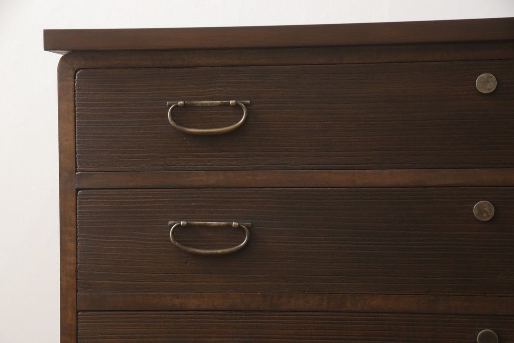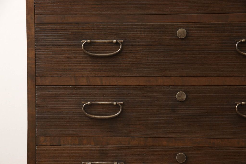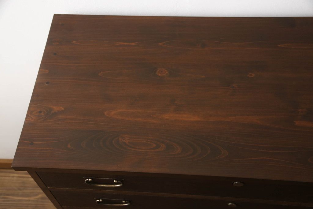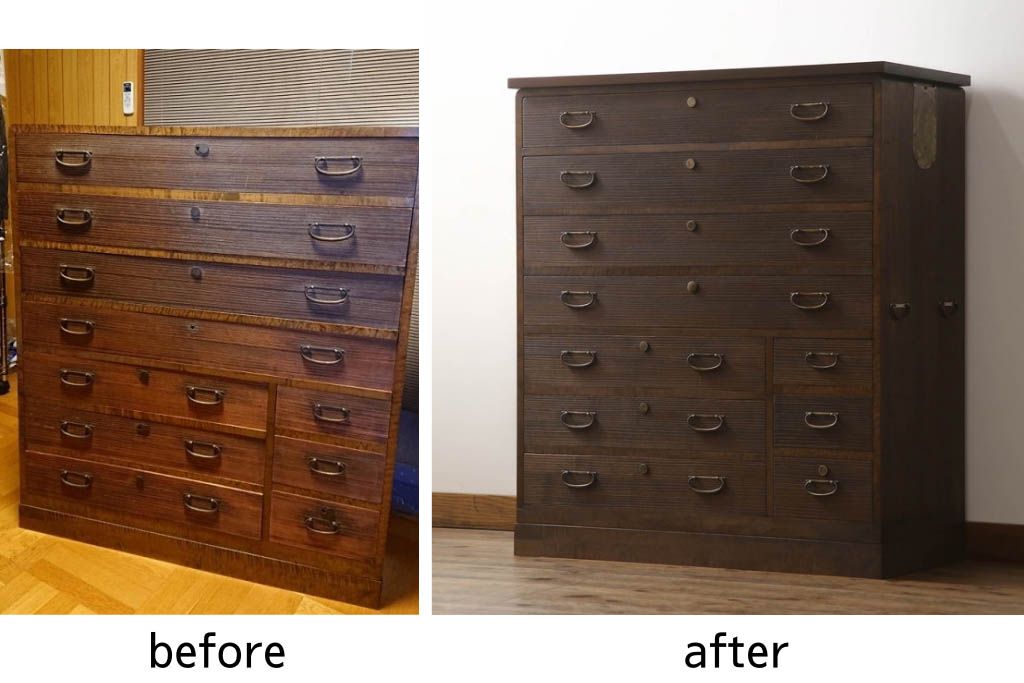 桐箪笥を着リメイク!高品質リペアを施し、ヒノキ無垢材の天板取り付け。オーク系の着色とワックス仕上げ。