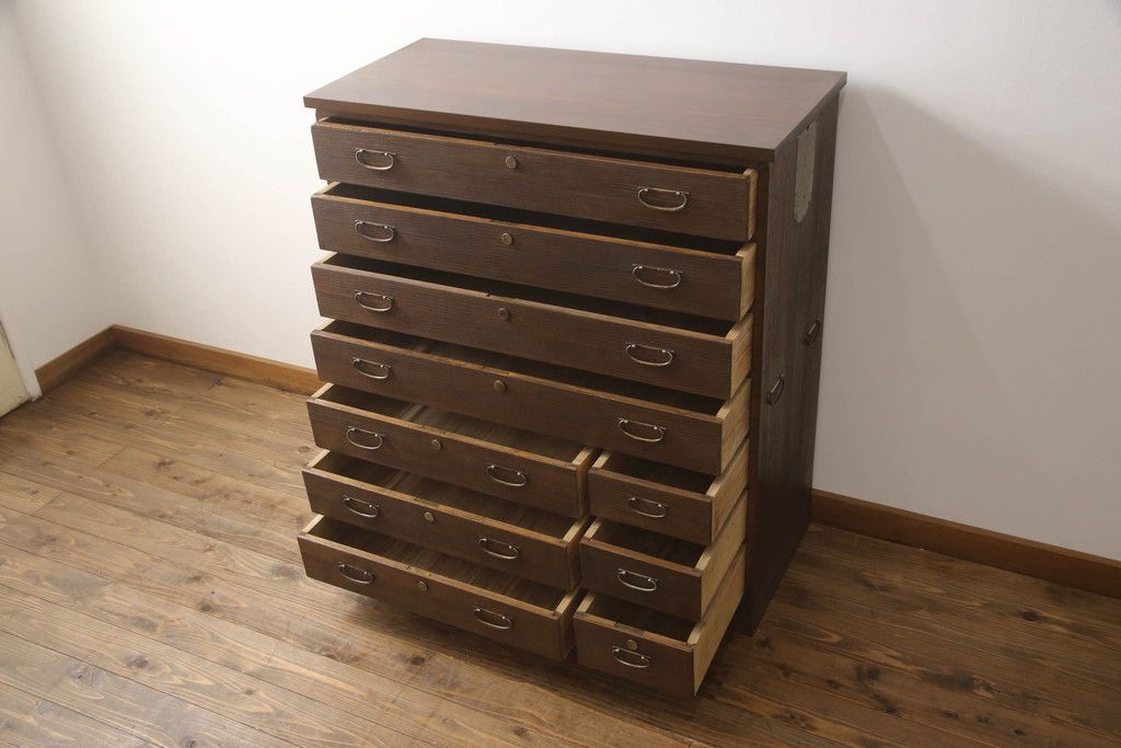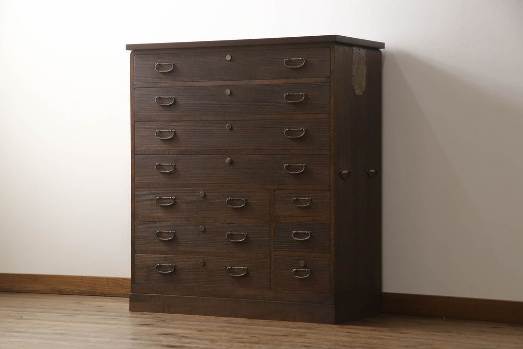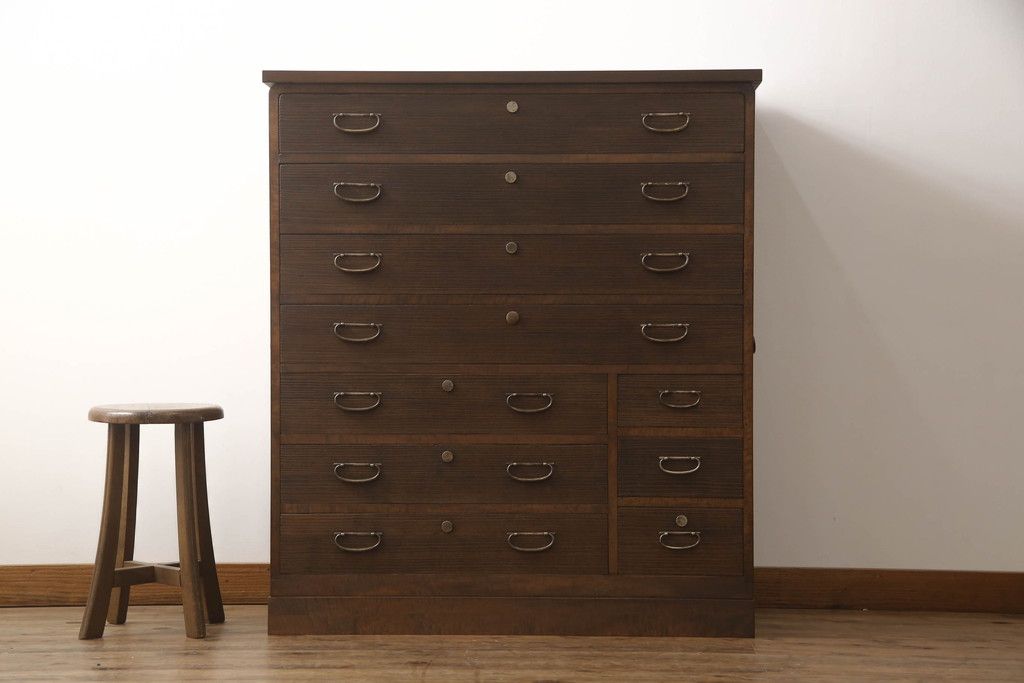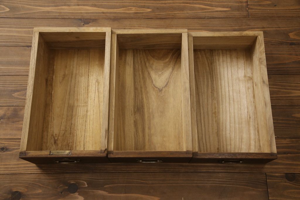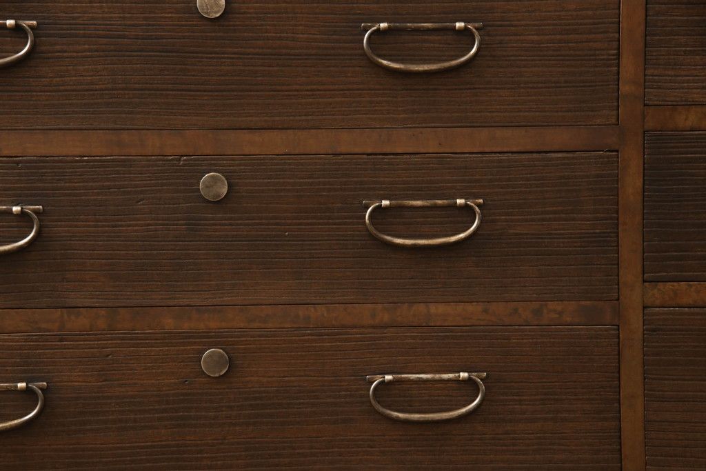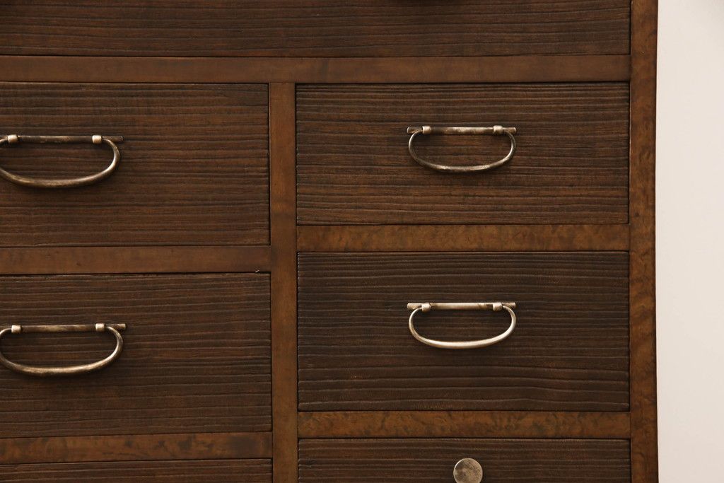 桐箪笥を着リメイク!高品質リペアを施し、ヒノキ無垢材の天板取り付け。オーク系の着色とワックス仕上げ。