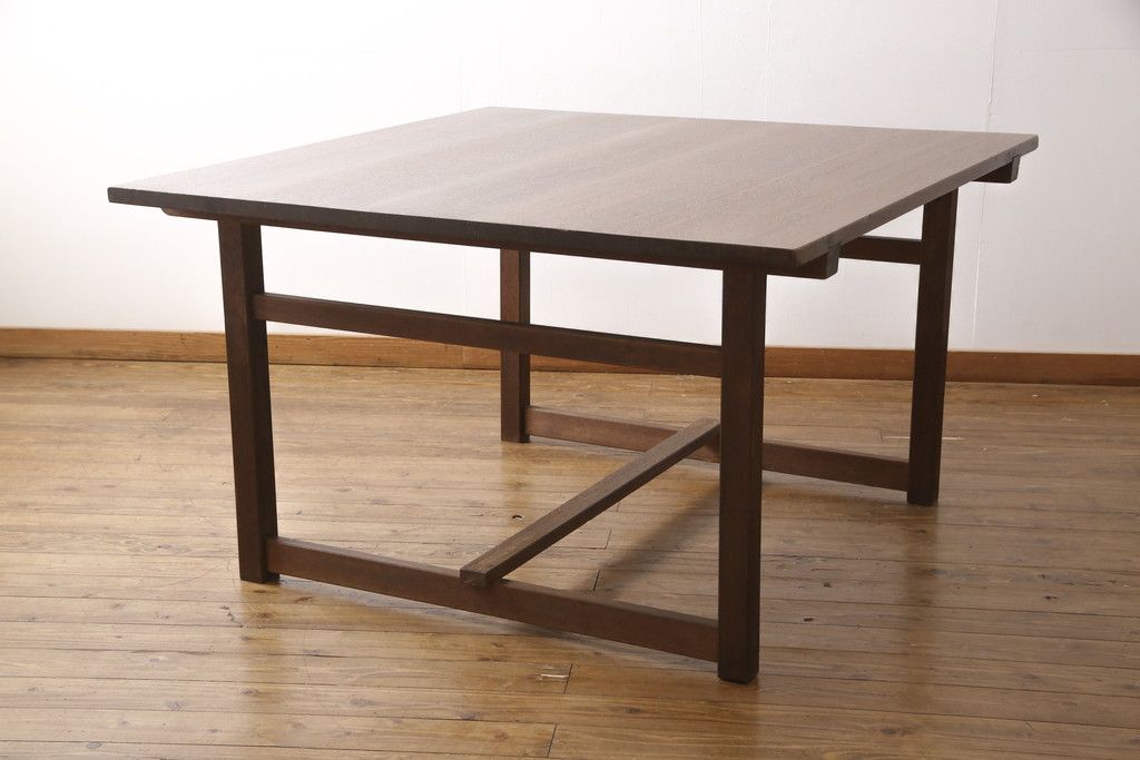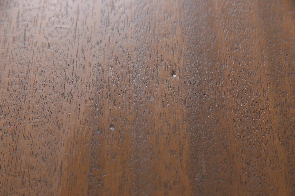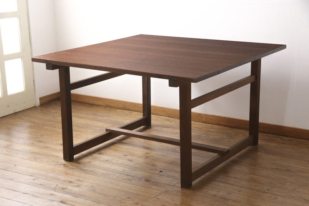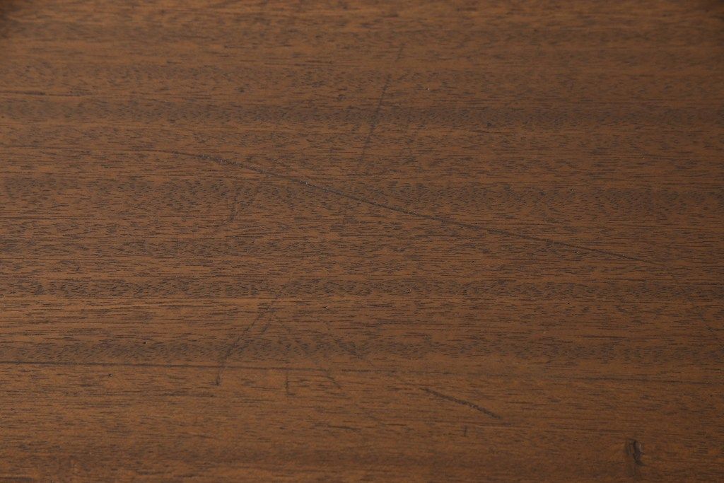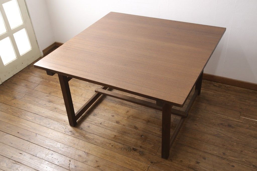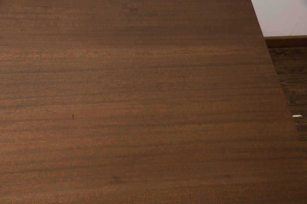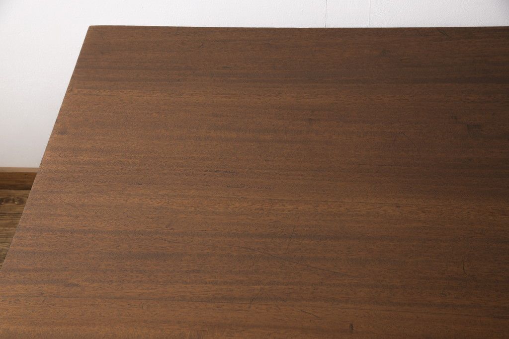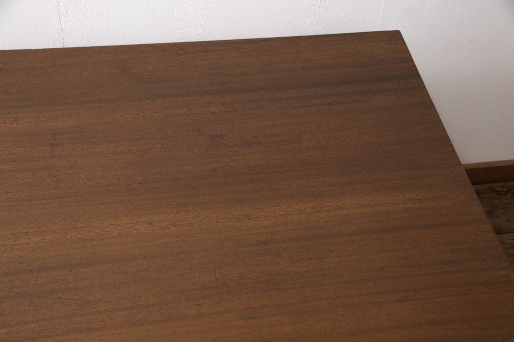 テーブル> 4人用ダイニングテーブル > 和製アンティークの棚付き作業台をリペア&カスタム!天板下の棚を取り外し。色の濃い部分に合わせて全体を着色し仕上げ。(ダイニングテーブル)